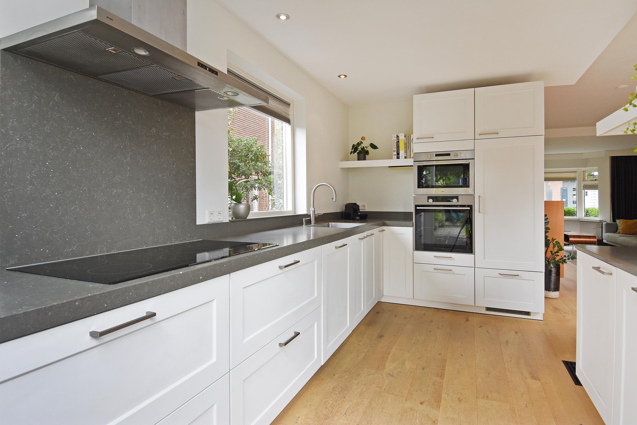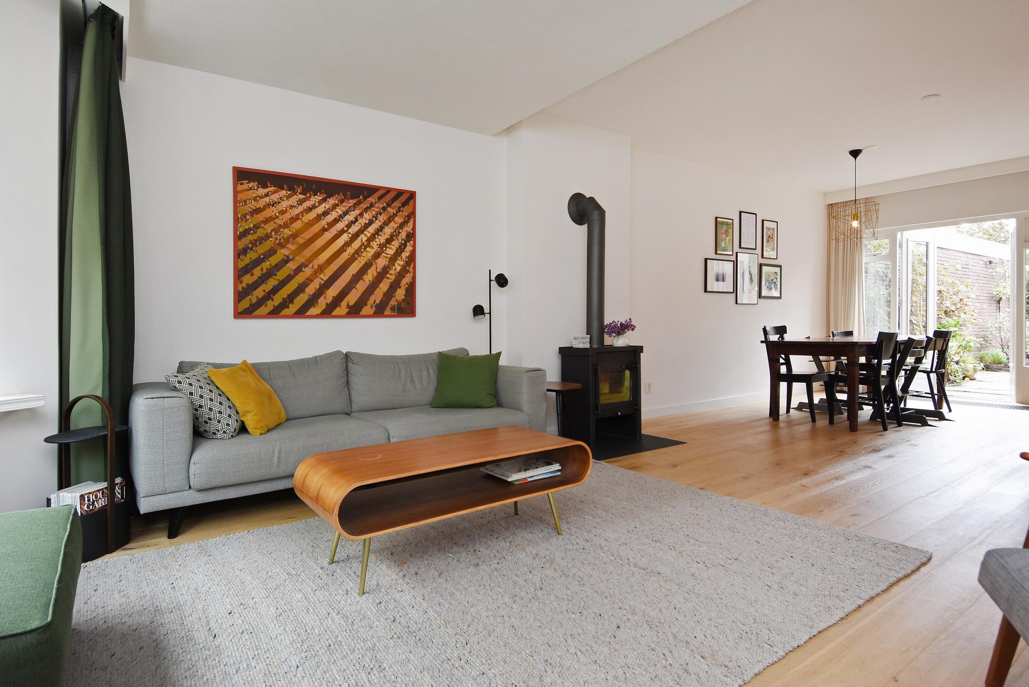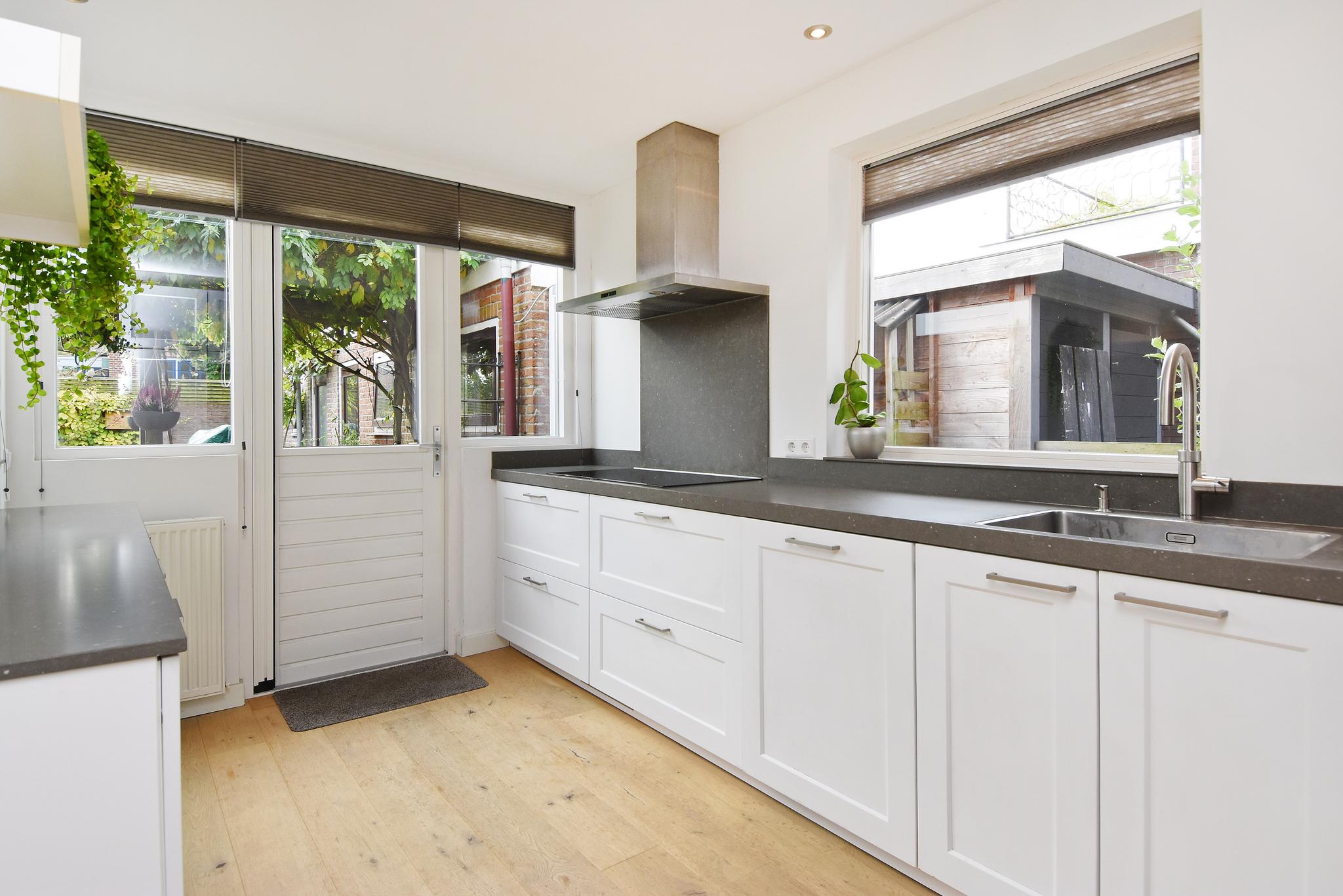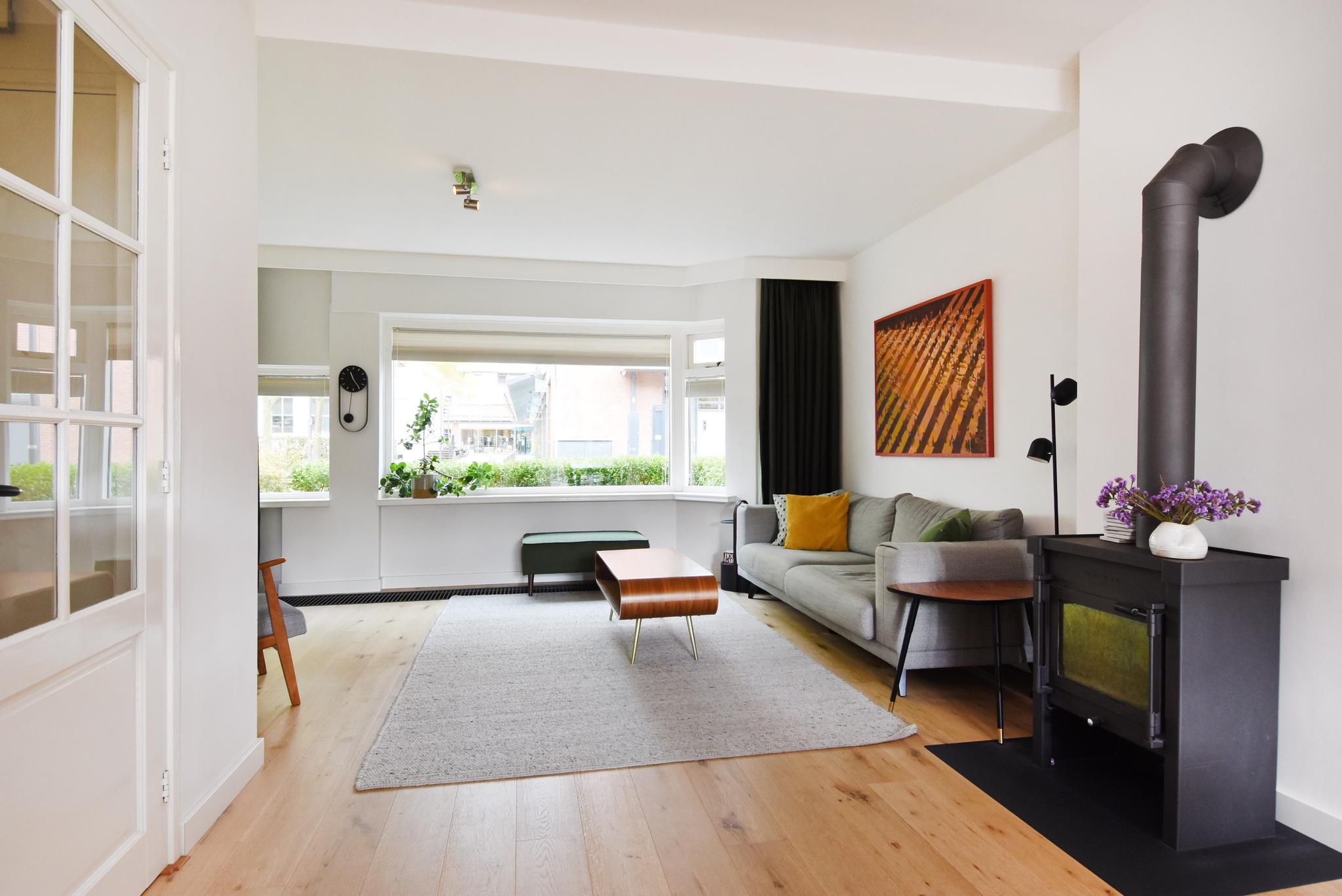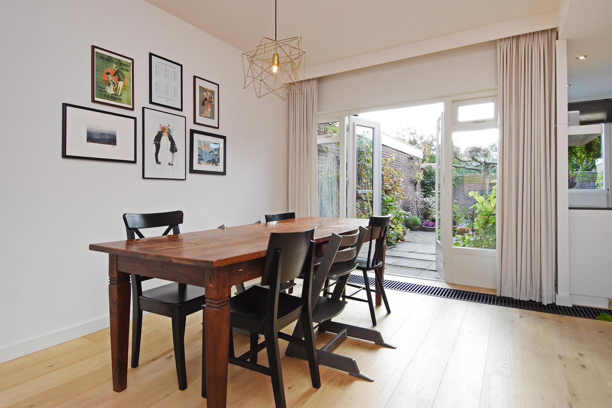 Begane grond: Entree/hal met meterkast en toiletruimte. De oorspronkelijke indeling is iets veranderd waardoor er meer functionele m2 in de woonkamer aanwezig zijn! Fijne living met een open haard partij, veel lichtinval door de grote erkerraam aan de voorzijde en openslaande deuren naar de tuinzijde. Half open keuken, waarbij ongeveer 10 jaar geleden de kleine aanbouw/serre bij de keuken is getrokken en de inrichting geheel is vernieuwd met complete inbouwapparatuur. Ook vanuit de keuken is de tuin bereikbaar.