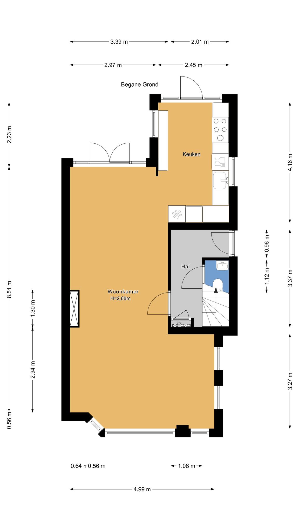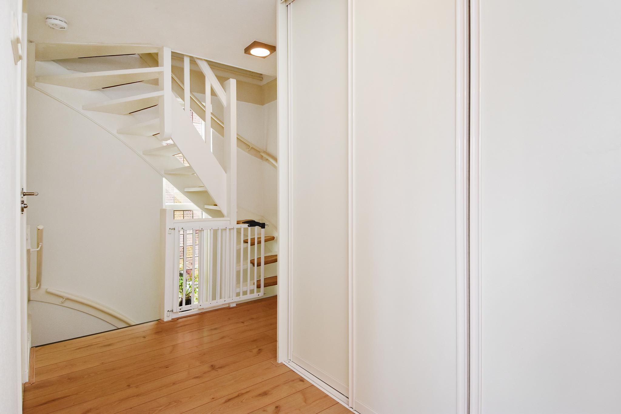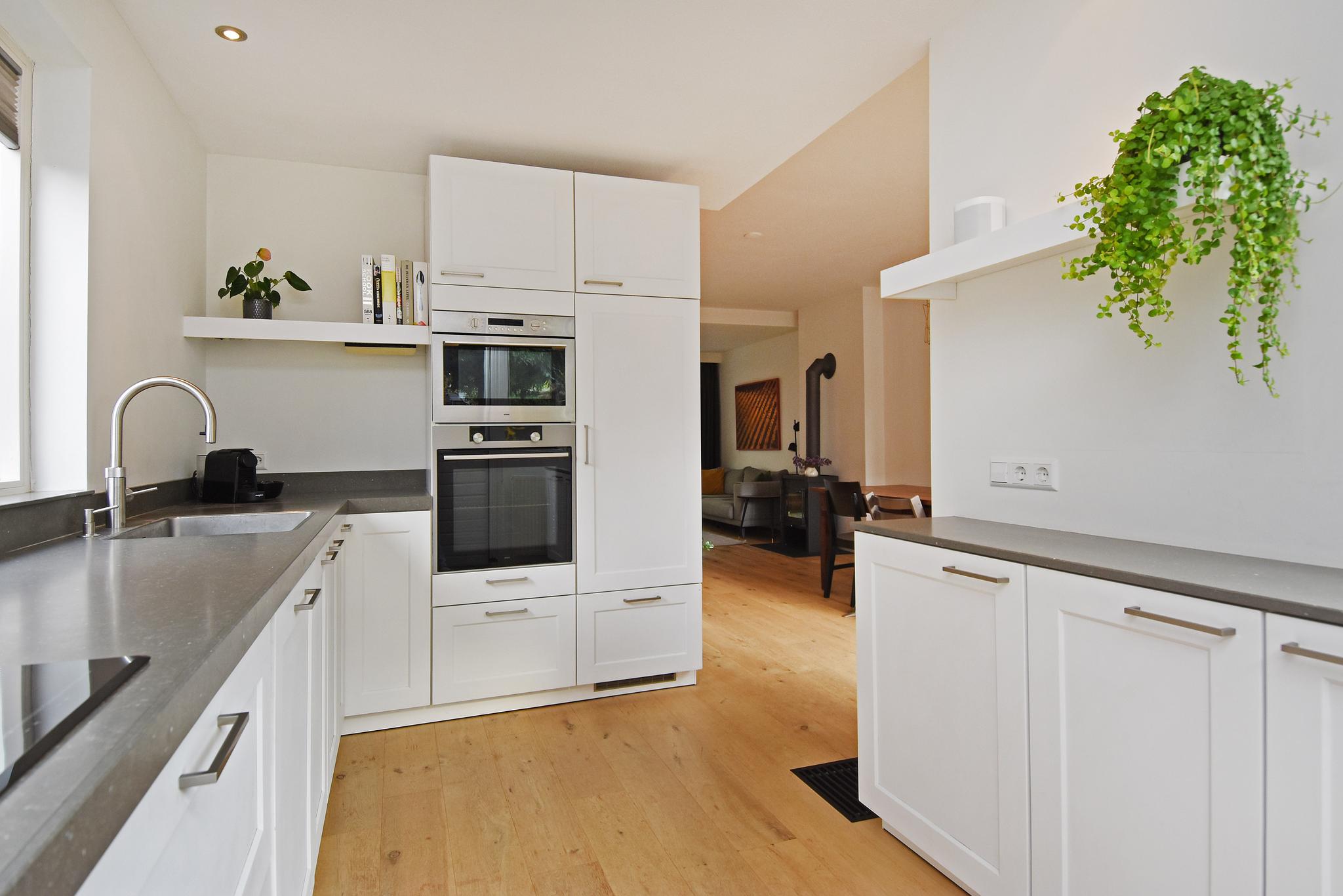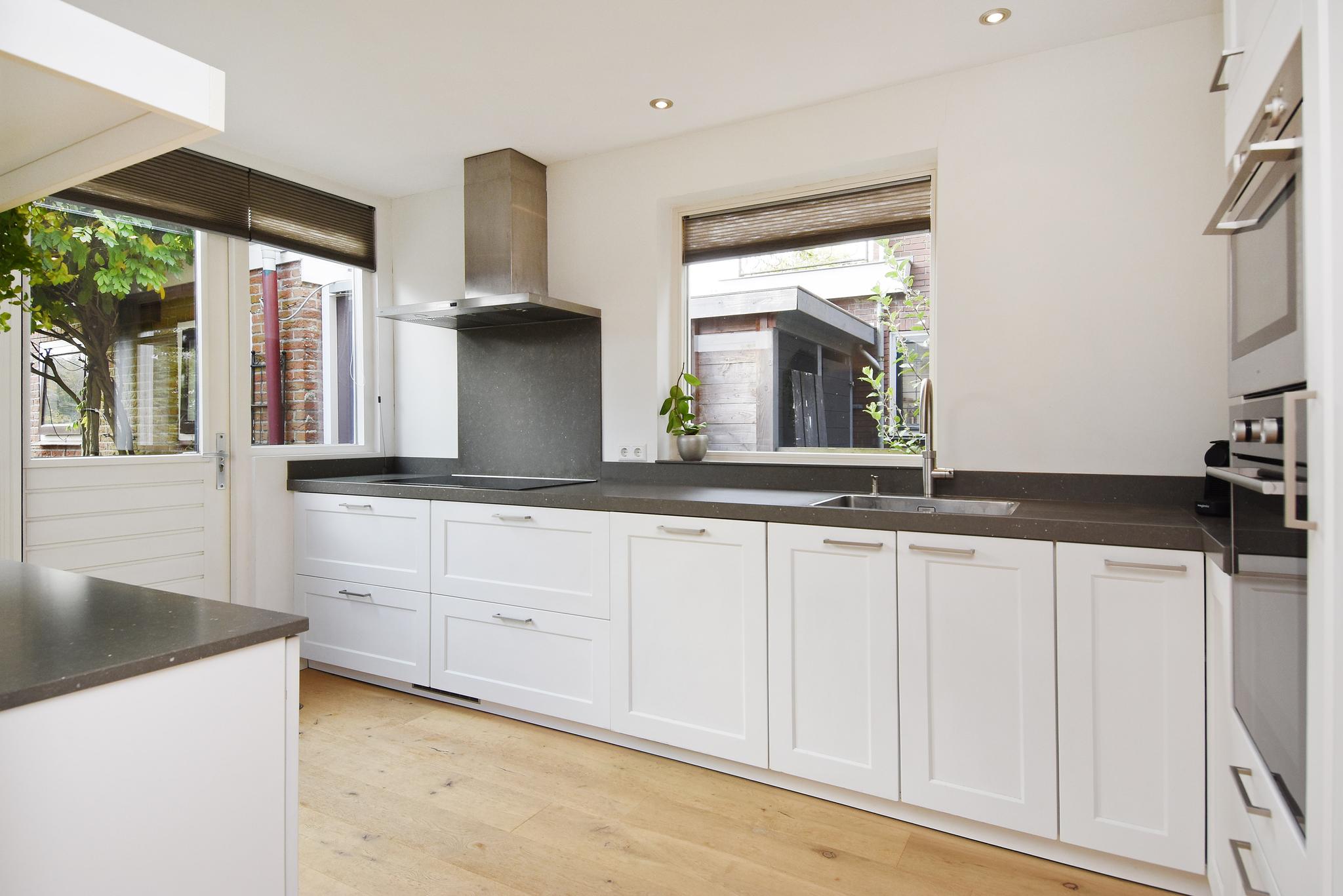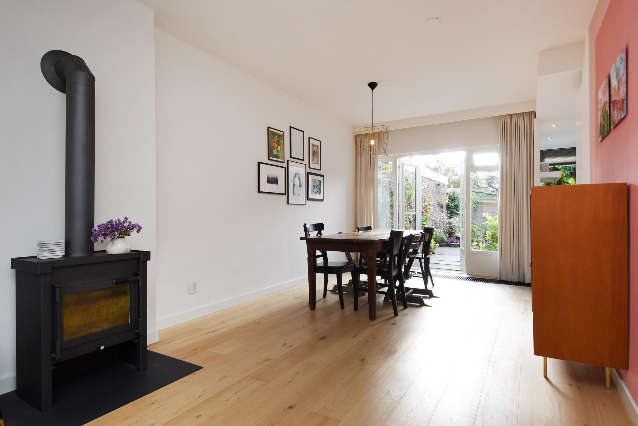 Begane grond: Entree/hal met meterkast en toiletruimte. De oorspronkelijke indeling is iets veranderd waardoor er meer functionele m2 in de woonkamer aanwezig zijn! Fijne living met een open haard partij, veel lichtinval door de grote erkerraam aan de voorzijde en openslaande deuren naar de tuinzijde. Half open keuken, waarbij ongeveer 10 jaar geleden de kleine aanbouw/serre bij de keuken is getrokken en de inrichting geheel is vernieuwd met complete inbouwapparatuur. Ook vanuit de keuken is de tuin bereikbaar.