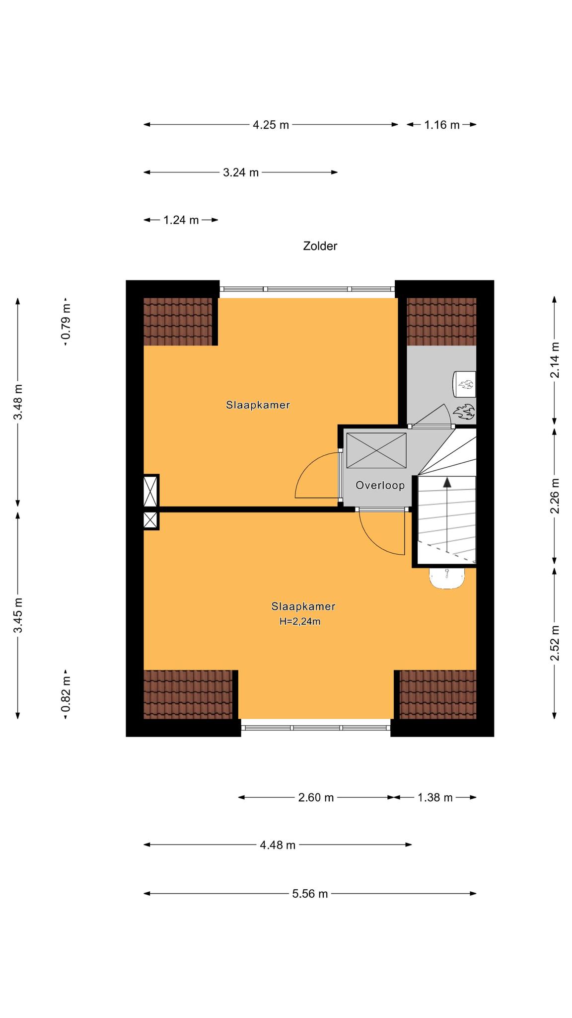 2e Verdieping: overloop met toegang tot bevloerde bergvliering met vlizotrap. Stookruimte met opstelplaats c.v.-combiketel. Twee grote slaapkamers, beiden beschikken over een brede dakkapel waardoor de kamers goed in te delen zijn. In de slaapkamer aan achterzijde is ook nog een wastafelmeubel aanwezig.