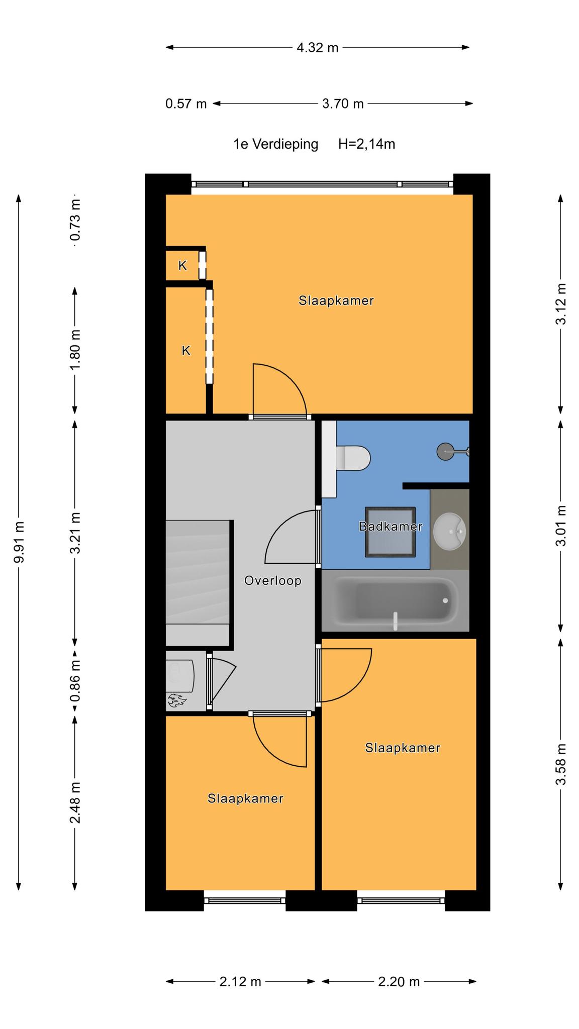 Slaapkamers 1e etage: 3 goede slaapkamers.