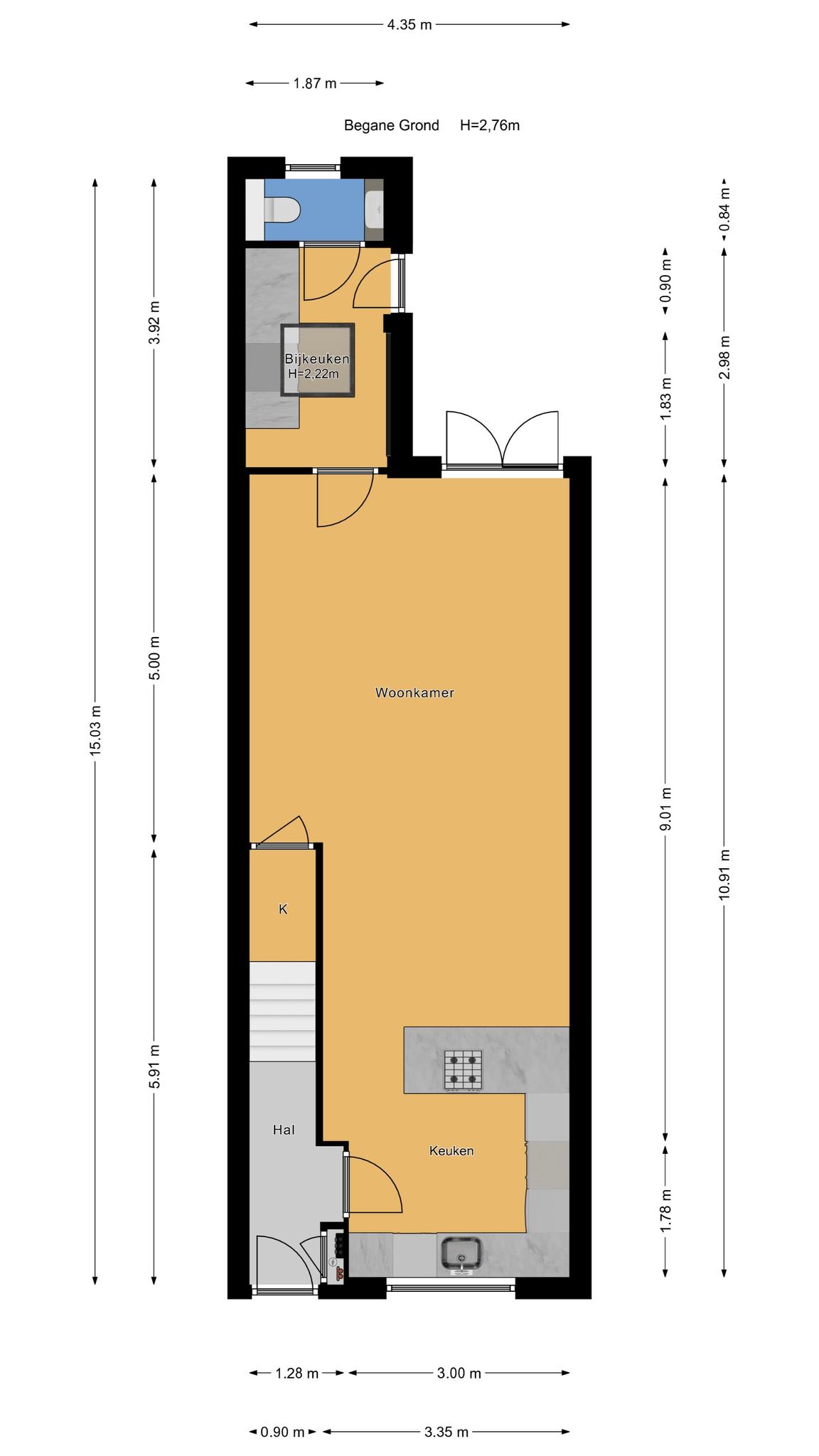 Bijkeuken & toilet: bijkeuken met wasmachine aansluiting en toilet. Fijne lichtinval door de dakkoepel. Vanuit de bijkeuken ook toegang tot de tuin.