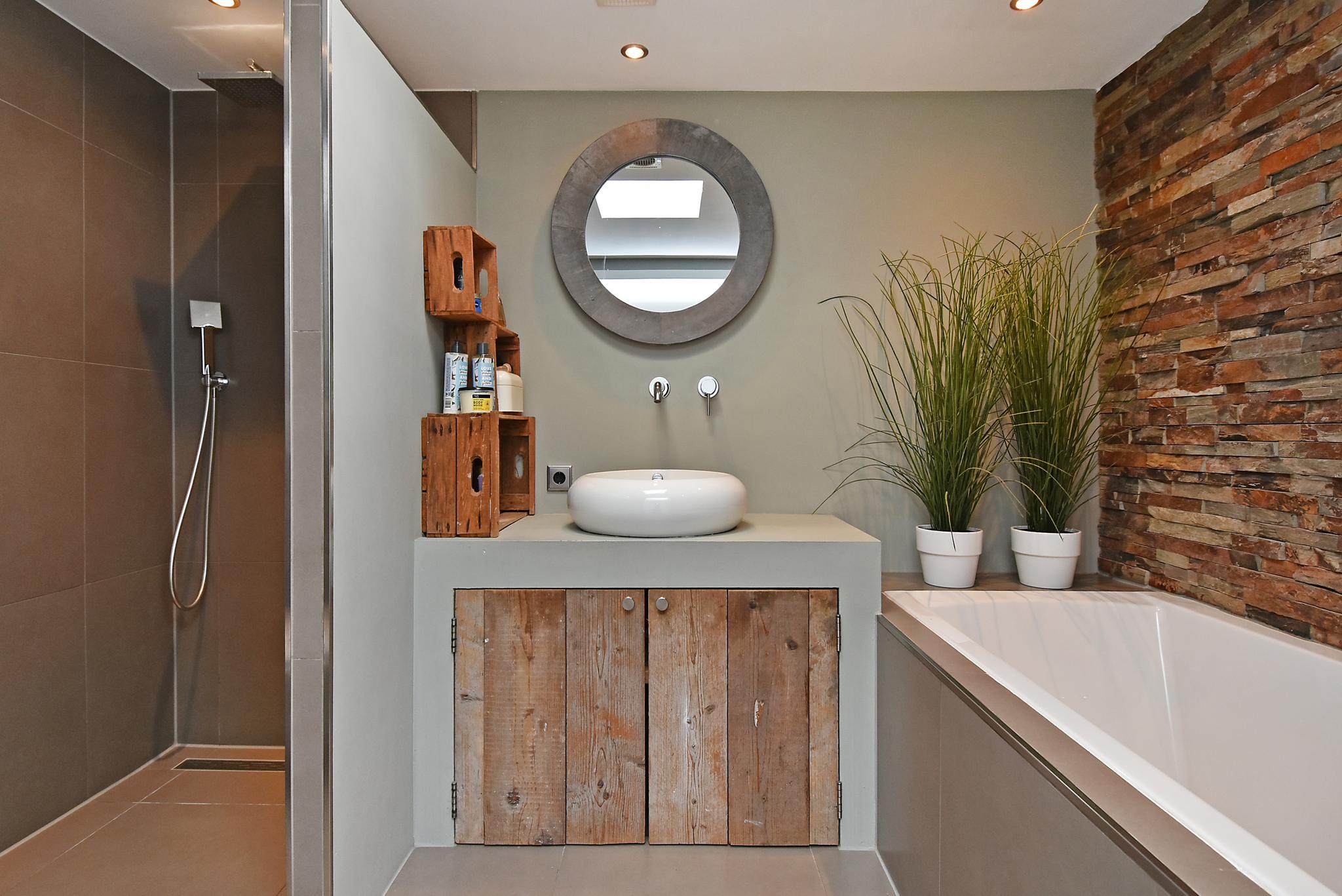 Badkamer: luxe badkamer met ligbad, inloopdouche, 2e toilet en wastafelmeubel.