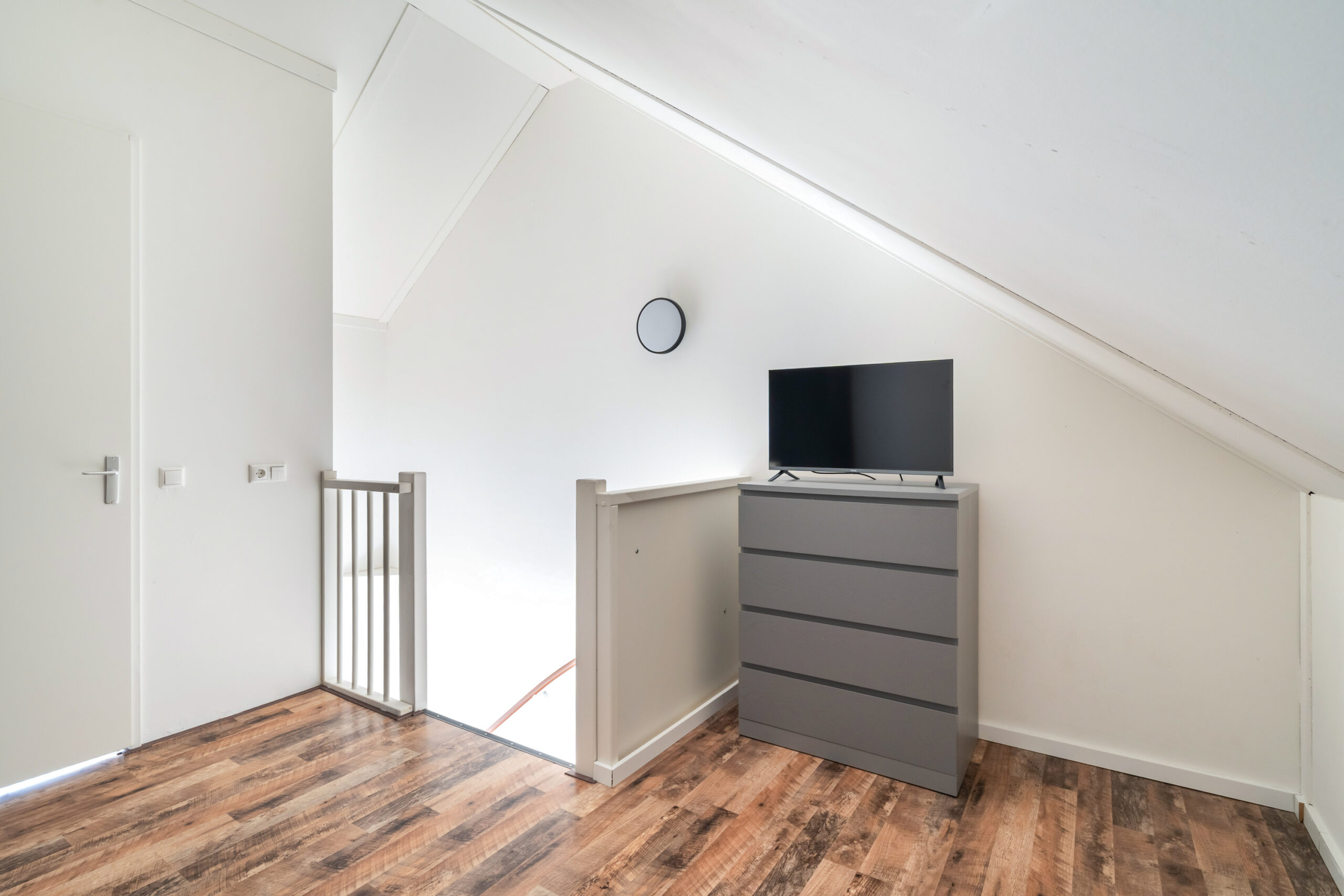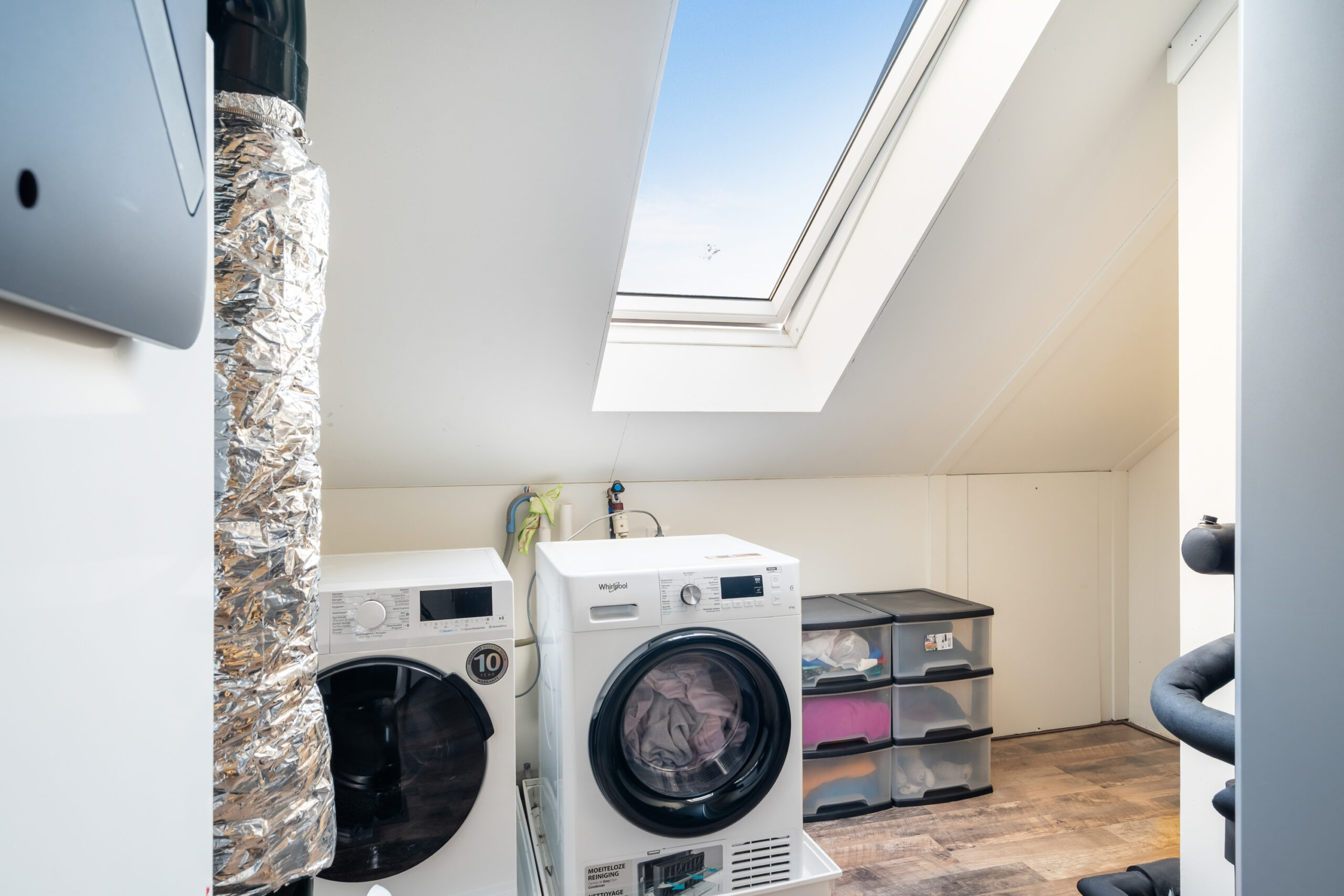 Ruime overloop met vele mogelijkheden. Met het plaatsen van een dakraam realiseer je een 3e slaap-/werkkamer. Aan de voorzijde is de wasruimte, afgewerkt met een dakraam. Hier bevinden zich tevens de technische installaties.