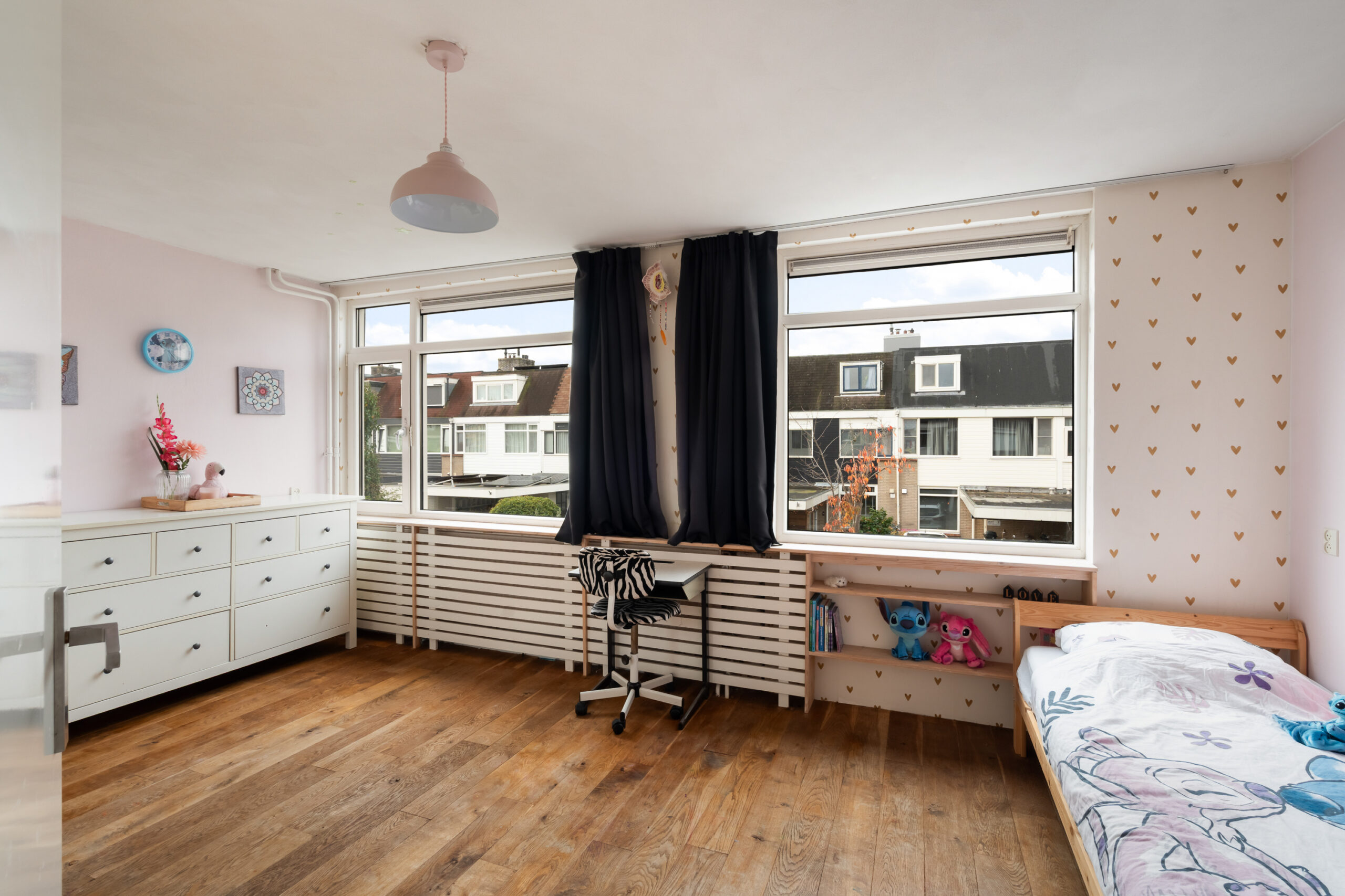 – 2 slaapkamers (voorheen 3) met houten vloeren, de hoofdslaapkamer heeft een walk-in closet die achterblijft