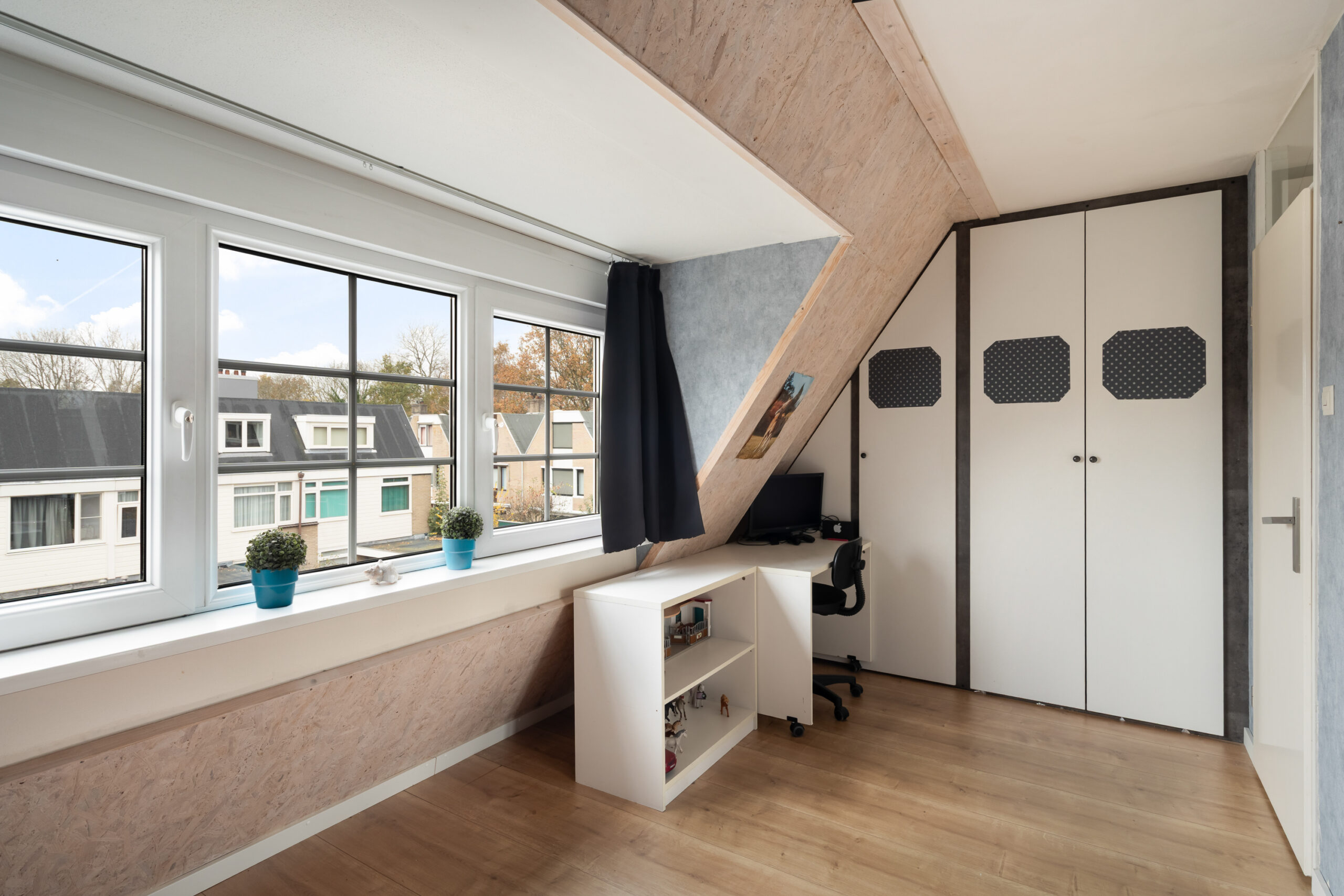– 2 Grote slaapkamers, ieder met een dakkapel en laminaatvloeren, er is veel ingebouwde kastruimte aanwezig