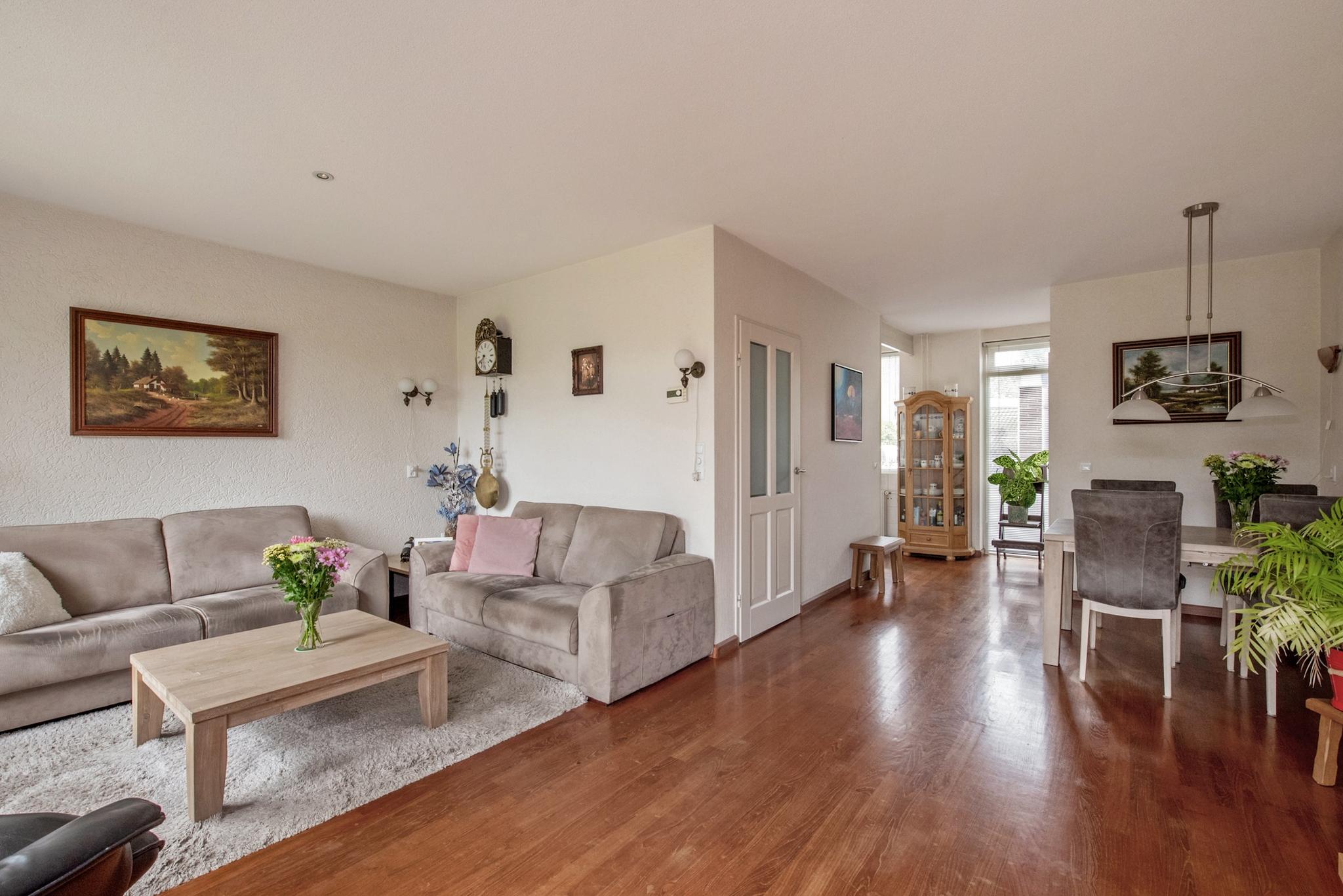 De woonkamer is tuingericht en biedt voldoende ruimte voor de eet- en zithoek.