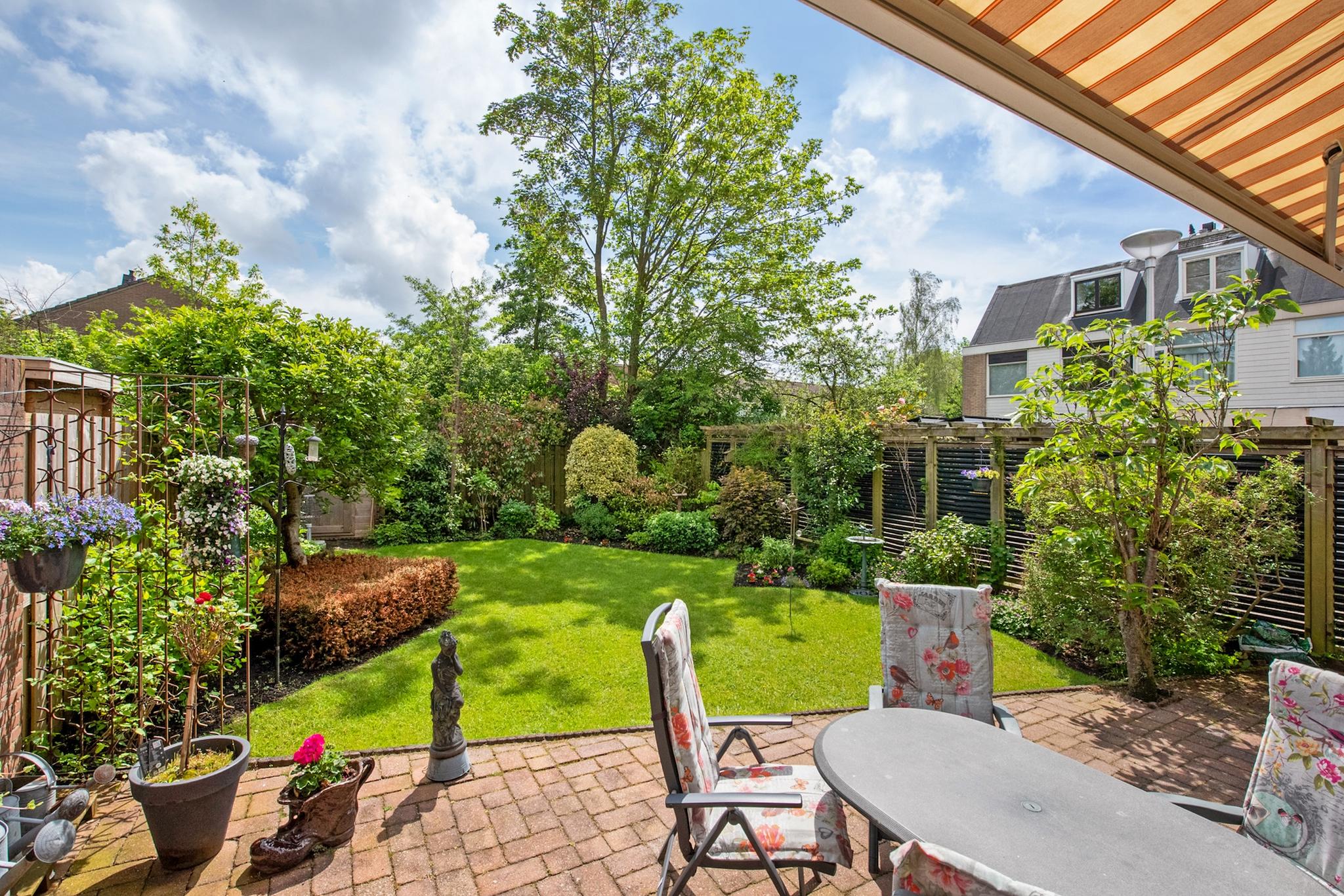 Wauw wat een tuin! Een van de hoogtepunten is de royale tuin, waar je kan genieten van een groene oase. Met een zonnige ligging op het zuid/zuidoost, is het elektrische zonnescherm geen overbodige luxe. De tuin is keurig aangelegd met sierbestrating, volwassen beplanting en gras. Achterin staat een houten berging.