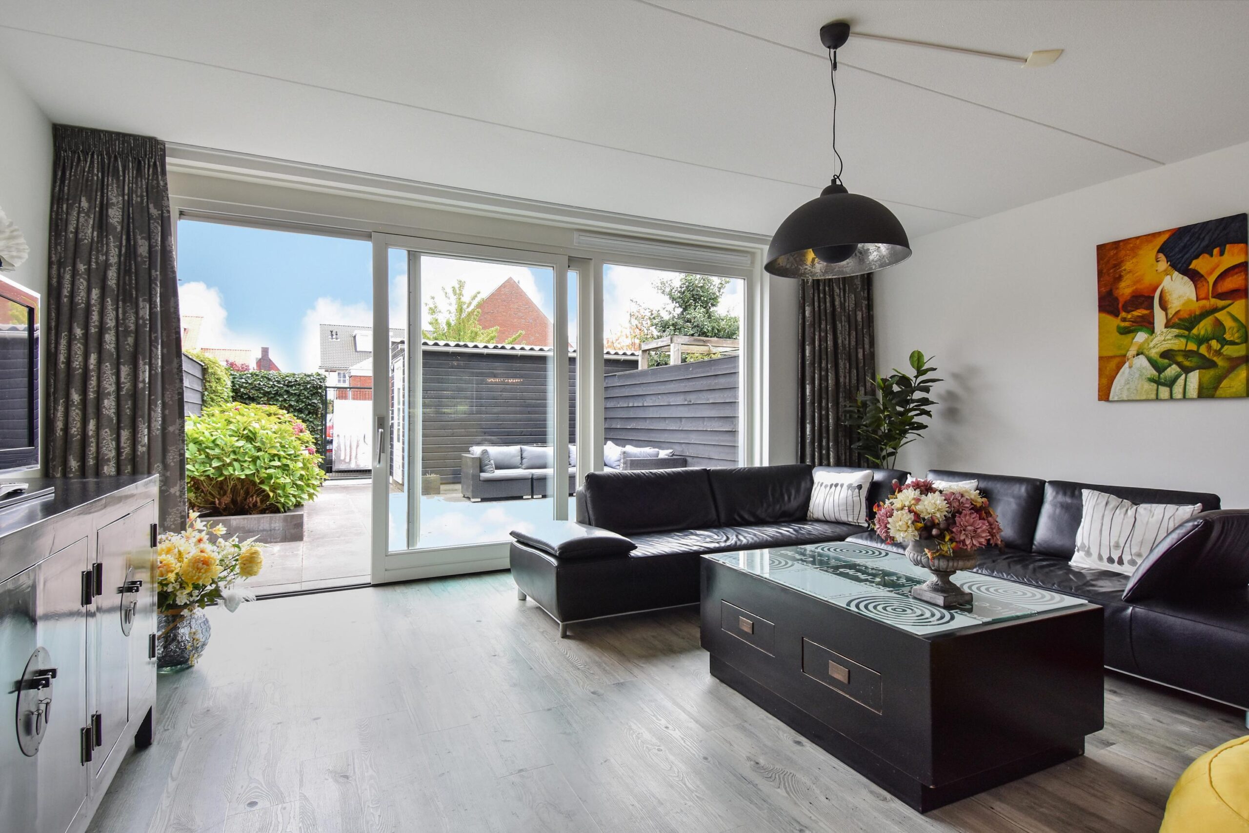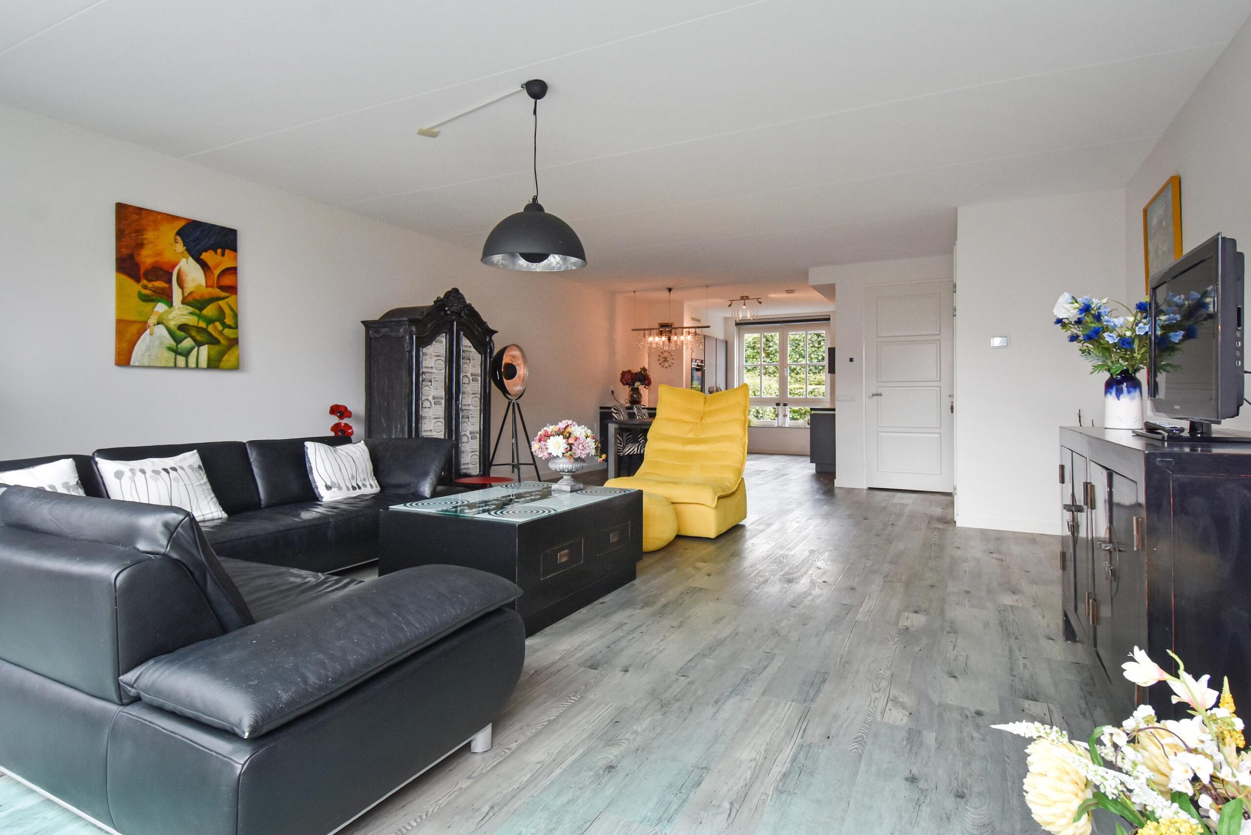 – woonkamer met PVC-vloer waaronder vloerverwarming
