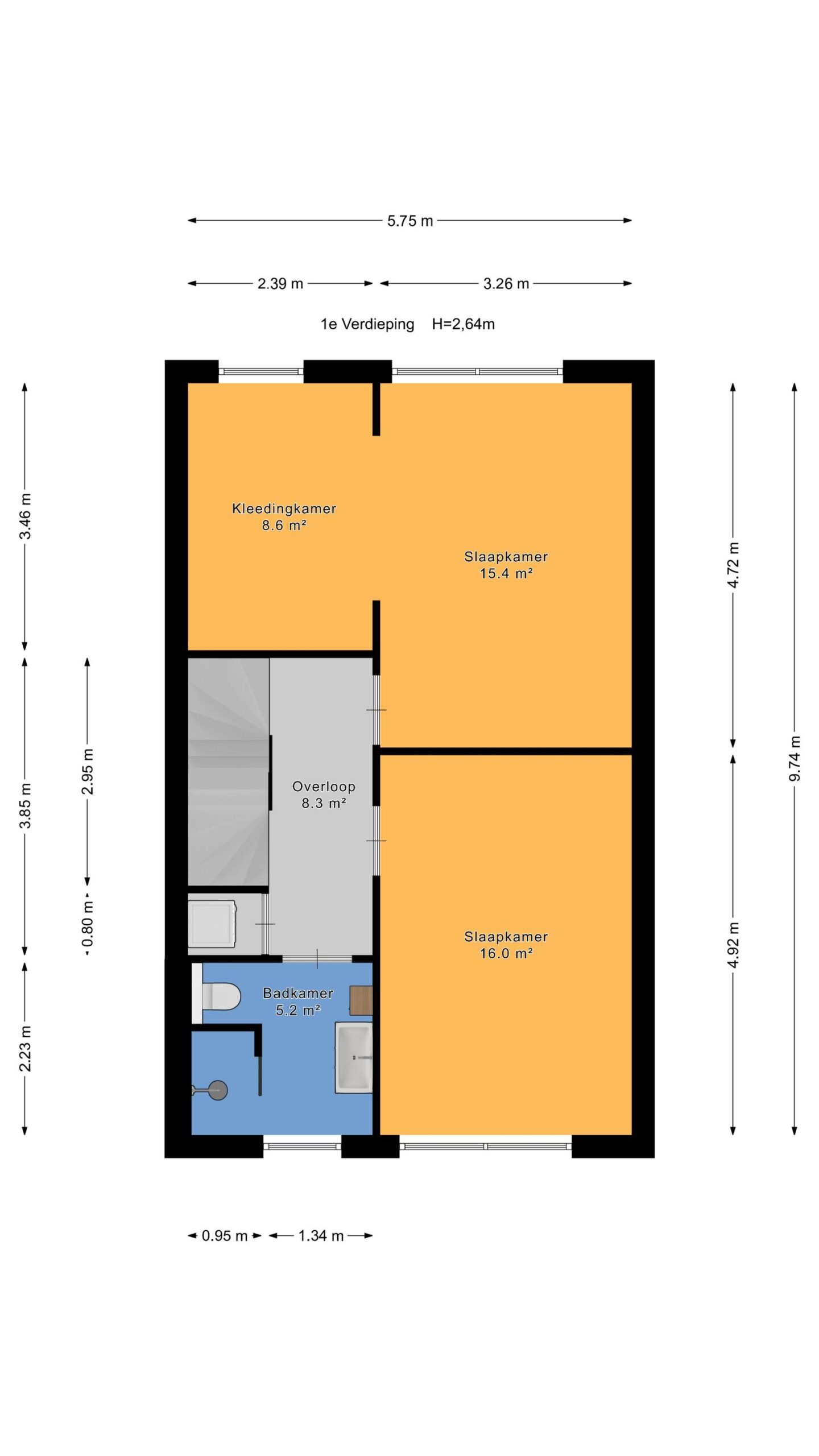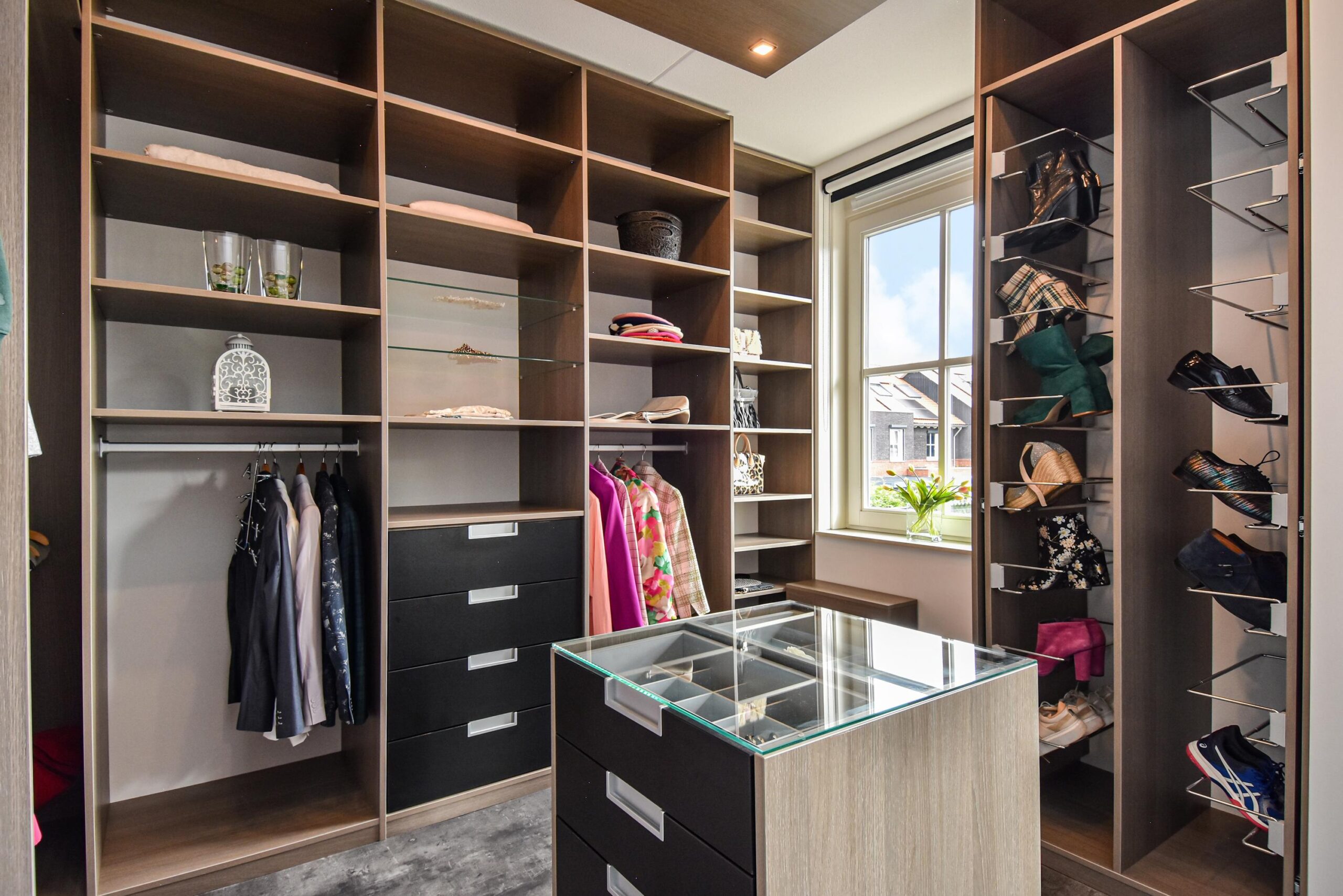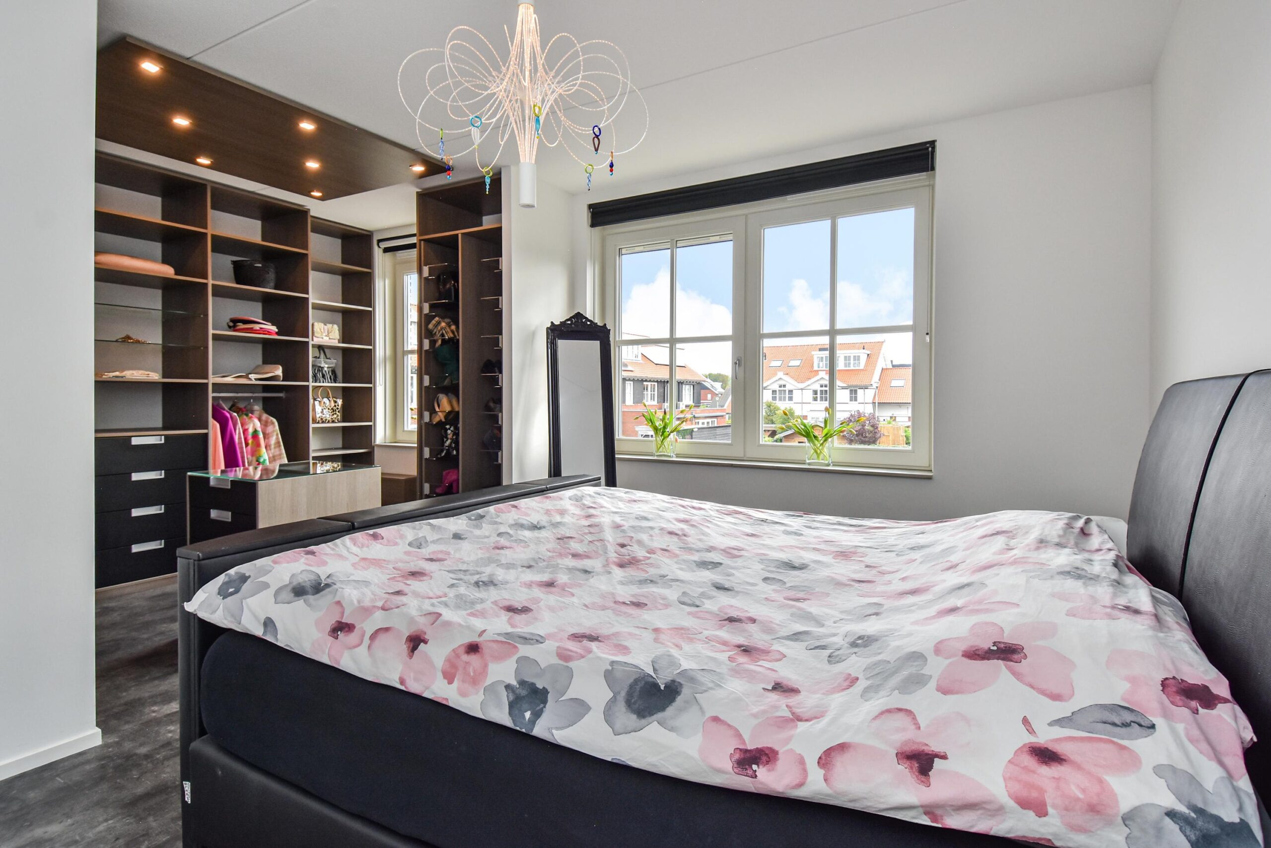 – de grootste slaapkamers is een samengevoegde kamer (eenvoudig weer terug te brengen) met een grote en uitgebreide inloop kledingkast