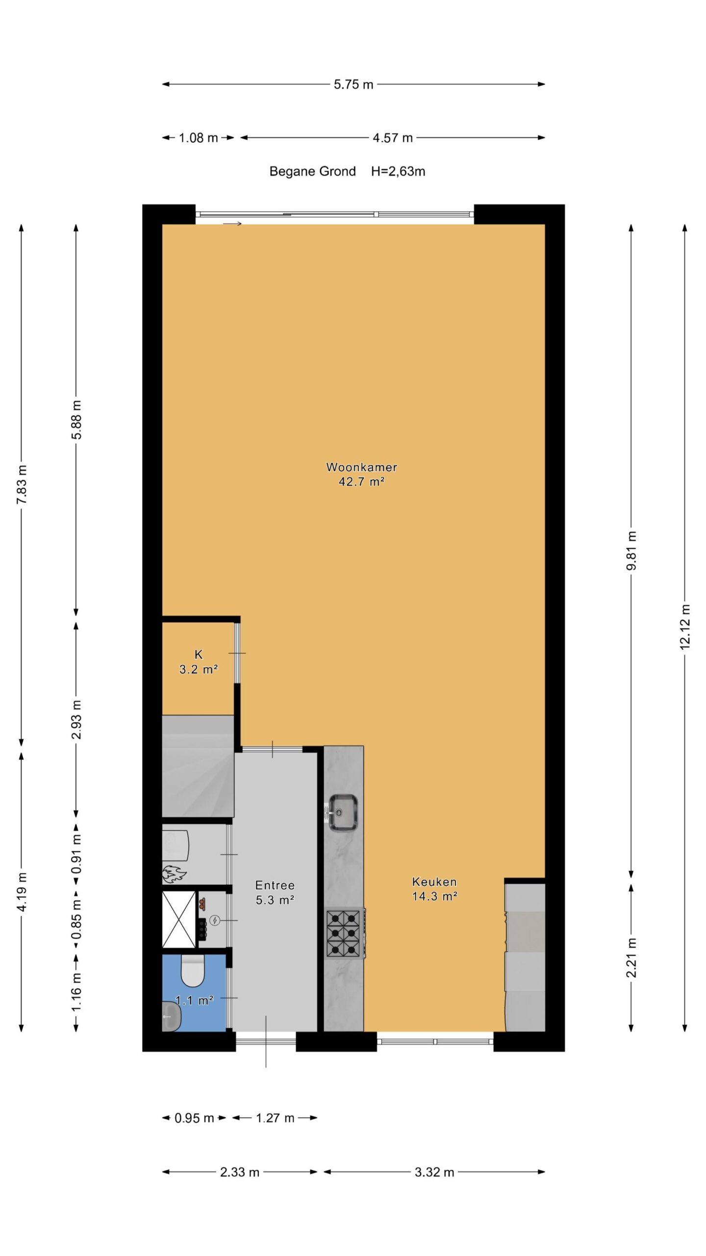 – entree/hal met meterkast, c.v.-installatie en toilet