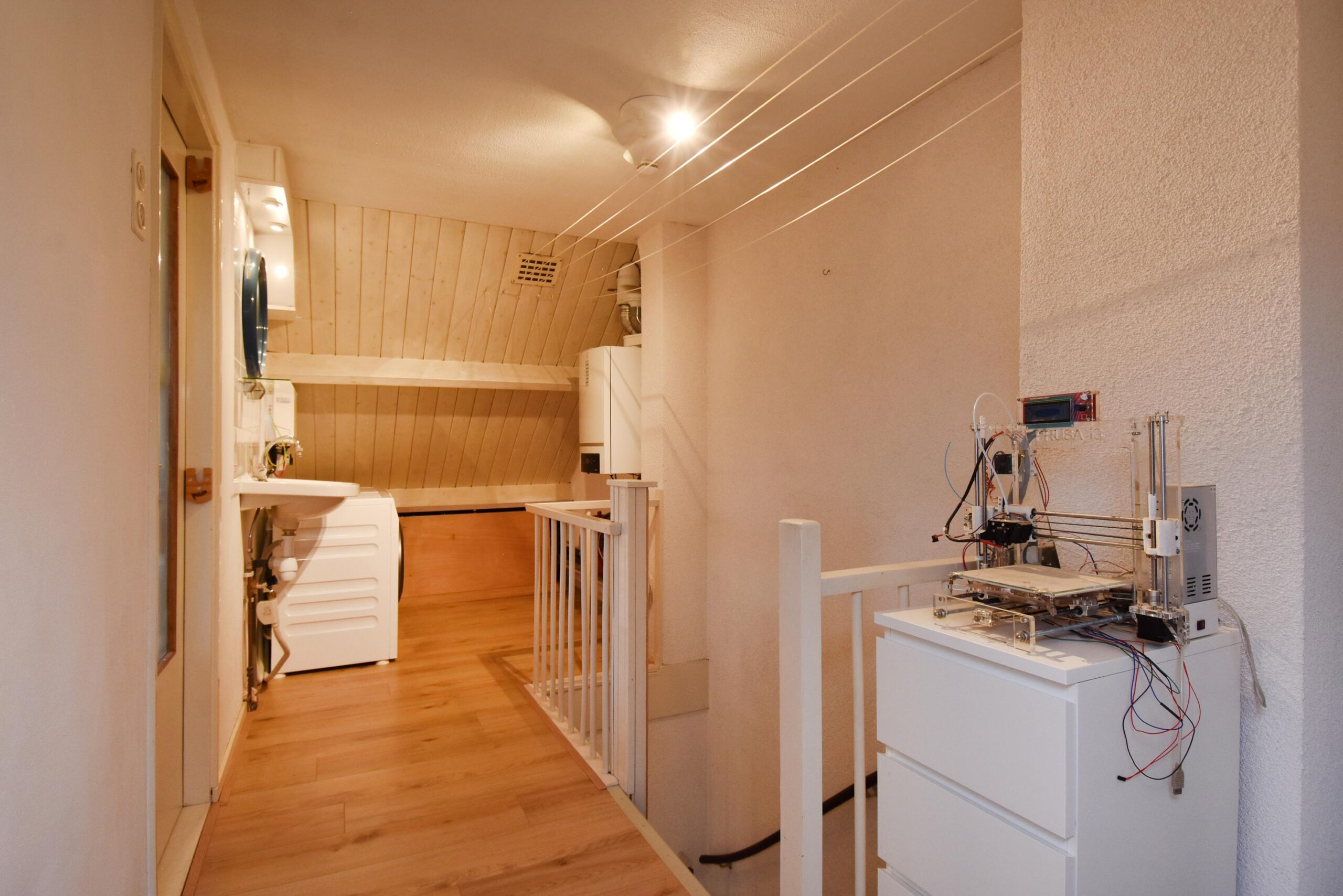 De vaste kasten in de knieschotten zorgen voor extra opbergruimte. De overloop biedt een wastafel, aansluiting voor wasmachine, cv-ketel en volop bergruimte.