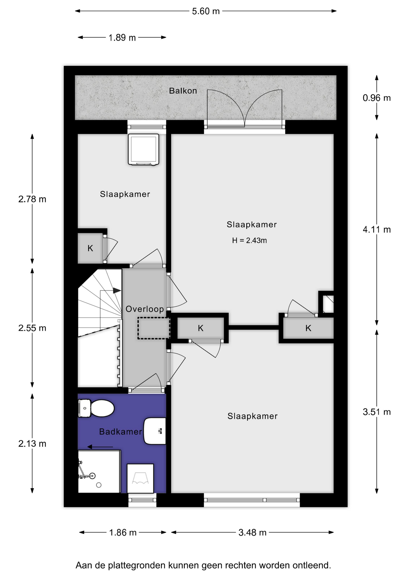 – Vliering 2.2m nokhoogte