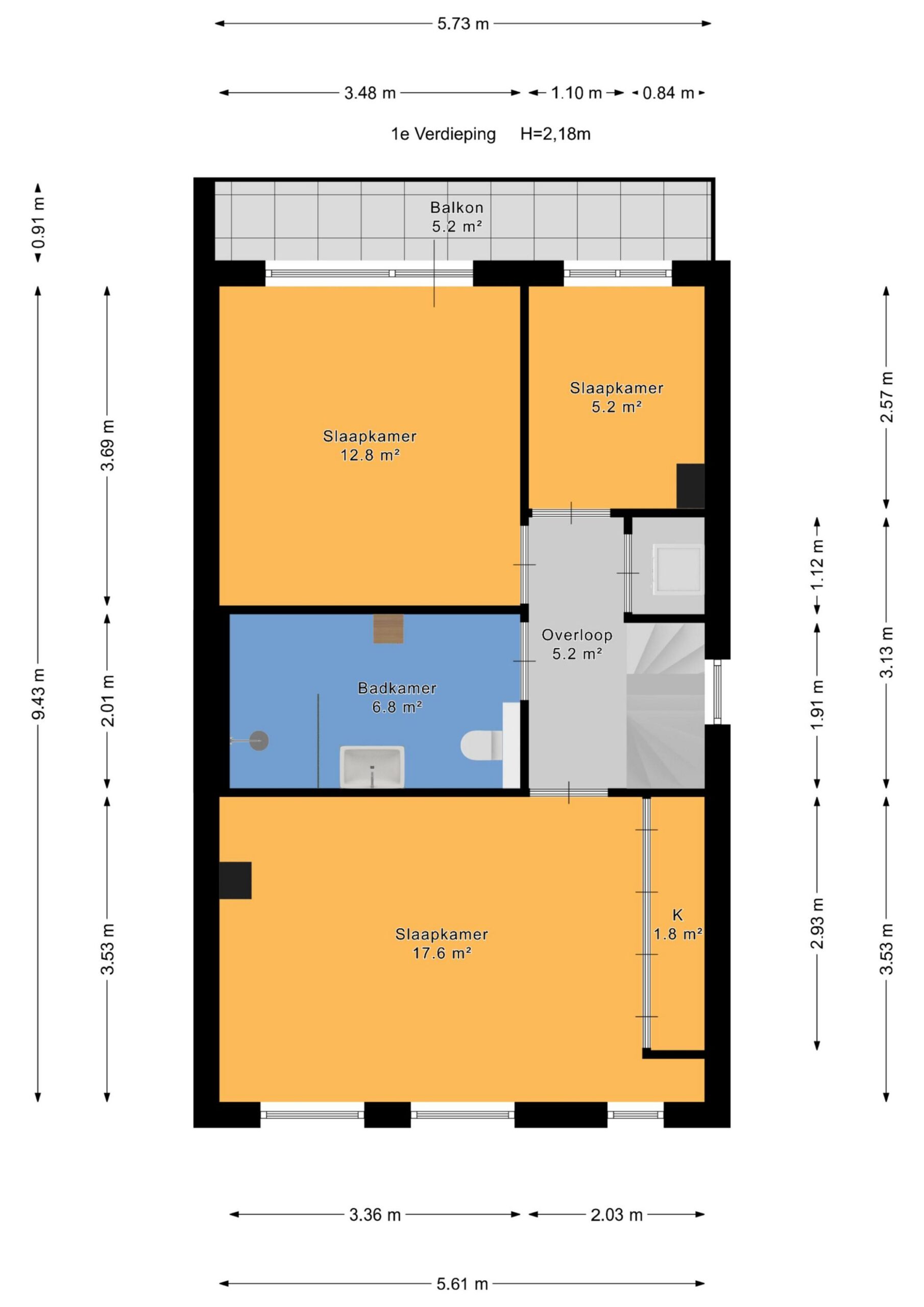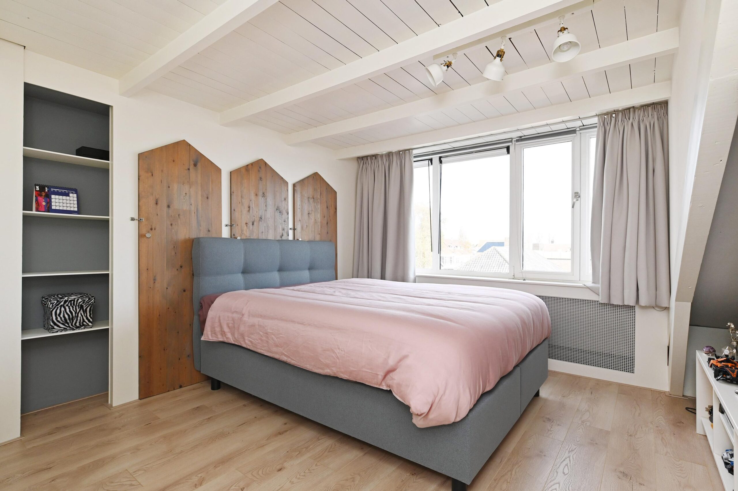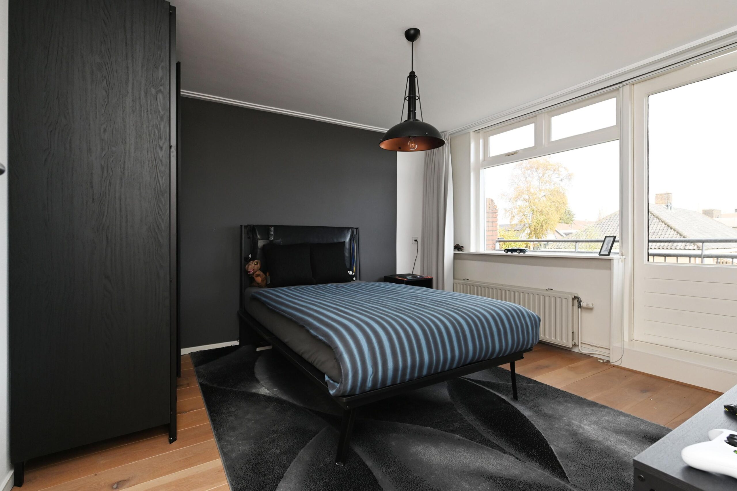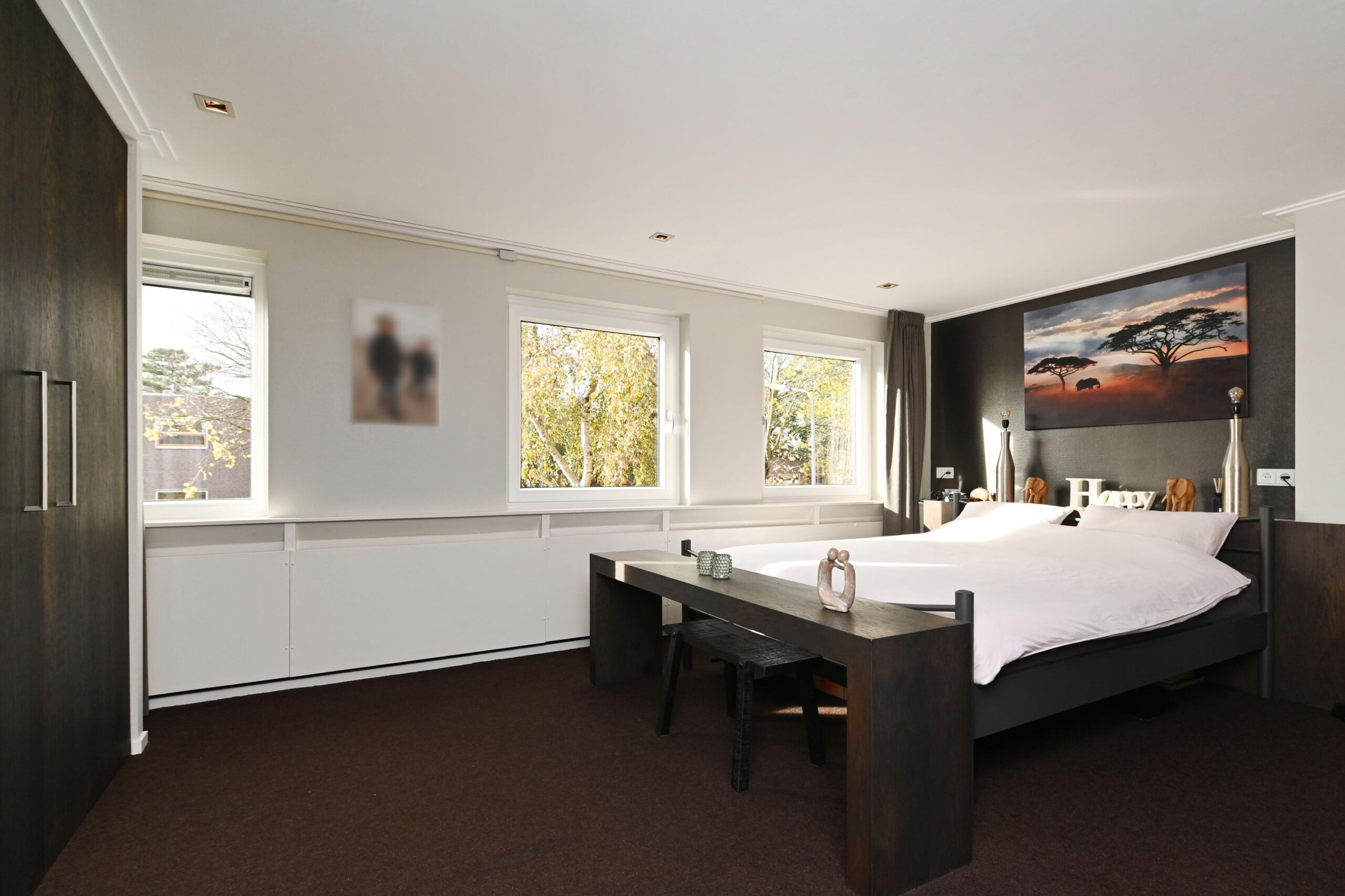 Slaapkamers 1e etage: op deze etage 3 ruime slaapkamers. Aan de voorzijde is de slaapkamer over de gehele breedte met fraaie schuifkast, kunststof kozijnen met dubbele beglazing en rolluiken geven extra veel comfort. Aan de achterzijde nog 2 slaapkamers. De grootste slaapkamer geeft tevens toegang tot het balkon. De 3e slaapkamer is wat kleiner en prima te gebruiken als kantoor, babykamer of inloopgarderobe.