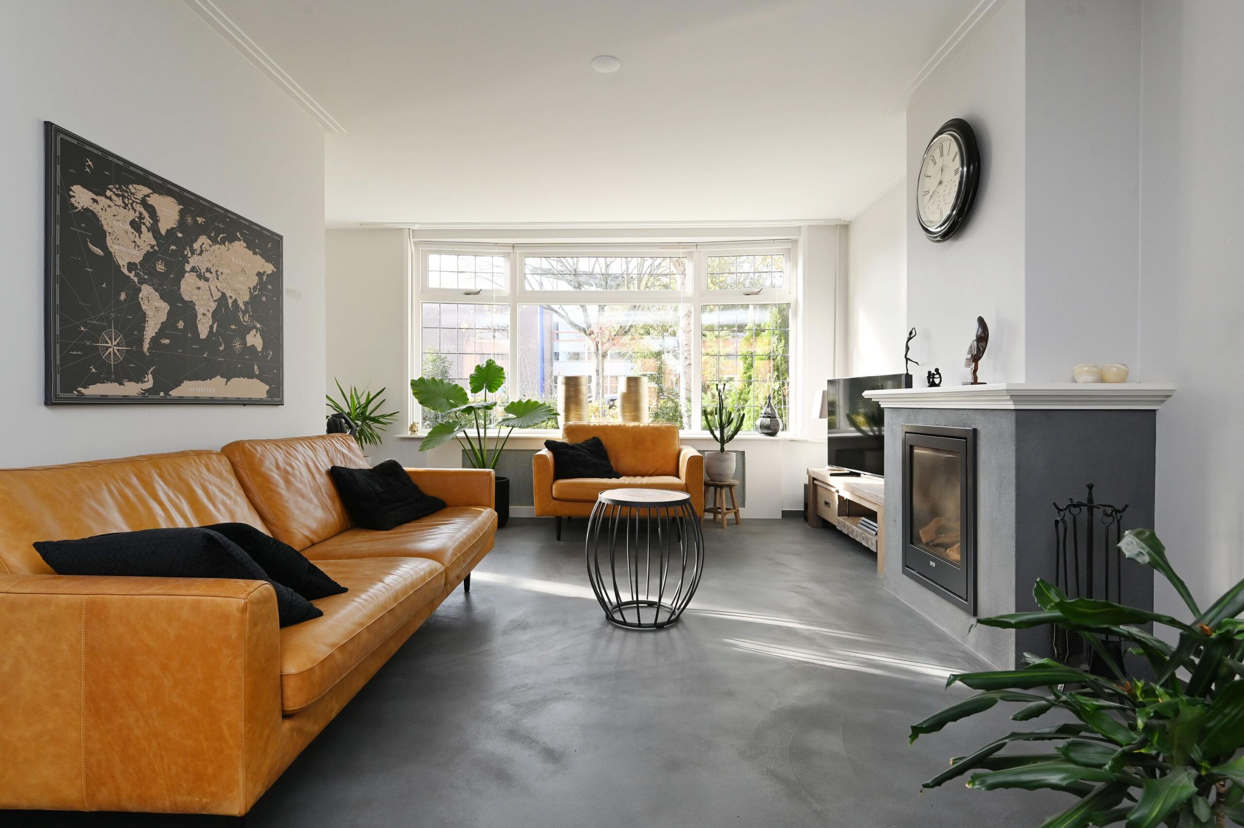 Woonkamer: de woonkamer is gesitueerd aan de voorzijde met grote raampartijen en uitzicht op de mooie Julianalaan. De complete begane grond is v.v. een betonlook vloer met vloerverwarming als bijverwarming. In de woonkamer is ook nog een (gas)haard voor de extra gezellige winteravonden. Aan de achterzijde openslaande deuren naar de tuin en naast de keuken ruimte voor minimaal een 6-persoons eettafel.