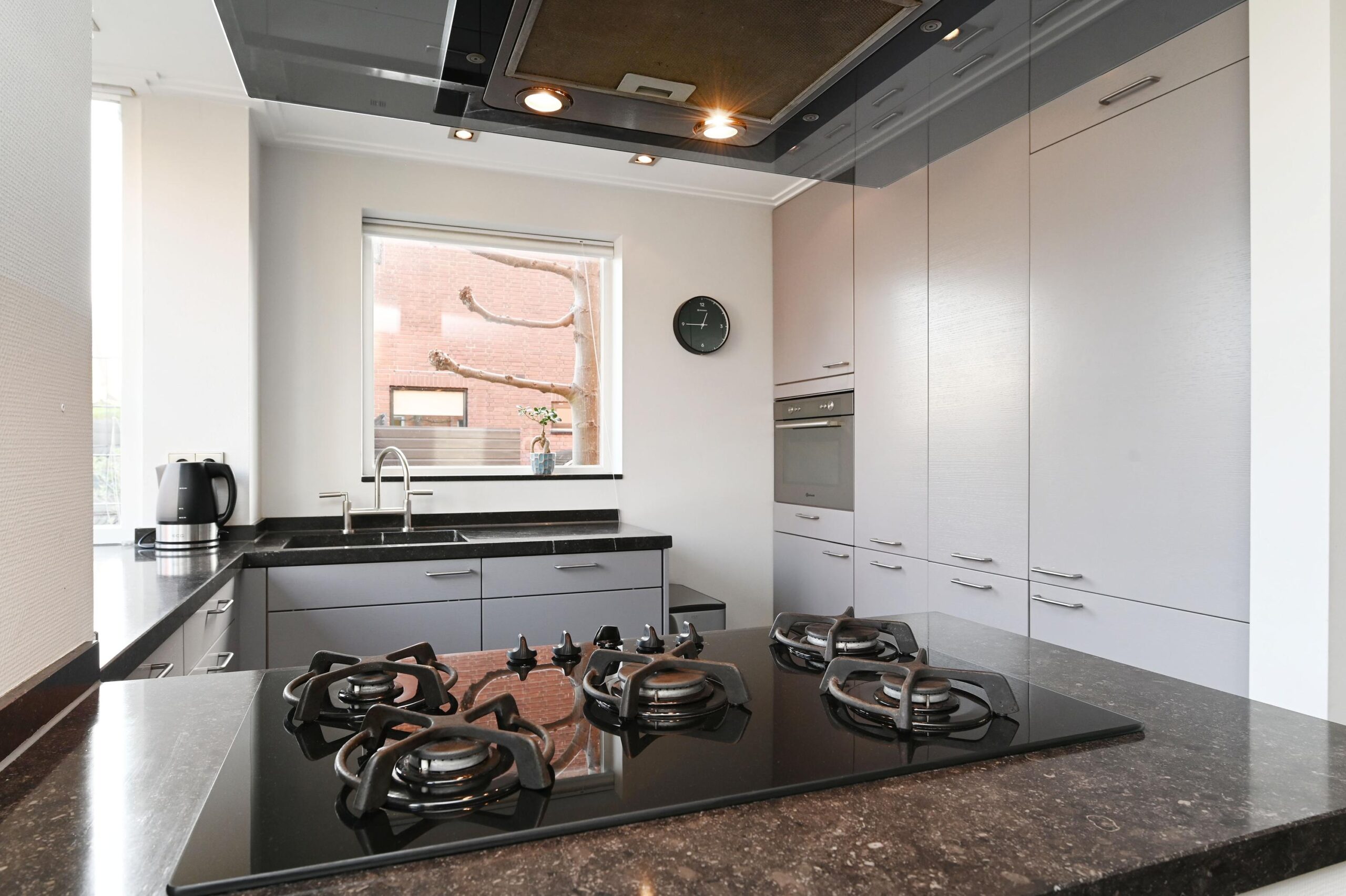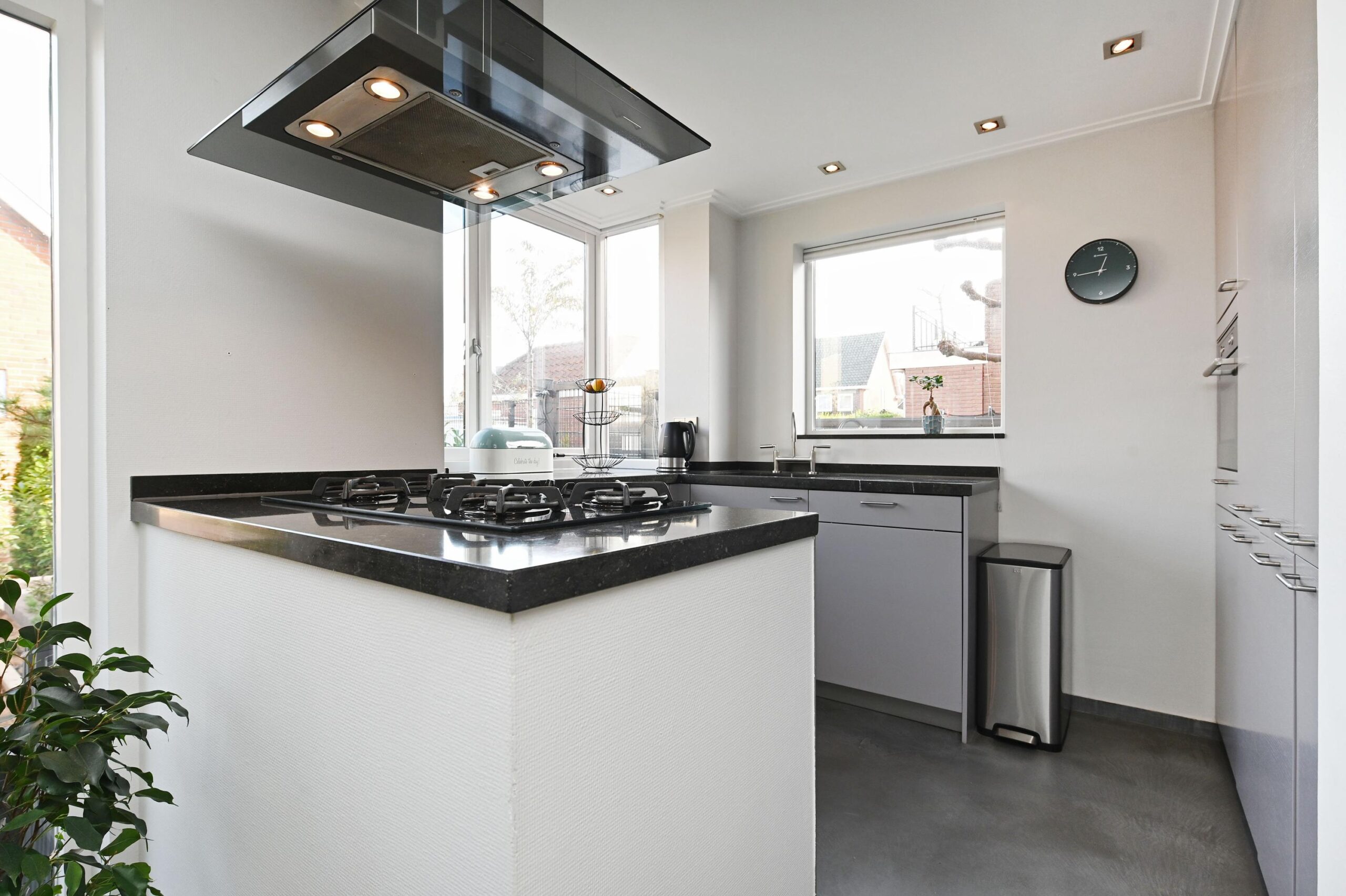 De keuken is modern afgewerkt en heeft een speelse verhoging van 1 traptrede. Vanuit de keuken heb je overzicht over de living, anders gezegd: bij het kokkerellen is er interactie met het gezin of de visite aan tafel. Tijdens de verbouwing is een kleine uitbouw van de keuken toegepast waardoor het aanrecht extra diepte heeft. De keuken is verder van alle inbouwapparatuur voorzien die je in een hedendaagse keuken mag verwachten.