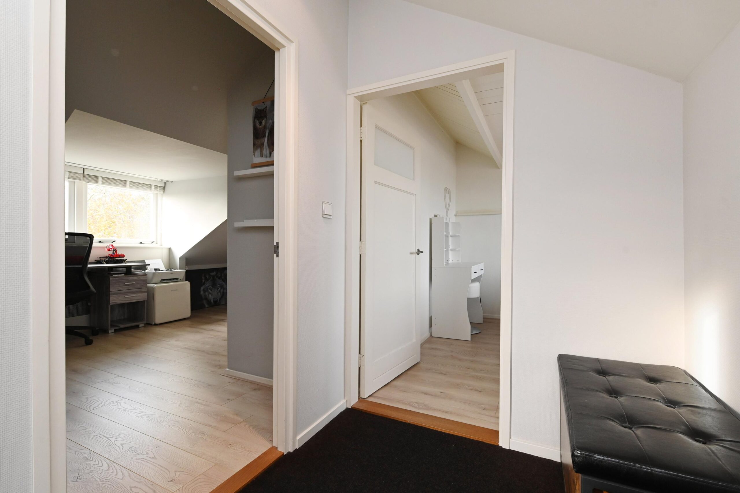 Overloop: op de overloop is een vaste kast gemaakt waarachter bergruimte is en waar de CV ketel is opgehangen.