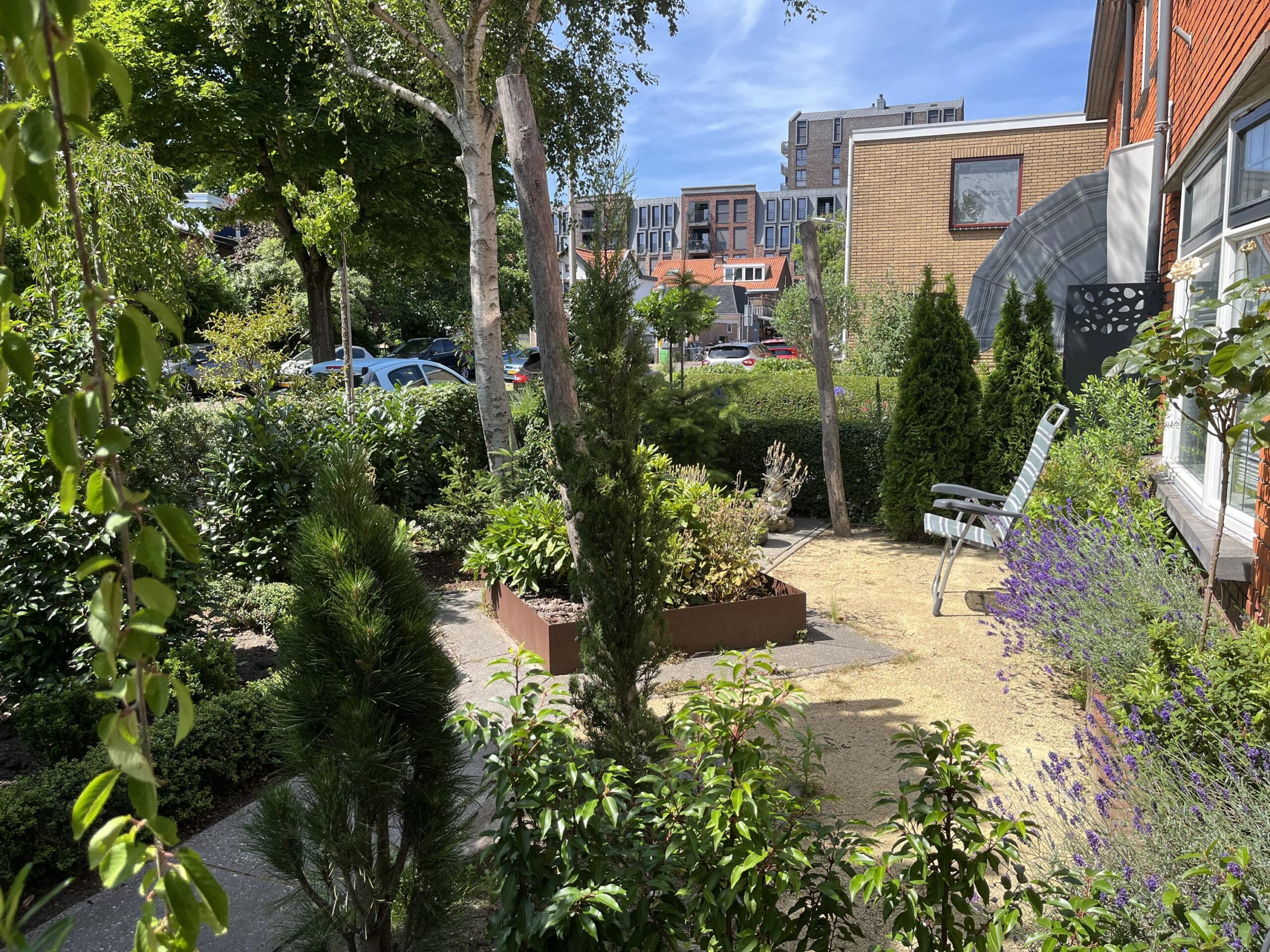 Tuin: een heerlijke tuin met extra breedte door de hoekligging. De tuin is gelegen op het noordoosten, door de hoekligging een hele gunstige bezonning gedurende de hele dag. Bij het late avondzonnetje is het geniet-momentje in de voortuin. Recent heeft de tuin een metamorfose ondergaan en is aangelegd met sfeer en detail met het Franse look & feel gevoel. De mooie, natuurstenen tafel maakt onderdeel uit van het tuinontwerp en blijft achter. In de tuin is een uitgang naar het zijpad gemaakt. En vanuit de tuin toegang tot de garage.