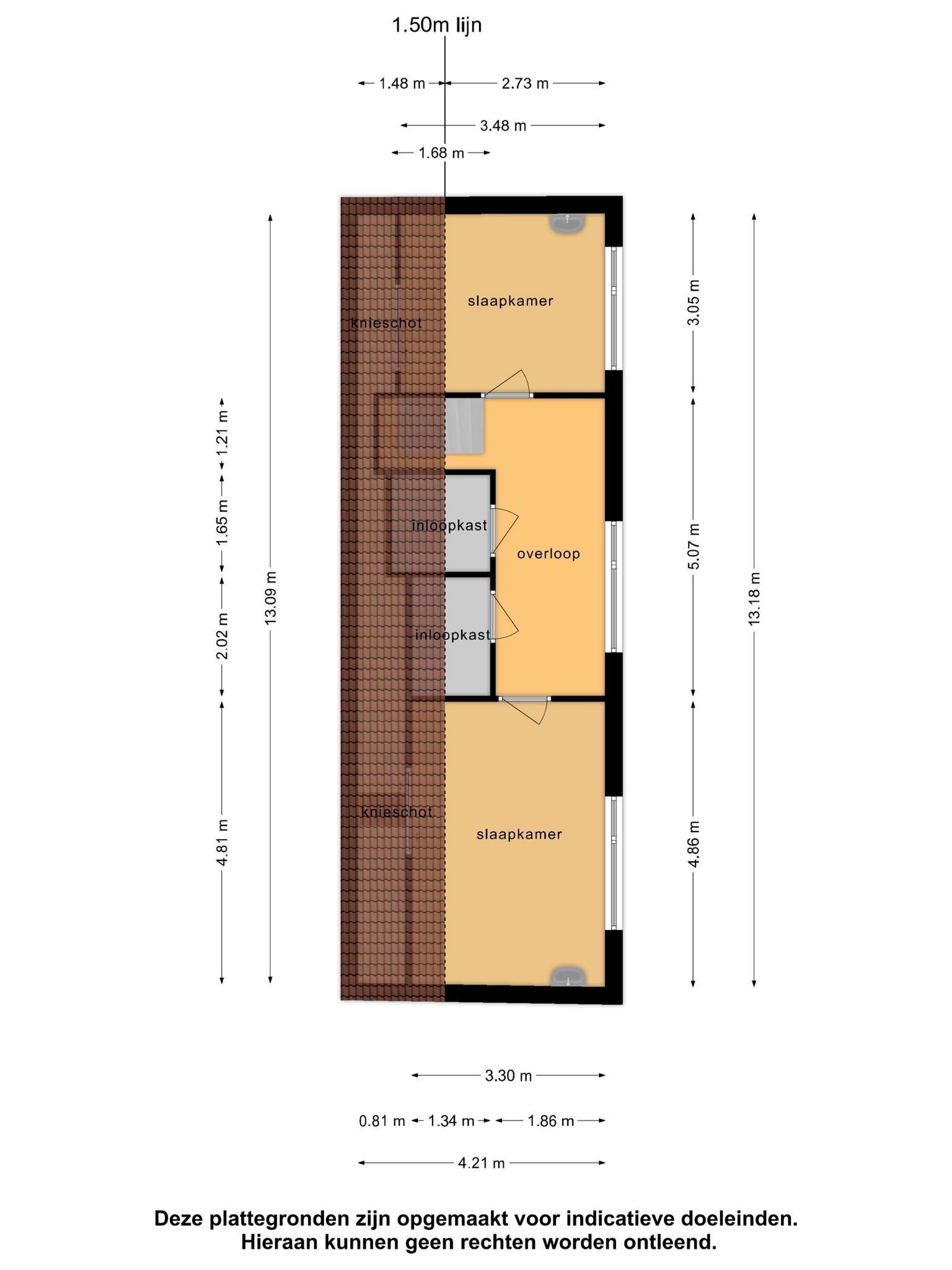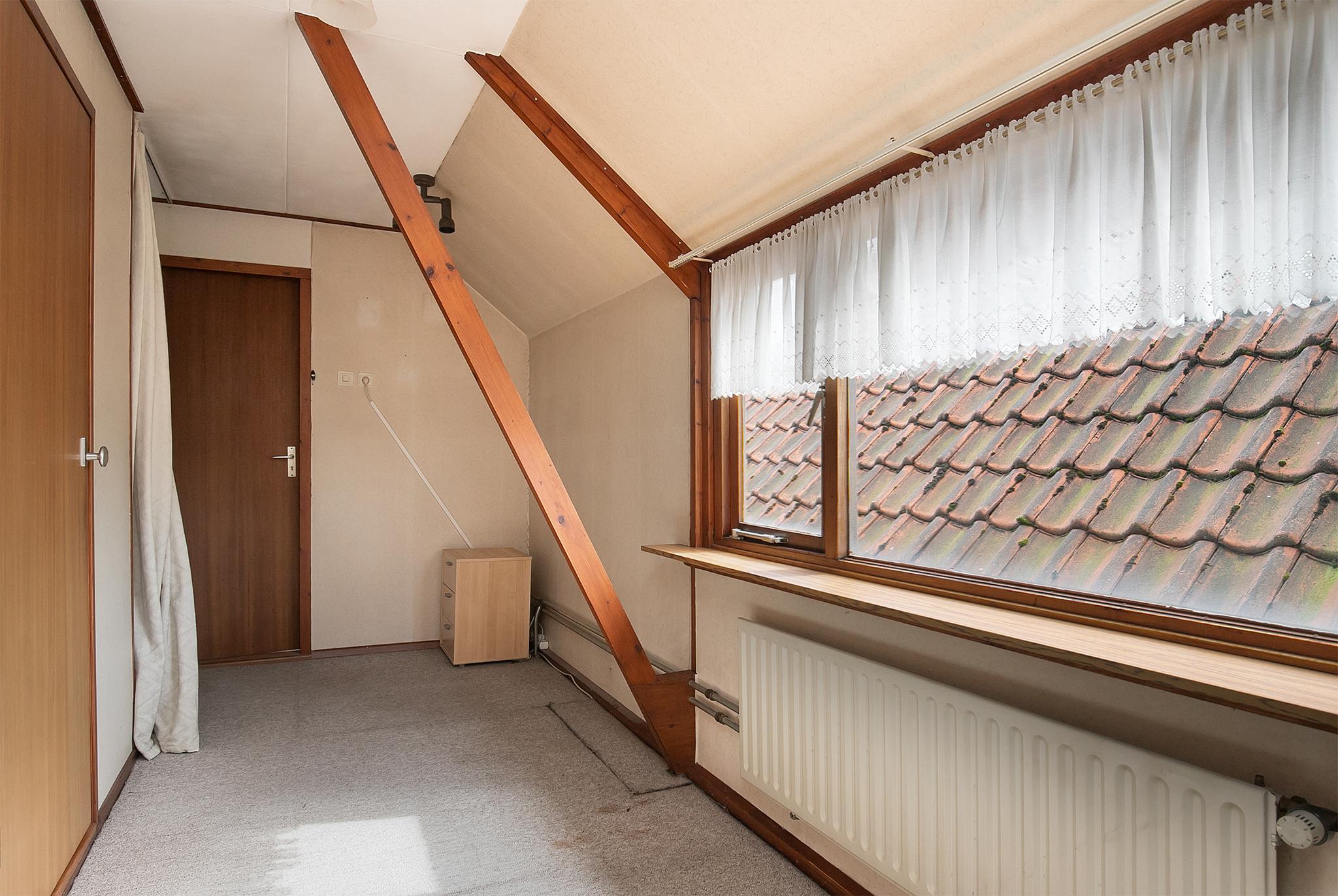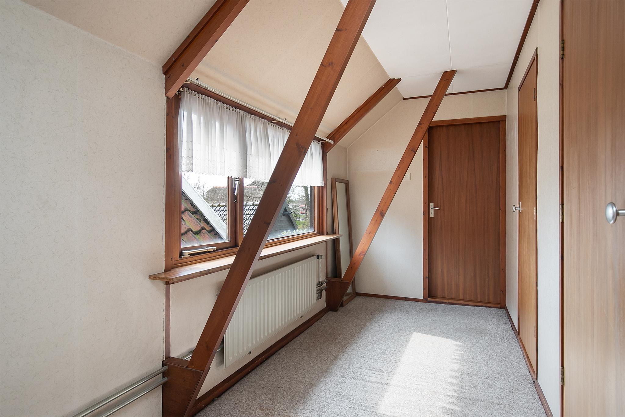 Slaapverdieping: Overloop met 2 grote vaste kasten. Twee slaapkamers. Deze verdieping is ruime tijd geleden vergroot door de nokverhoging waardoor de 2 slaapkamers een prima maatvoering hebben verkregen.