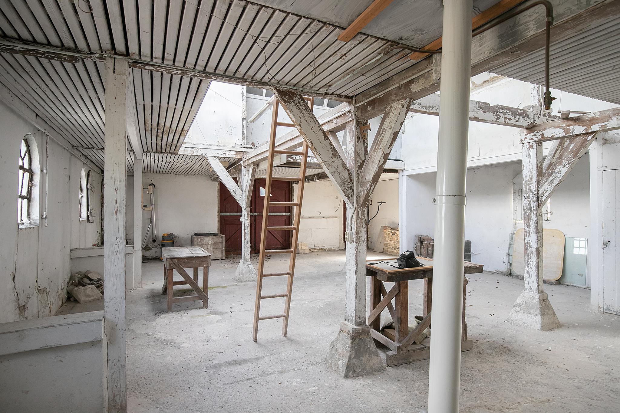 Indeling atelier/voormalige stal: Zoals geschreven de voormalige stal is de laatste decennia gebruikt als atelier juist vanwege de open ruimte met indirect (noordelijk) licht. Beschikt over eigen toiletruimte en meterkast. Grote openslaande deuren aanwezig. Mooie ruimte voor meerdere doeleinden geschikt te maken.
