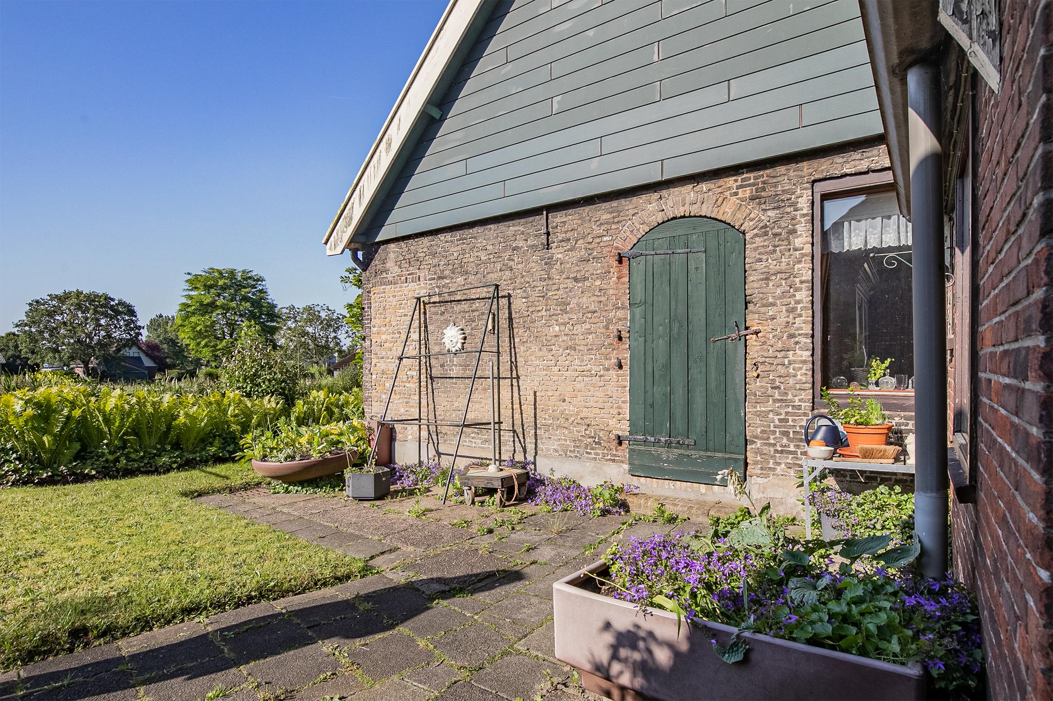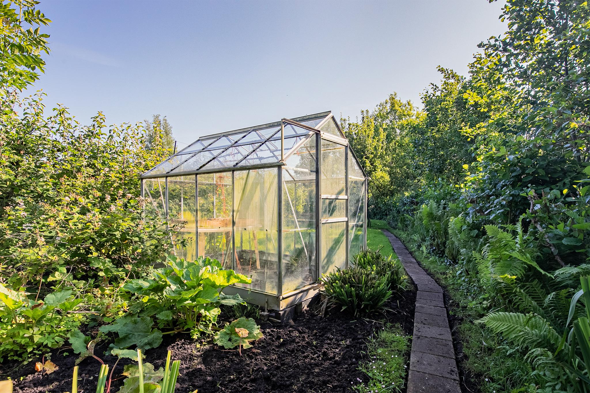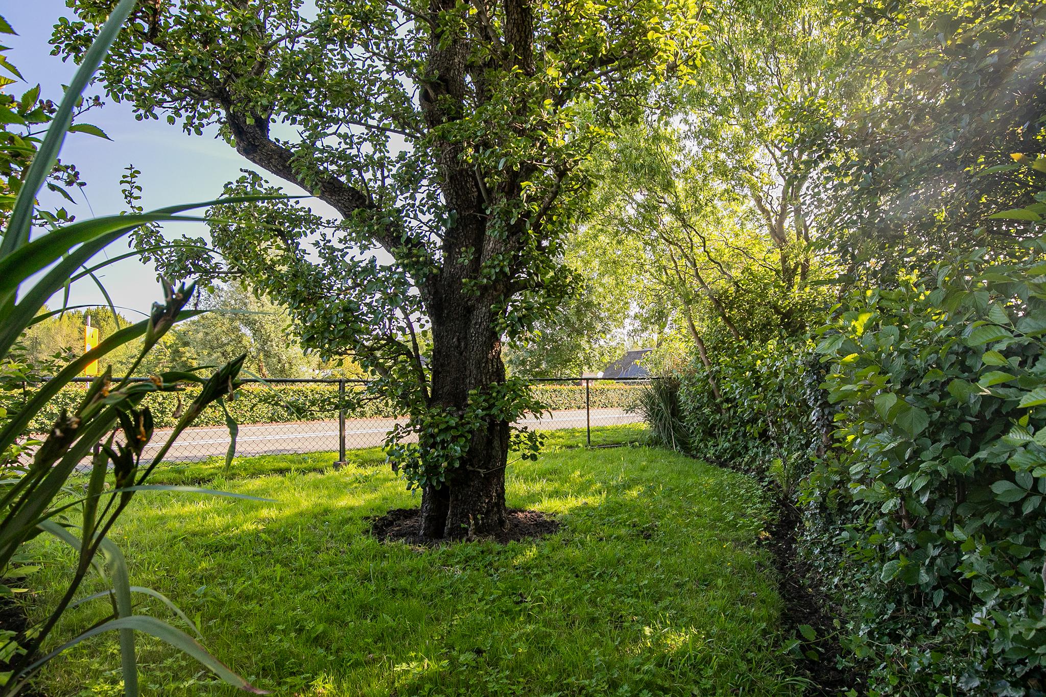 Tuin: Heerlijk royaal perceel met overal wel een plekje om beschut in de schaduw of volop in de zon te genieten. De boomgaard en moestuin nodigen de liefhebbers van tuinieren uit om hun groene vingers uit te strekken en te genieten van verse producten uit eigen tuin. De buitenruimte is groot genoeg voor het houden van kleine dieren. Aan voorzijde is de tuin met een flink hek afgeschermd, aan de achterzijde wordt de tuin begrenst door een watergang.