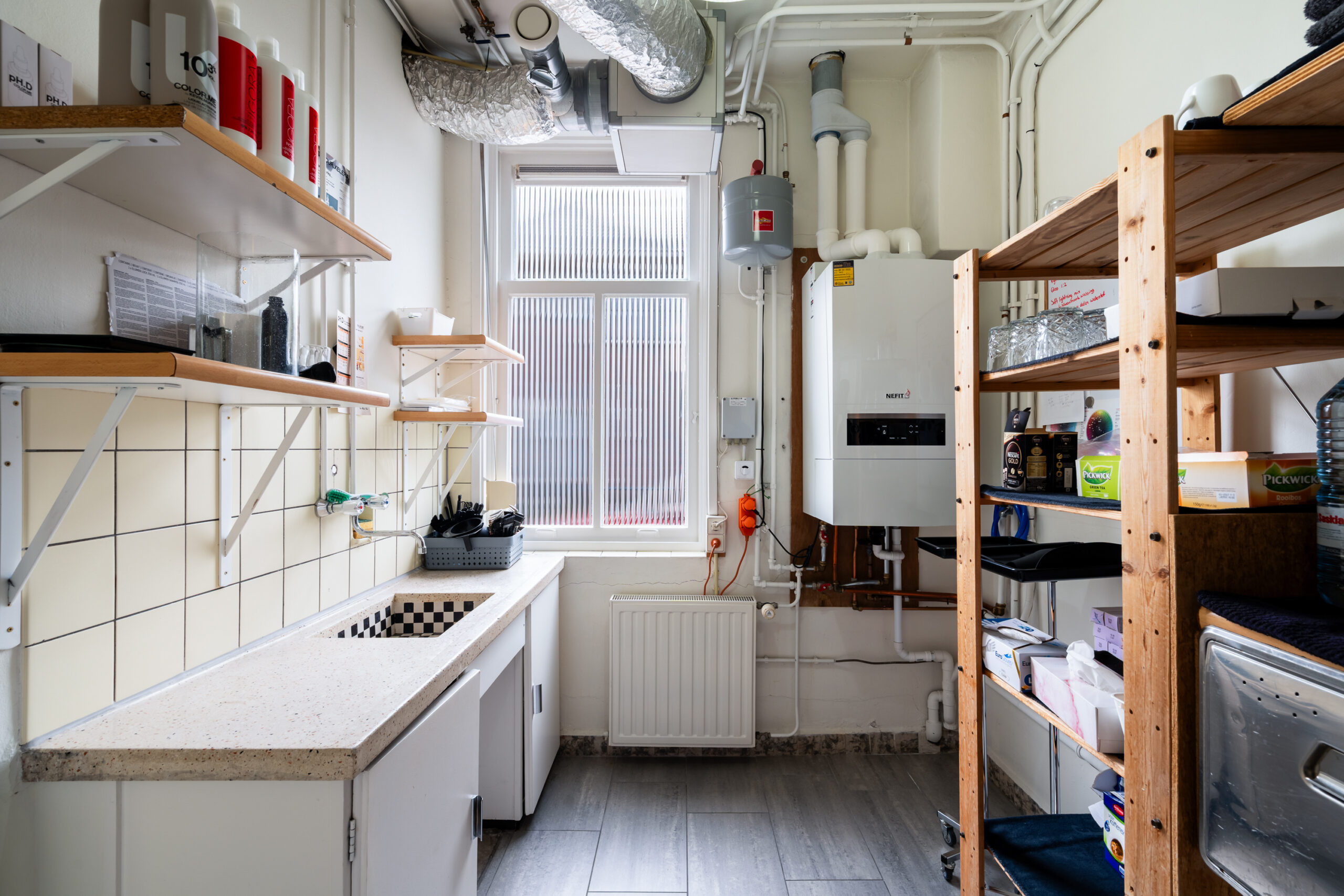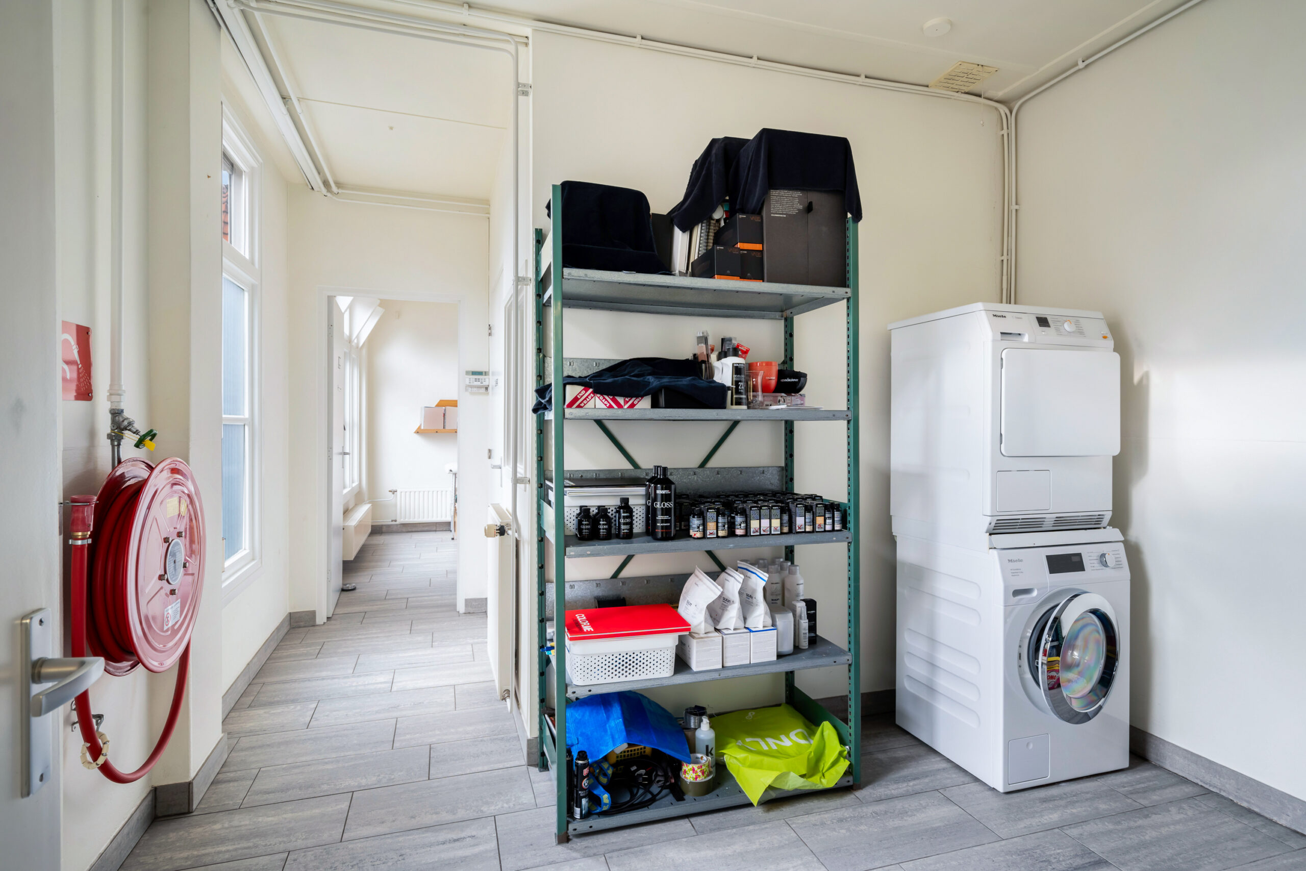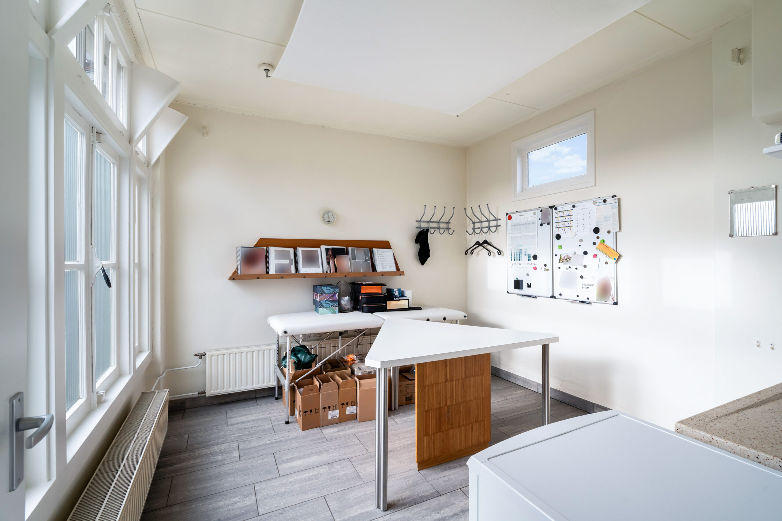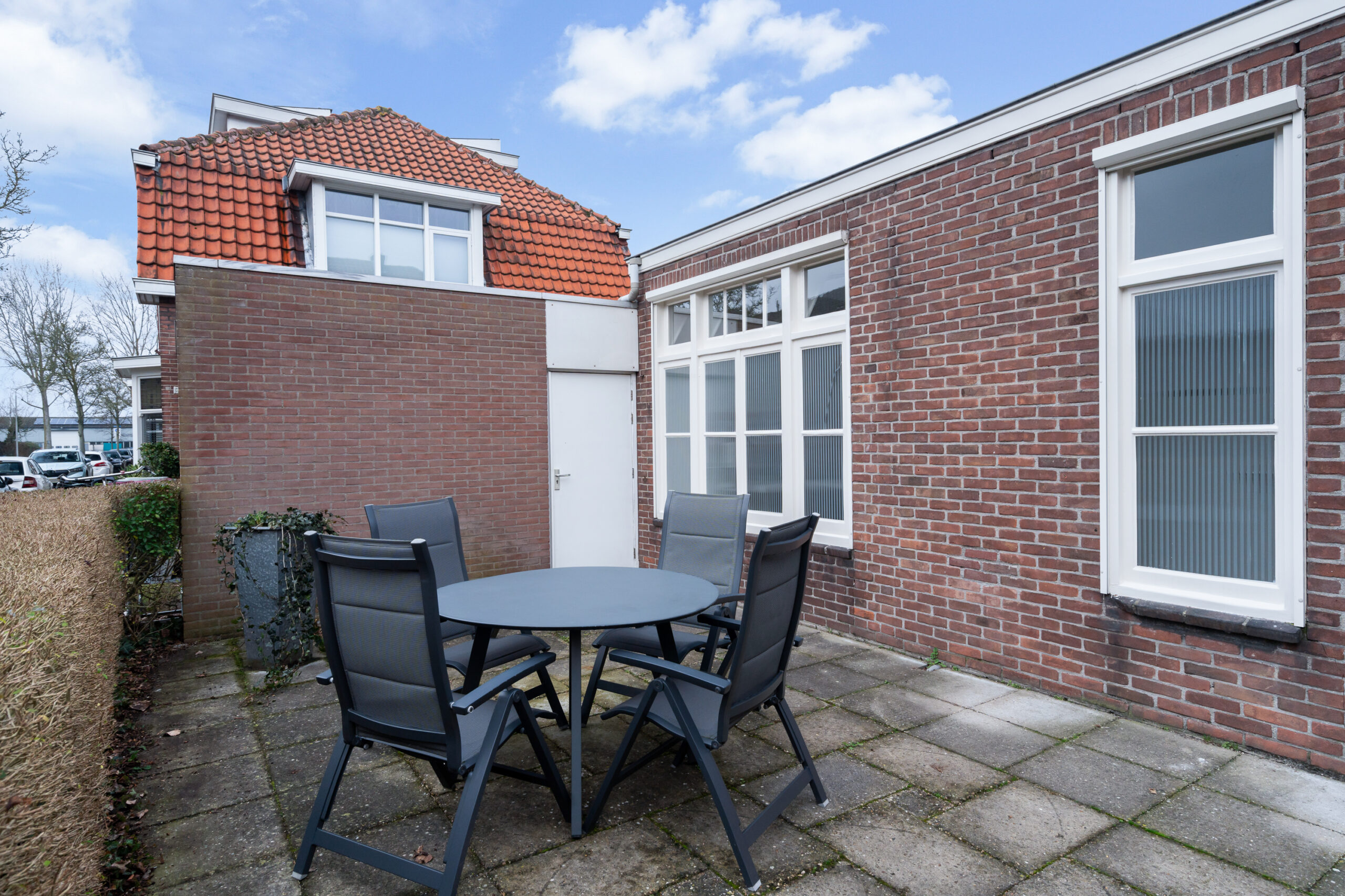 Verder vind je hier een gang, toilet met fonteintje, meterkast en trap naar boven. Aan de achterzijde een werkkamer met opstelplaats voor de cv-ketel en toegang tot de tuin. Daarnaast een kantoorruimte met eigen ingang – ideaal voor werken aan huis.