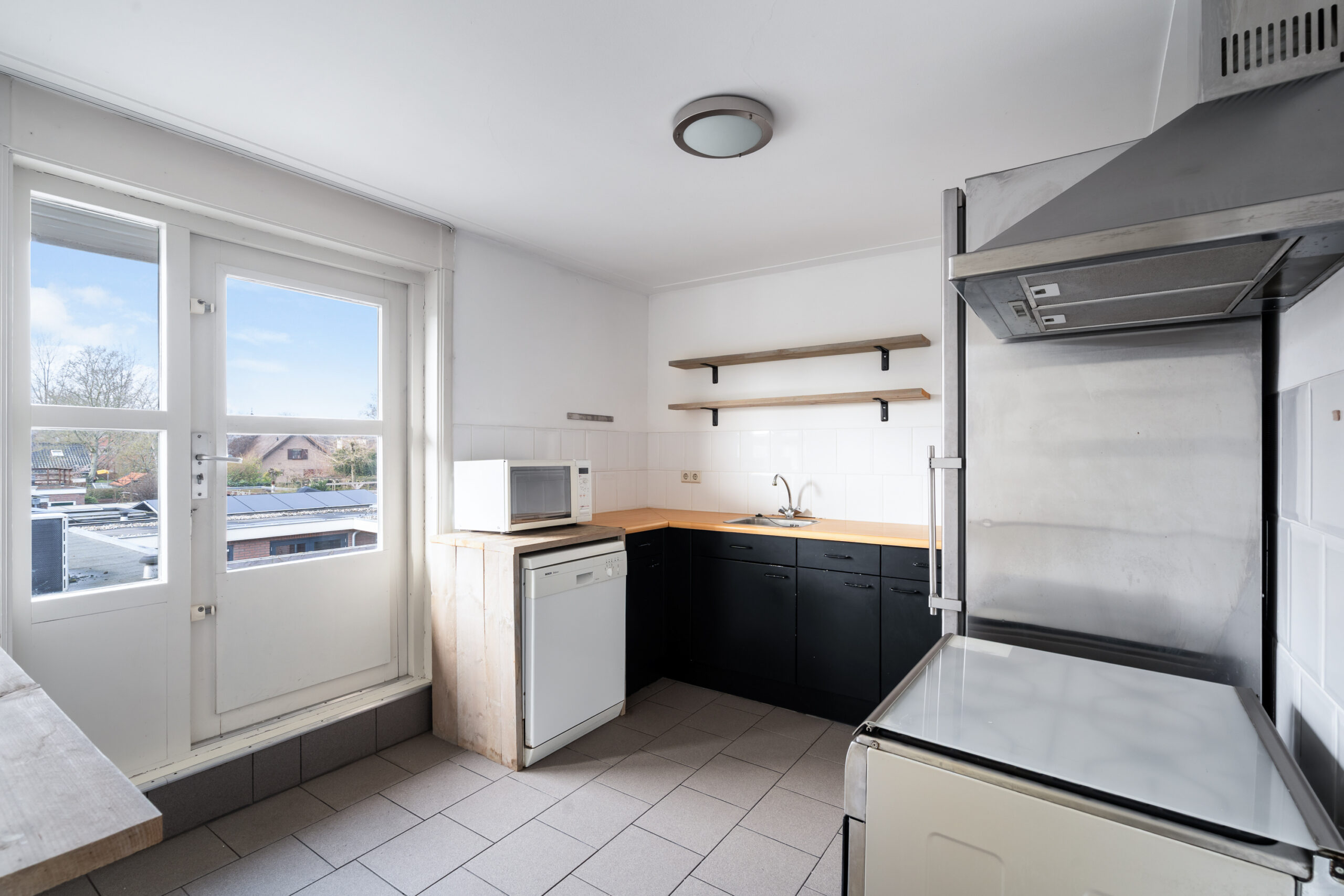 De keuken is eenvoudig, maar functioneel en biedt toegang tot het zonnige dakterras op het zuidwesten – hier pak je de middag- en avondzon mee.