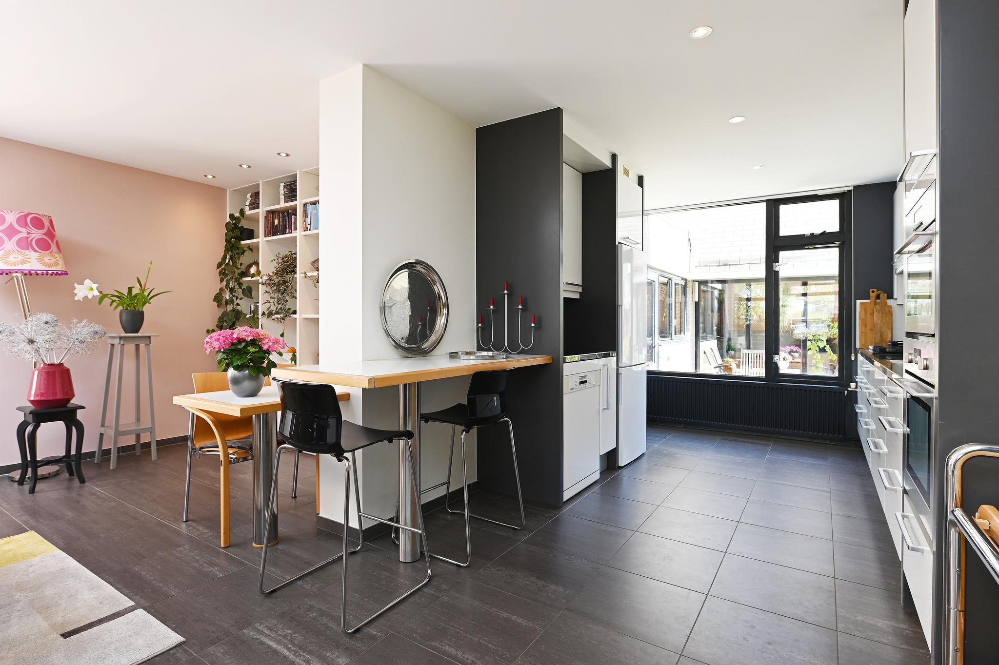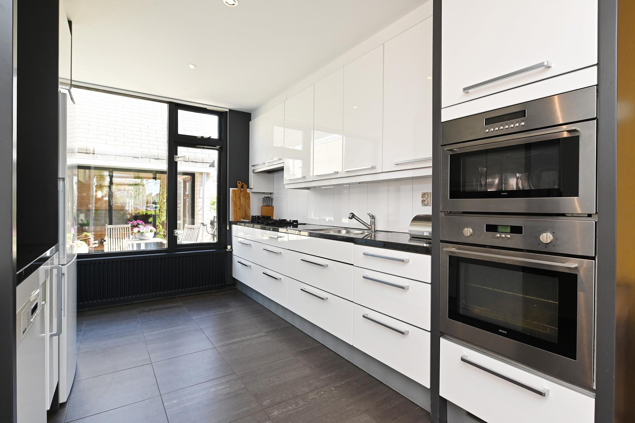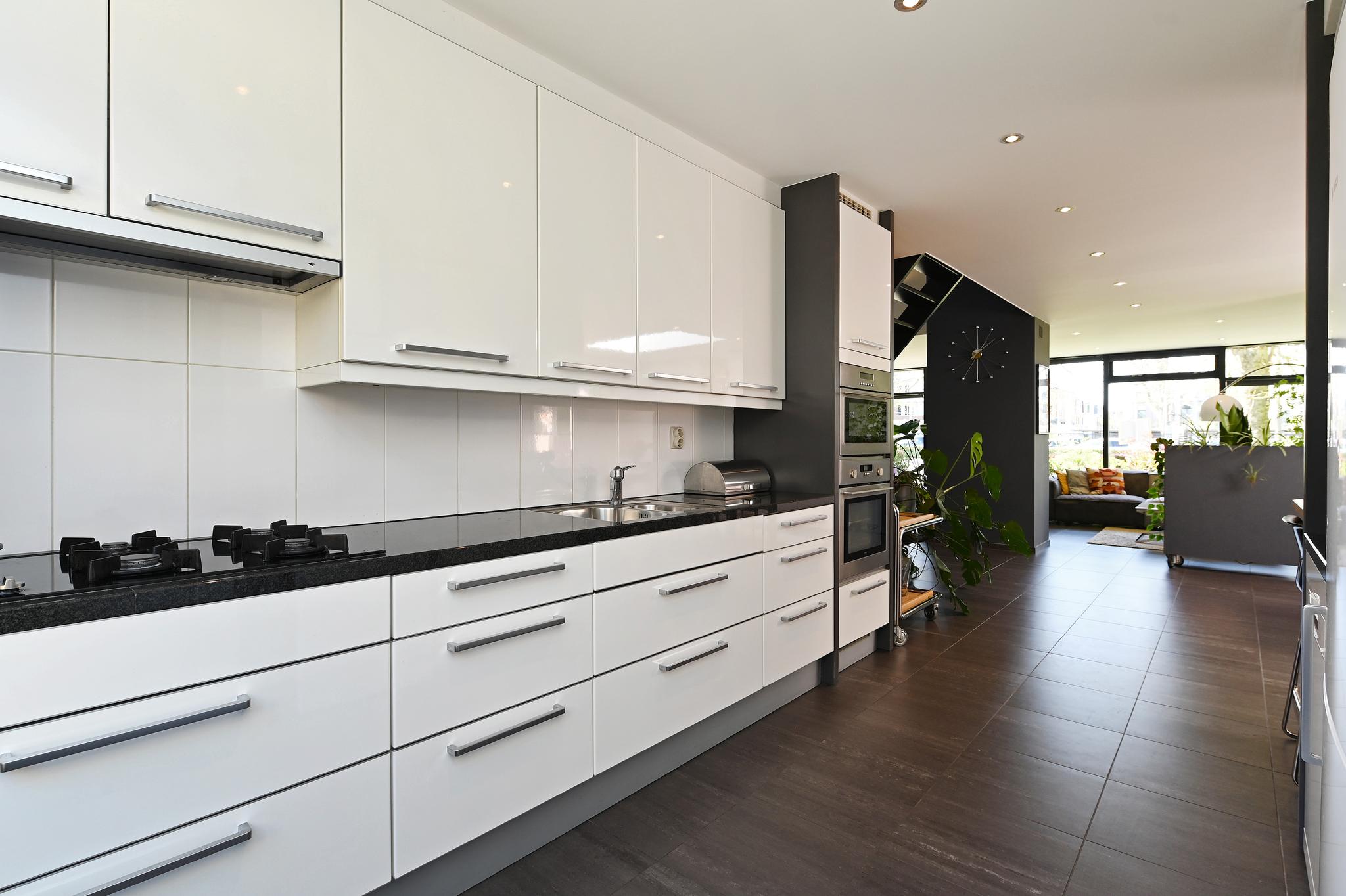 De open keuken is modern en compleet uitgerust met diverse inbouwapparatuur (o.a. ATAG 5-pits gas-op-glas met wokbrander, oven, magnetron), granieten werkblad en in directe verbinding met de woonkamer. Vanuit de living bereik je de royale slaapkamer op de begane grond met ingebouwde kasten en directe toegang tot de stijlvolle badkamer (ligbad, inloopdouche, wandcloset en wastafelmeubel).