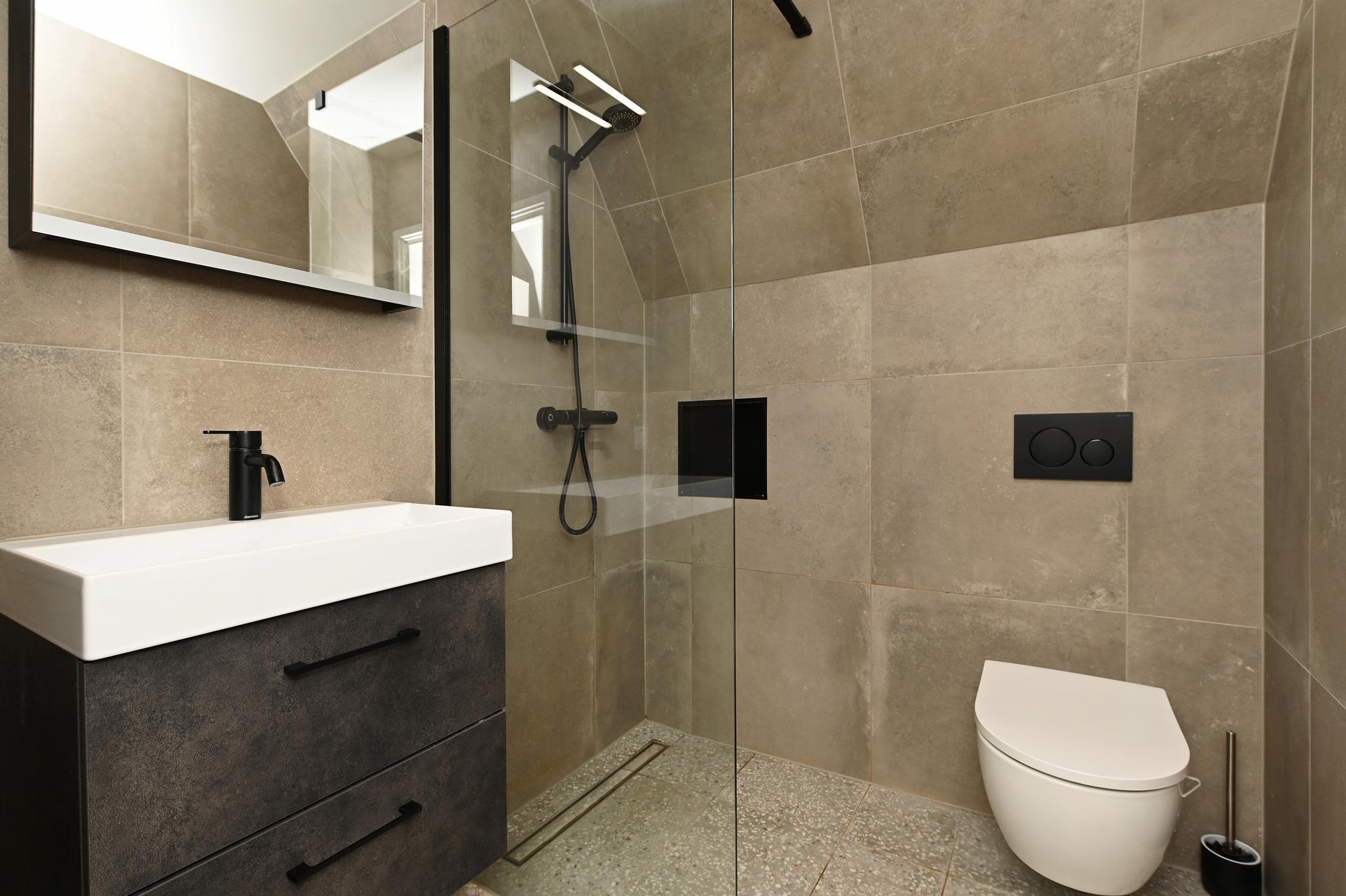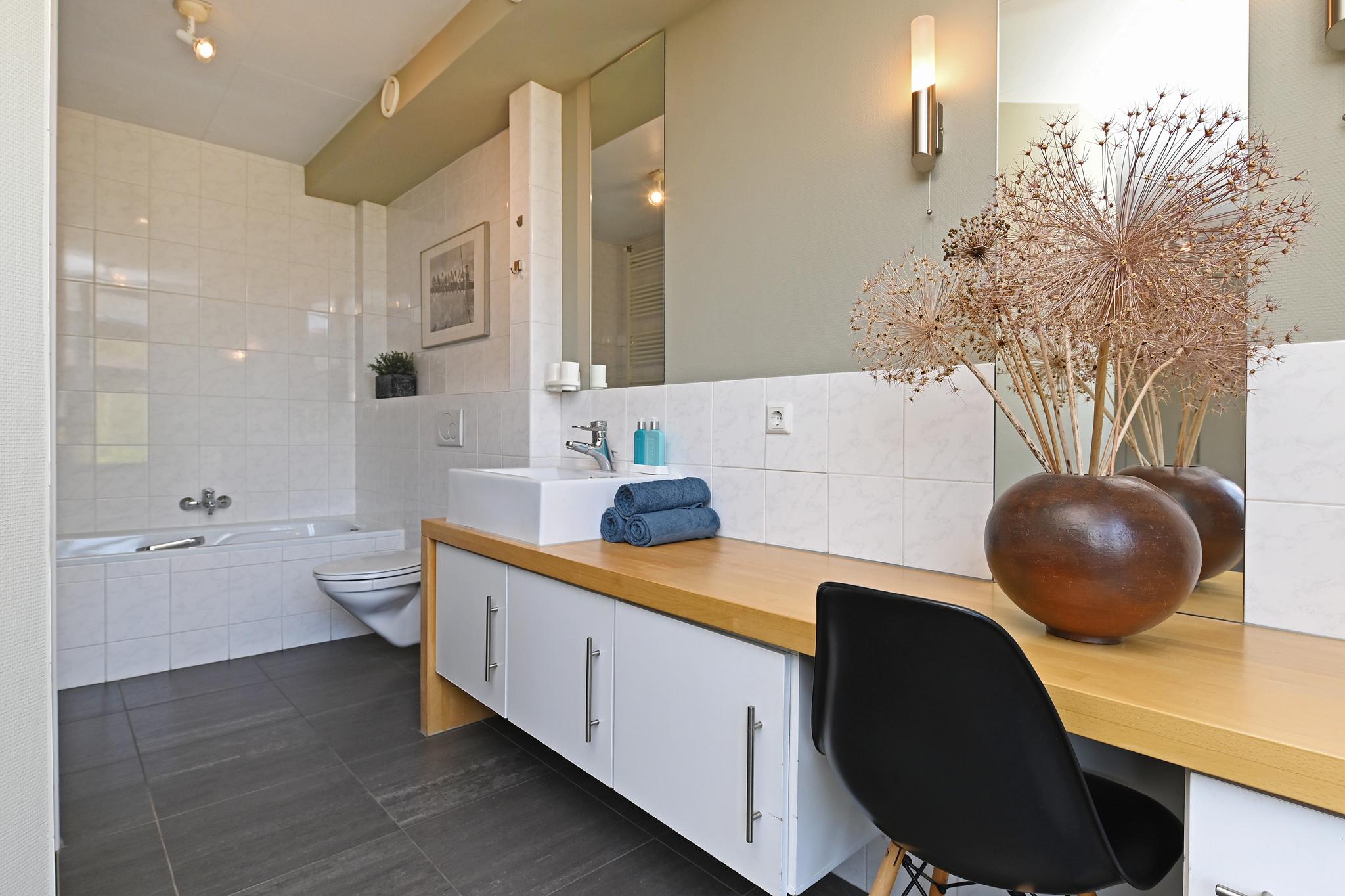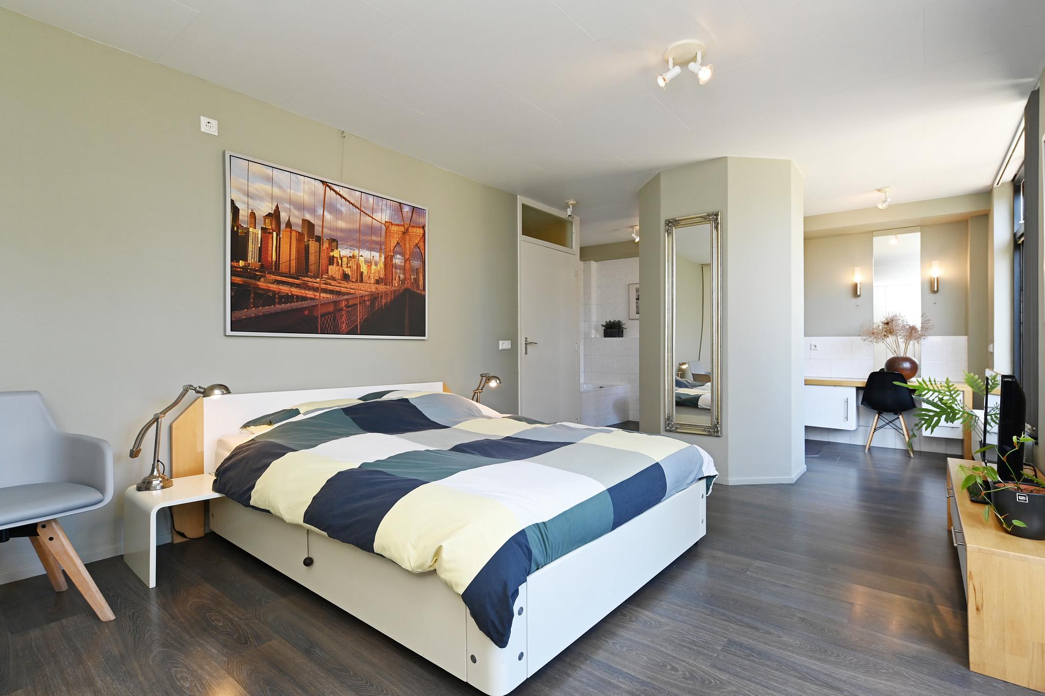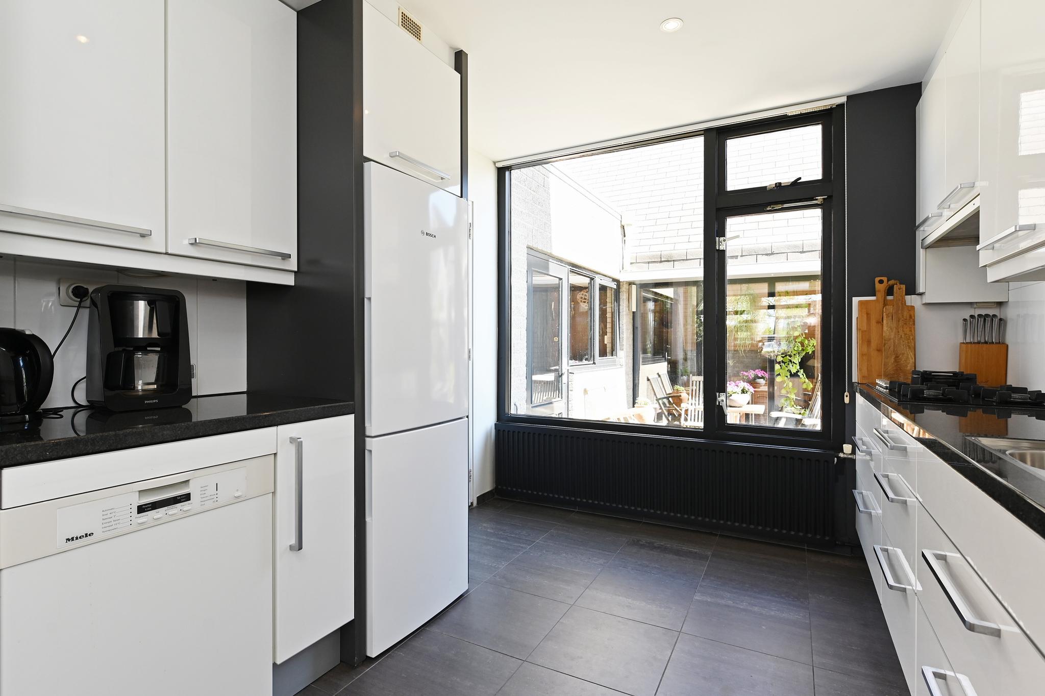 De open keuken is modern en compleet uitgerust met diverse inbouwapparatuur (o.a. ATAG 5-pits gas-op-glas met wokbrander, oven, magnetron), granieten werkblad en in directe verbinding met de woonkamer. Vanuit de living bereik je de royale slaapkamer op de begane grond met ingebouwde kasten en directe toegang tot de stijlvolle badkamer (ligbad, inloopdouche, wandcloset en wastafelmeubel).
