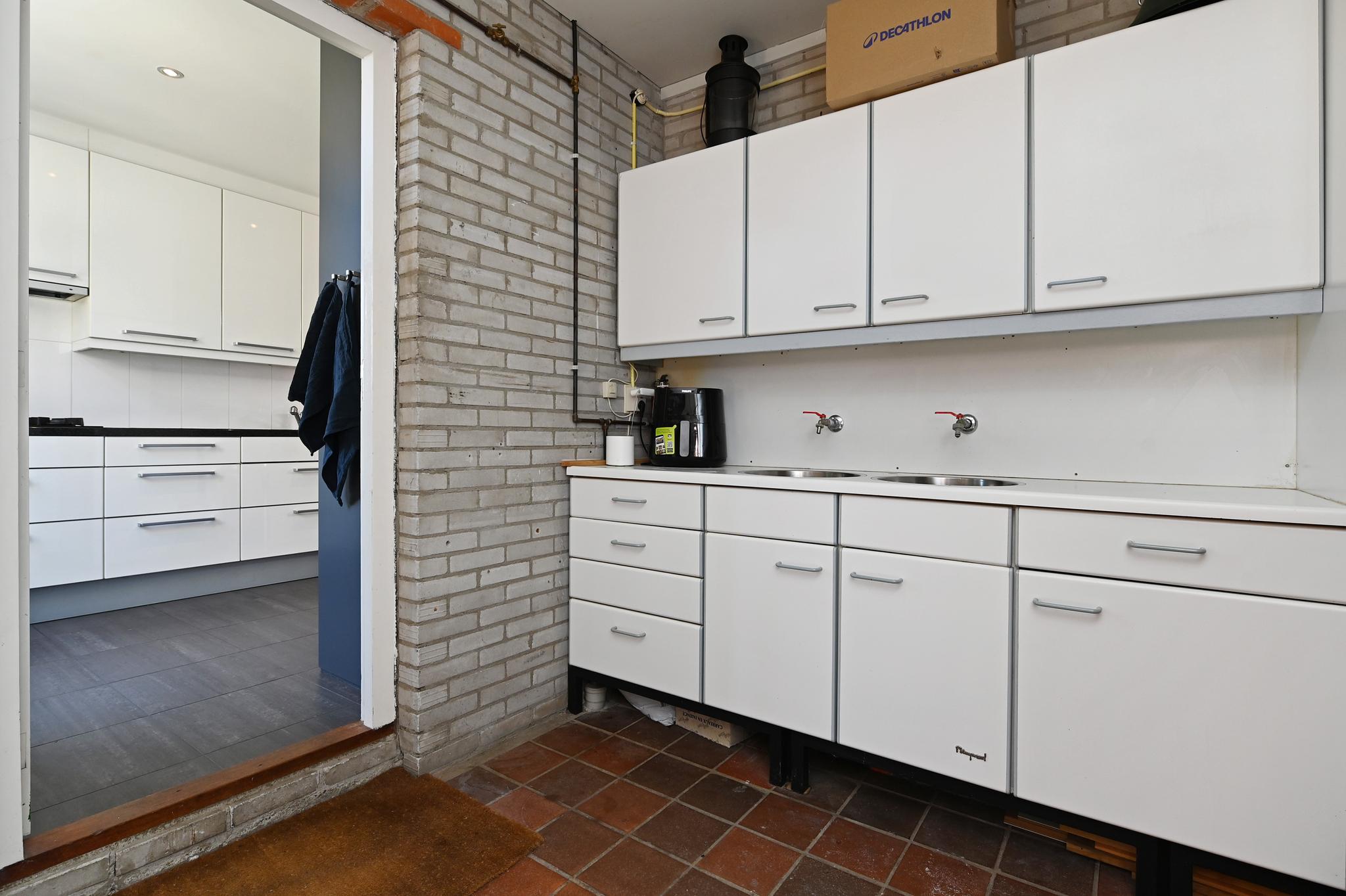 Hobbyruimte en praktijk/studiekamer: Vanuit de keuken toegang tot een ruime berging annex hobbyruimte met extra keukenblok en werkbank. Aansluitingen voor een tweede toilet zijn aanwezig. De aangrenzende aanbouw is ideaal als praktijkruimte of werkkamer, compleet met eigen entree en entresol (bruikbaar als logeerplek of extra bergruimte).
