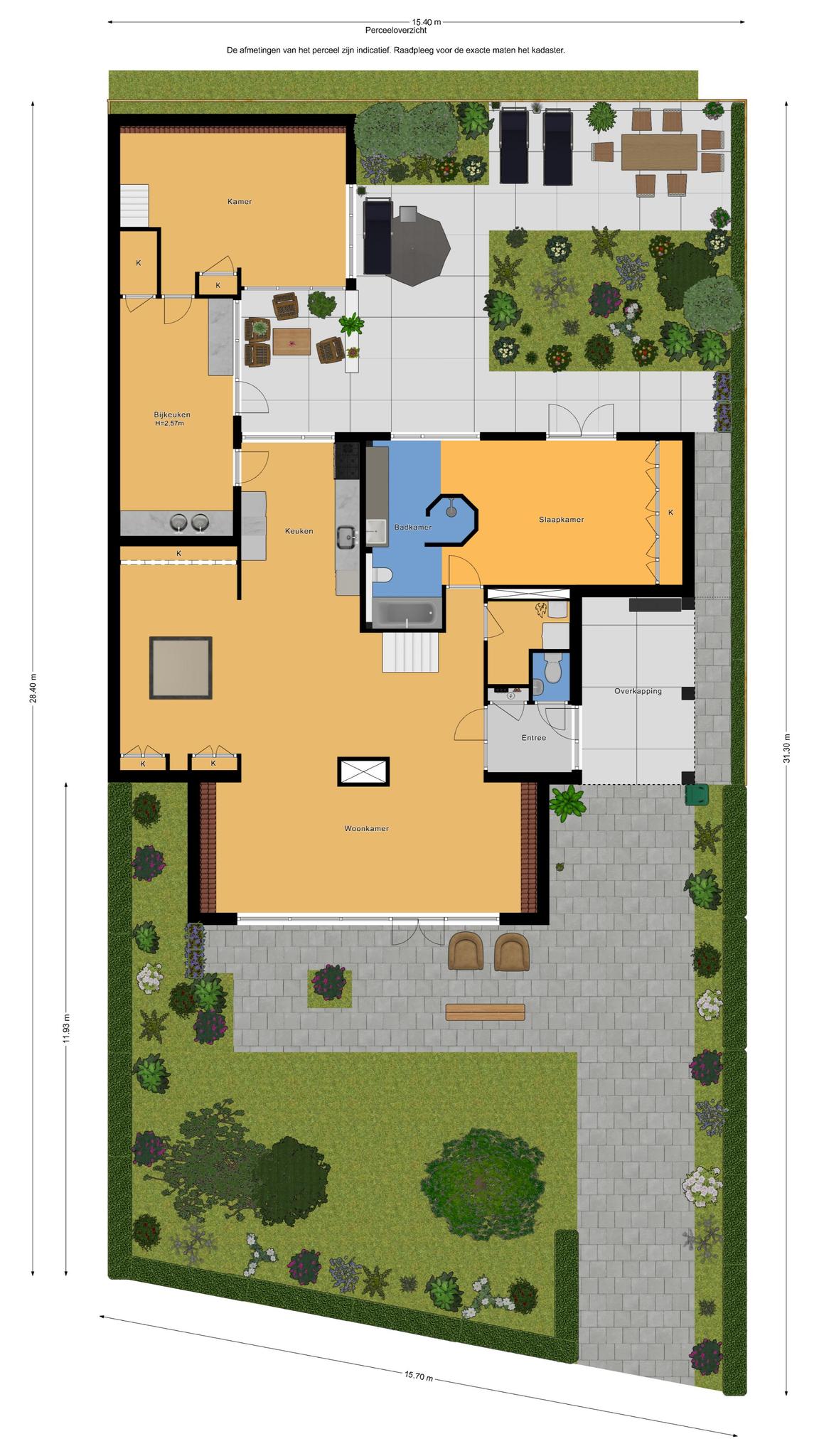 Het perceel bestaat uit 2 kadastrale nummers, zie kadastrale kaart in de brochure.