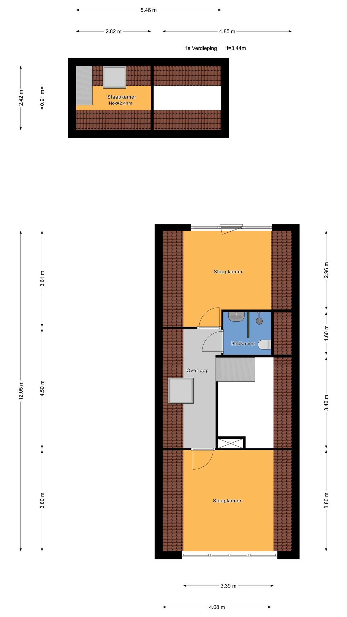 Eerste verdieping: Via de open trap bereik je de ruime vide met zicht op de woonkamer. Op deze etage bevindt zich twee ruime slaapkamers, tevens is er recent een volwaardige tweede badkamer gerealiseerd.