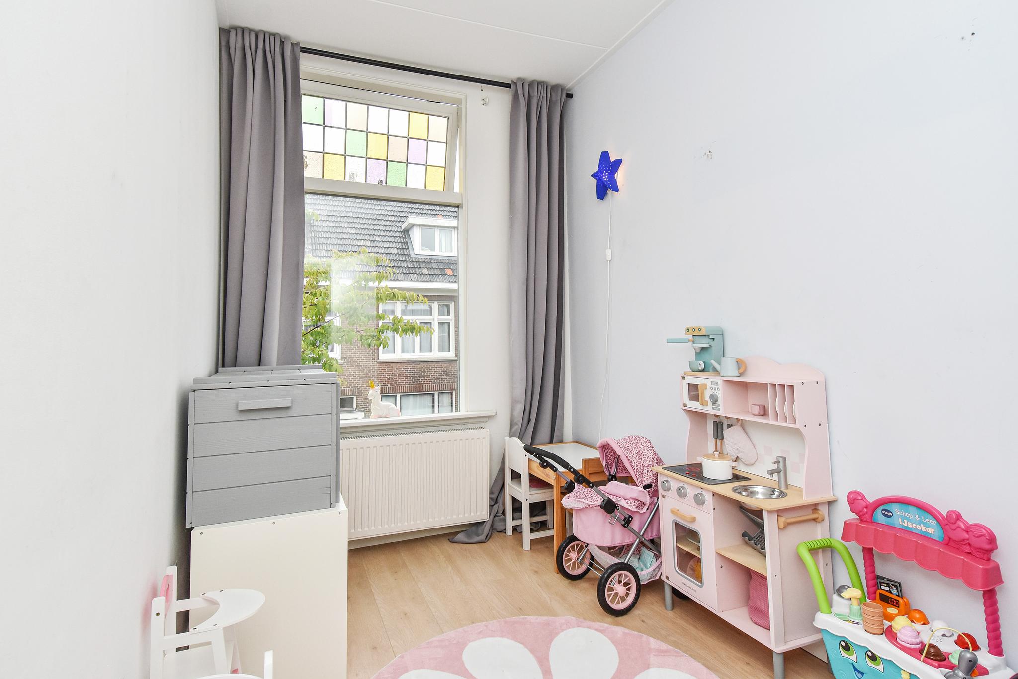Je komt binnen in een sfeervolle woning met een lichte woonkamer met geschuurd plafond en originele details. De keuken is in 2016 geplaatst en voorzien van moderne inbouwapparatuur: combi-oven, vaatwasser, koelkast met vriesvak, inductiekookplaat en afzuigkap. Verder vind je op deze verdieping twee slaapkamers (beide met vaste kasten), een net afgewerkte badkamer (2016) met inloopdouche, wastafelmeubel, zwevend toilet en wasmachineaansluiting. Het balkon is een fijne plek om van de middagzon te genieten.