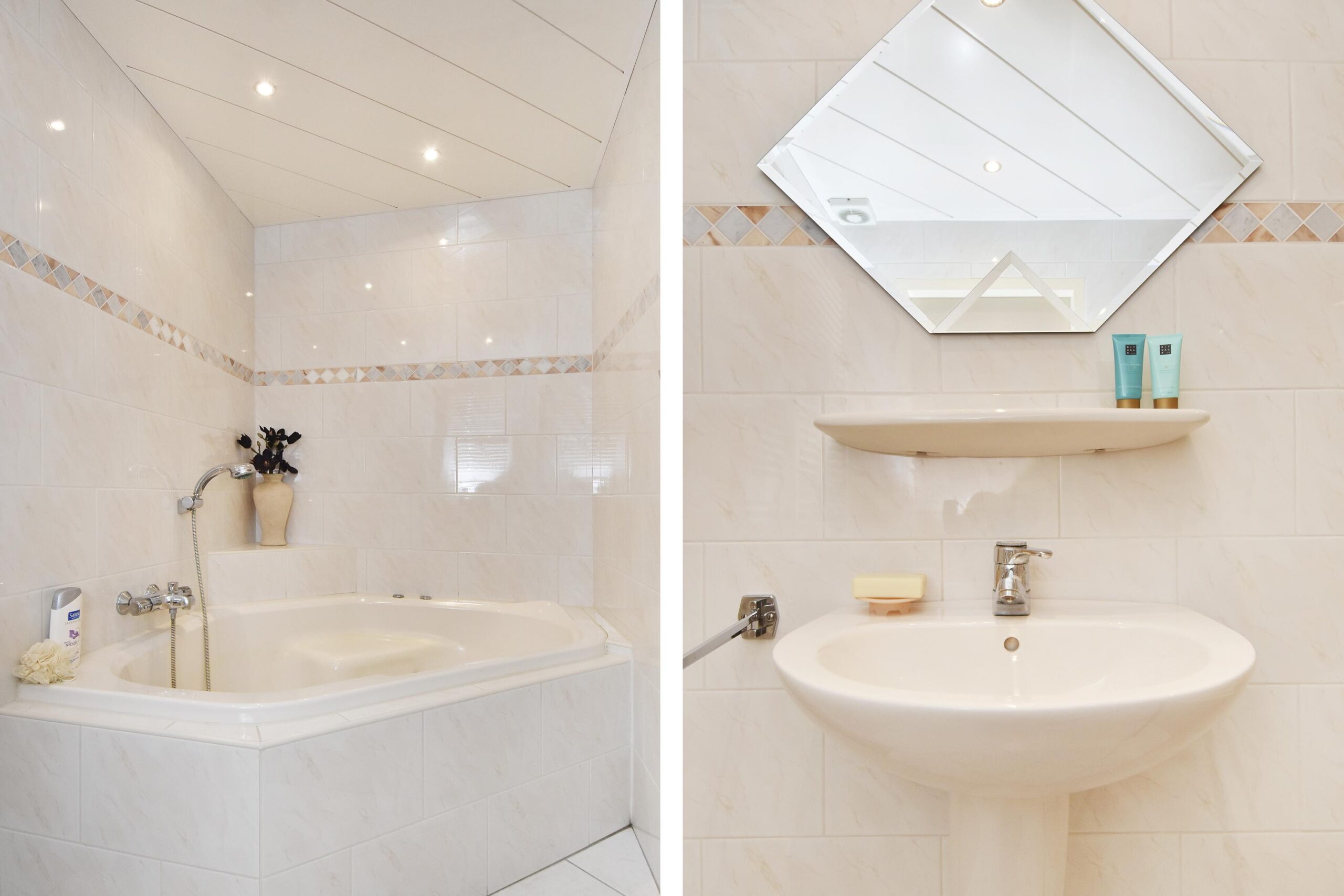 – Badkamer 2 met whirlpoolbad, wastafel, design radiator en mechanische ventilatie