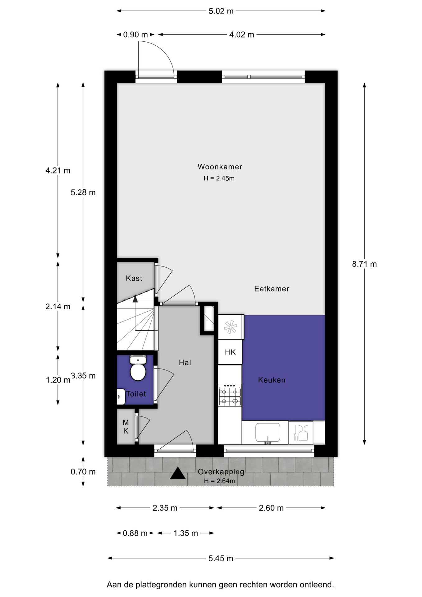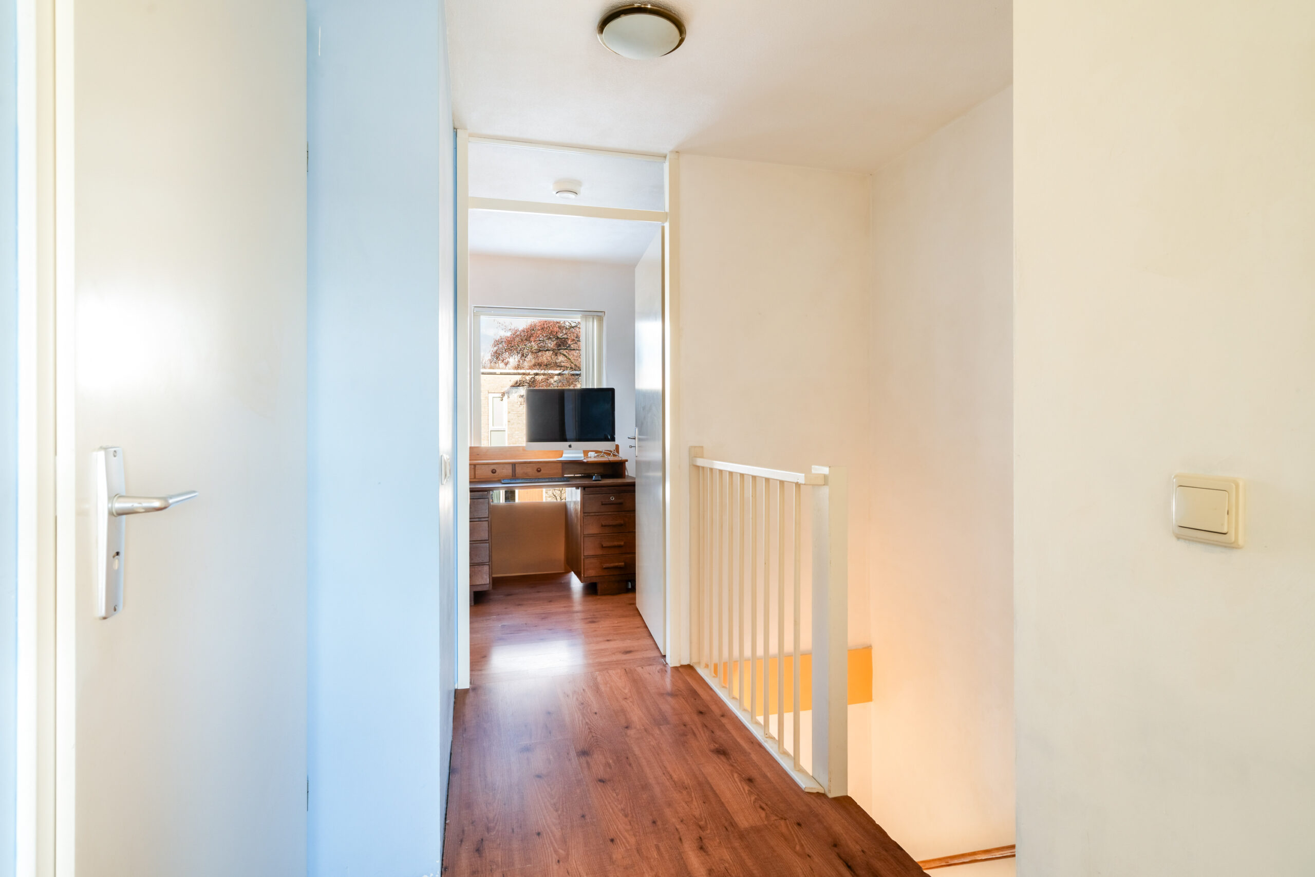De entree geeft toegang tot een lichte hal met toiletruimte, meterkast en trapopgang. De woonkamer is ruim opgezet en voorzien van een fraaie houten vloer die warmte en karakter toevoegt. De trapkast biedt de gewenste opbergruimte.