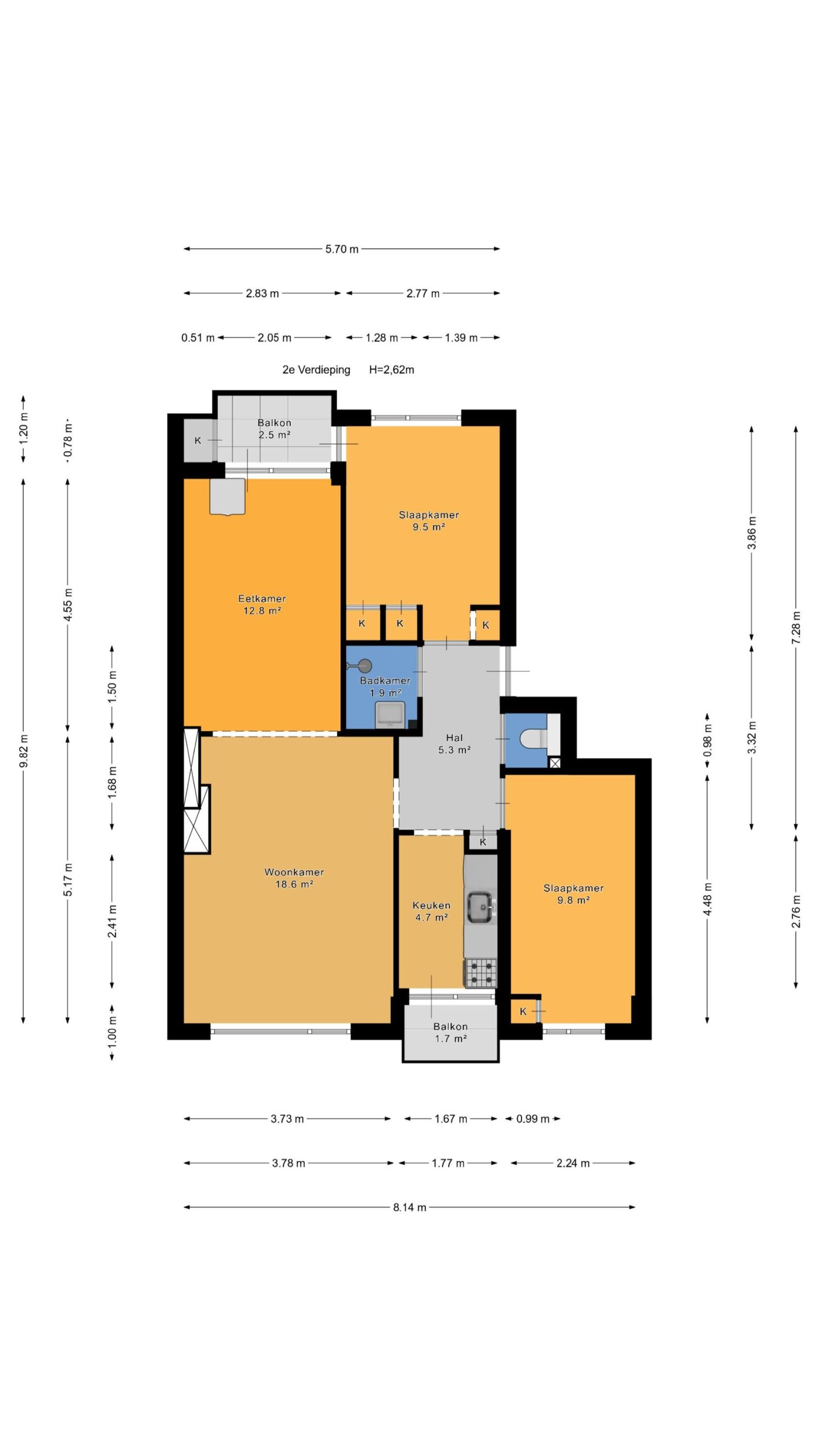 – 2 slaapkamers waarvan 1 toegang tot het balkon