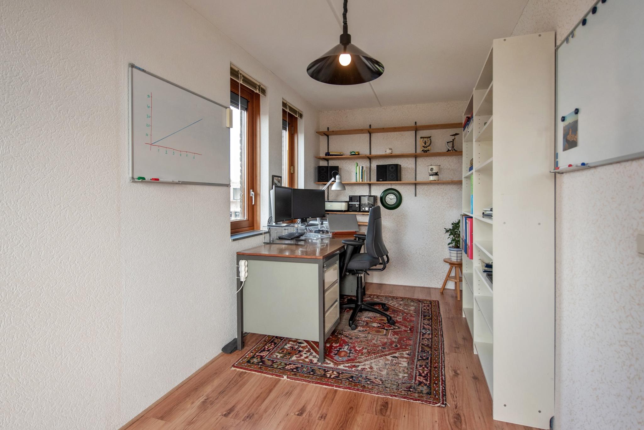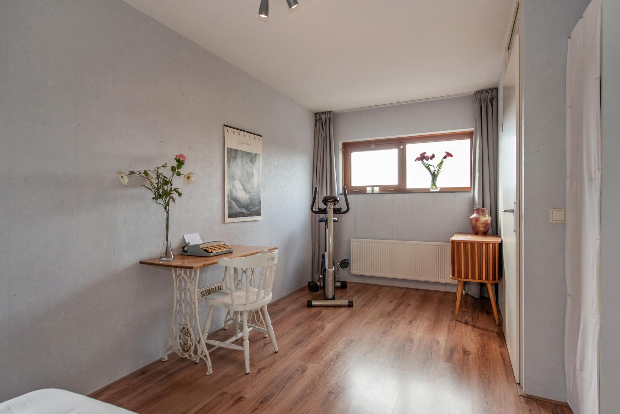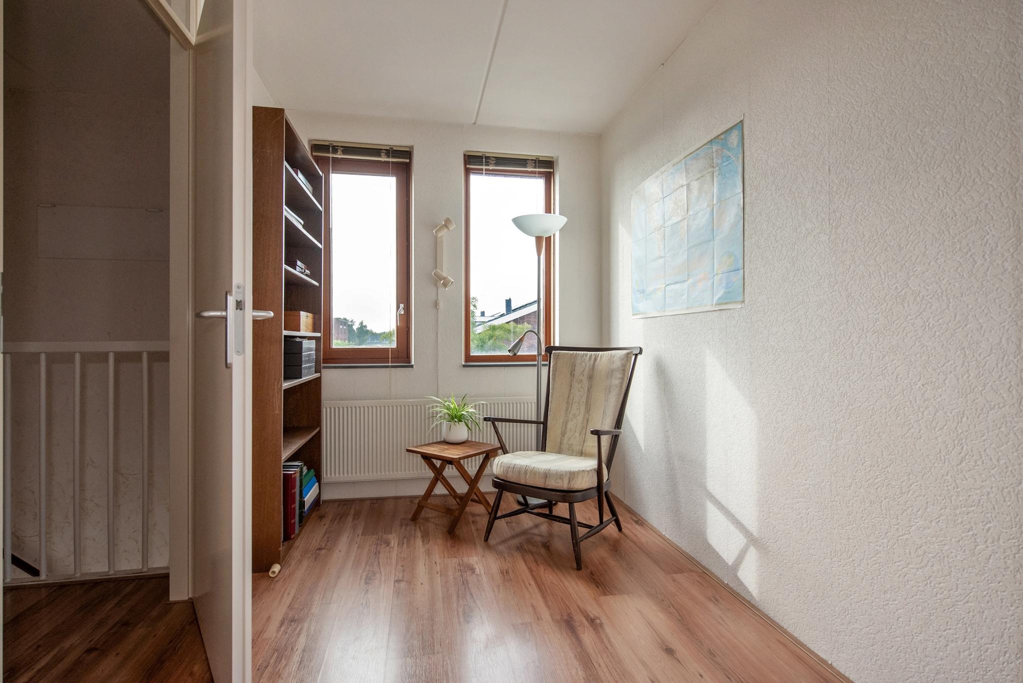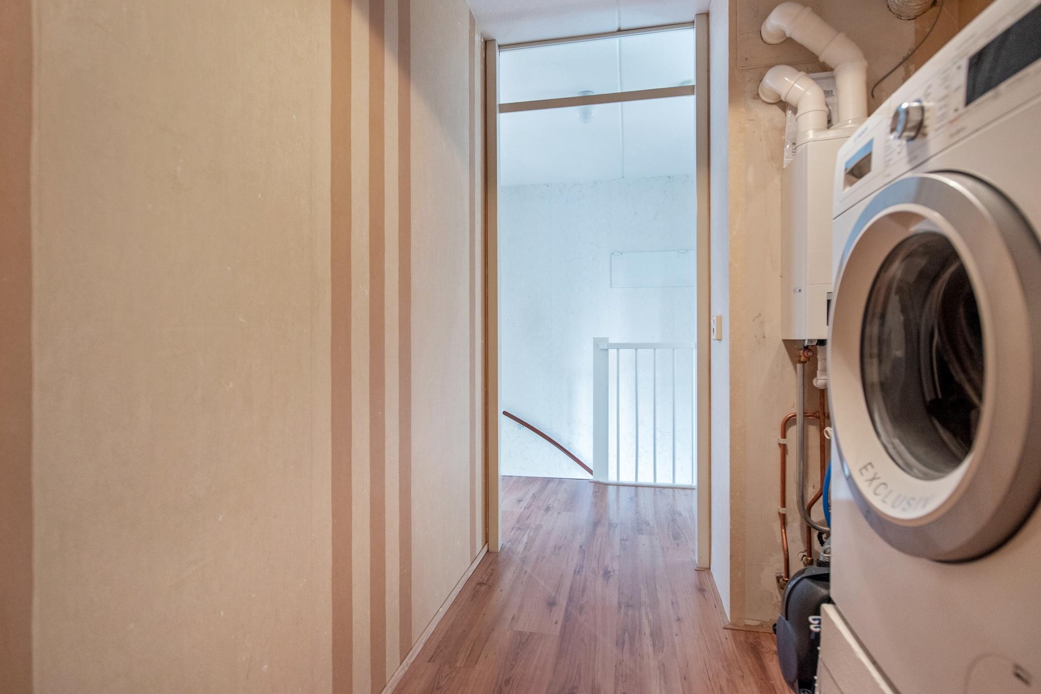 Tweede verdieping: Overloop met aan voor- en achterzijde twee ruime slaapkamers en inpandig een aparte ruimte met de aansluiting voor wasapparatuur en opstelling van de HR CV combiketel uit 2022.