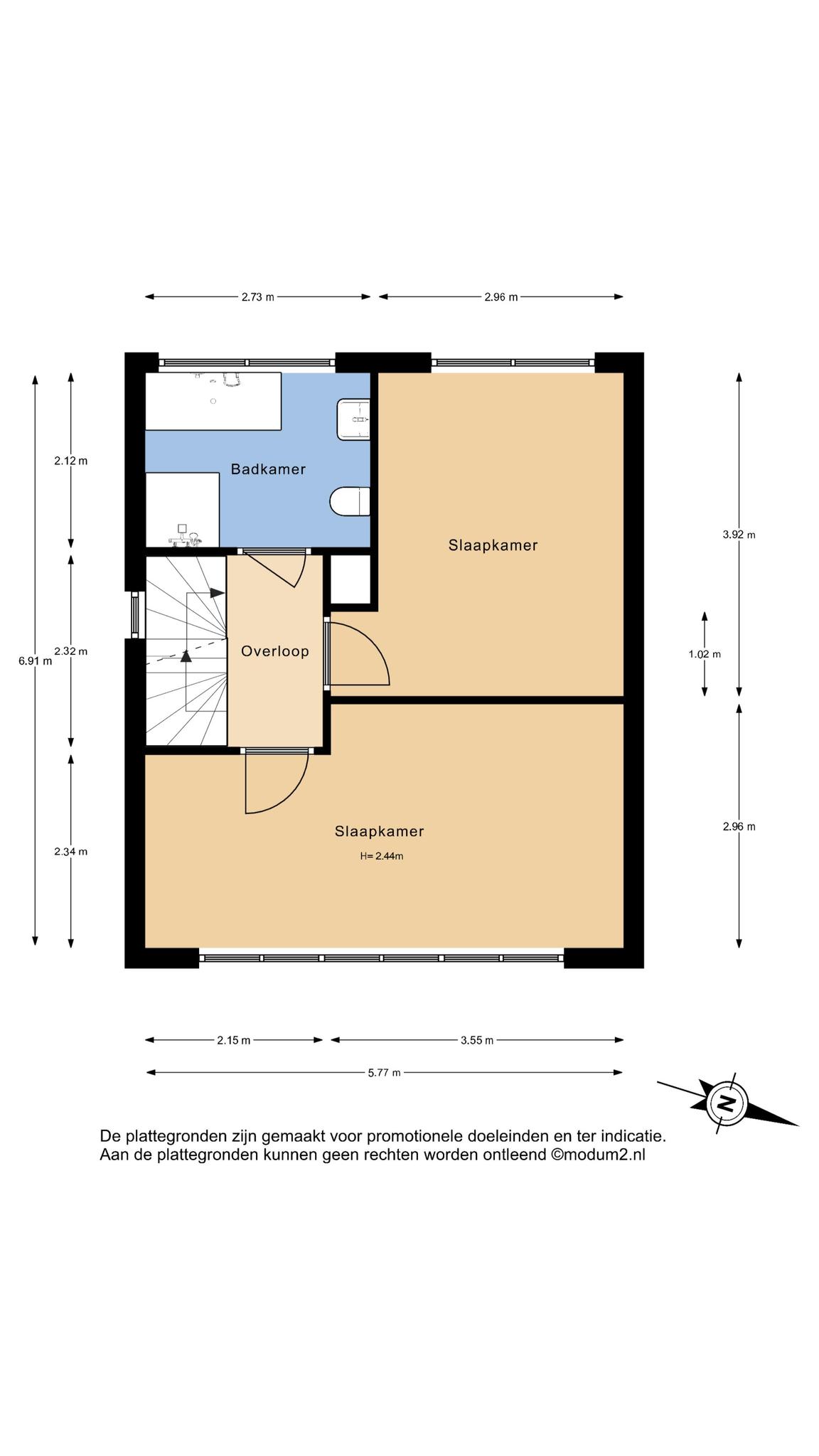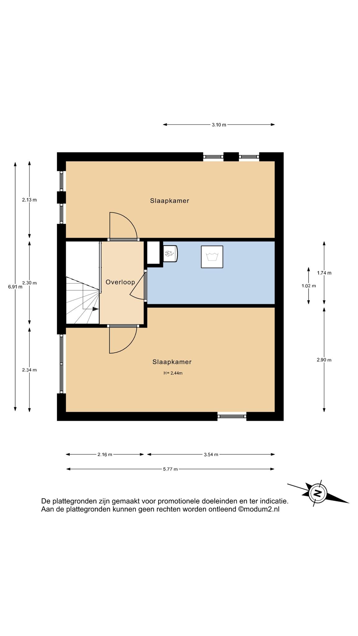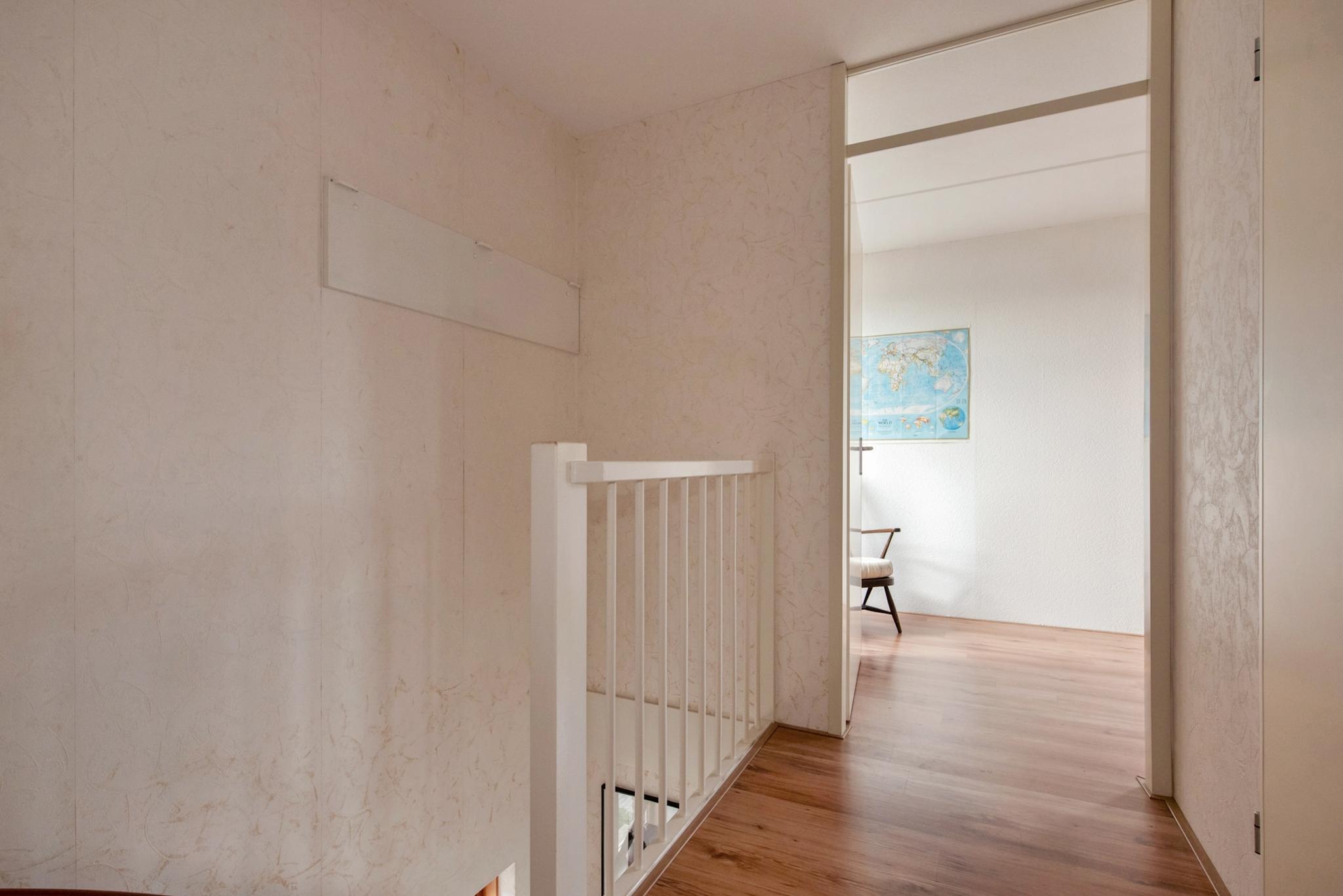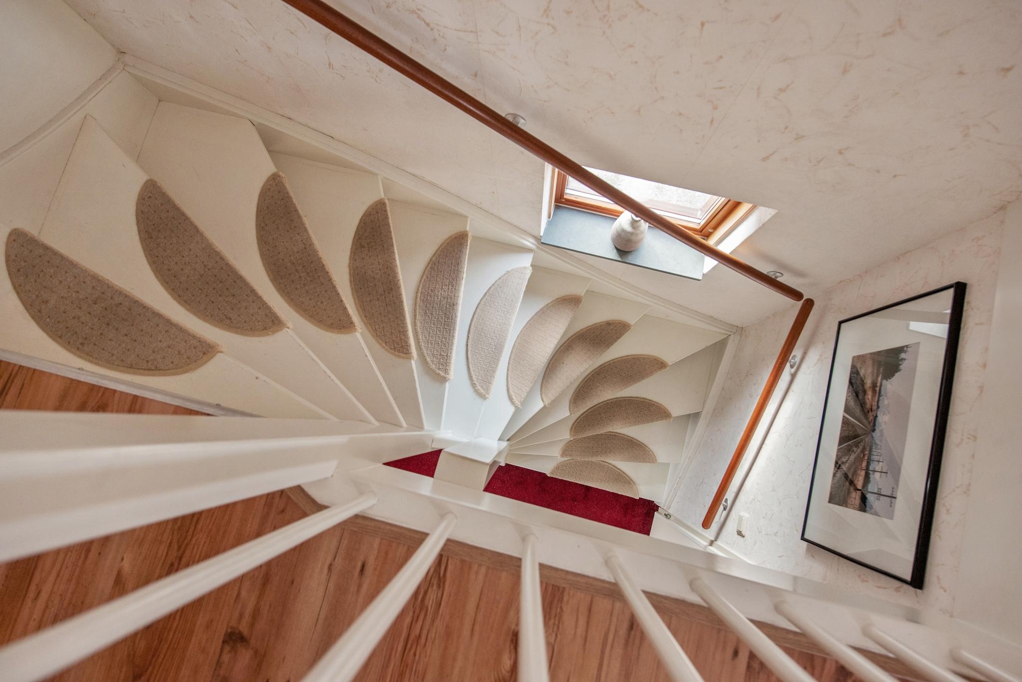Tweede verdieping: Overloop met aan voor- en achterzijde twee ruime slaapkamers en inpandig een aparte ruimte met de aansluiting voor wasapparatuur en opstelling van de HR CV combiketel uit 2022.