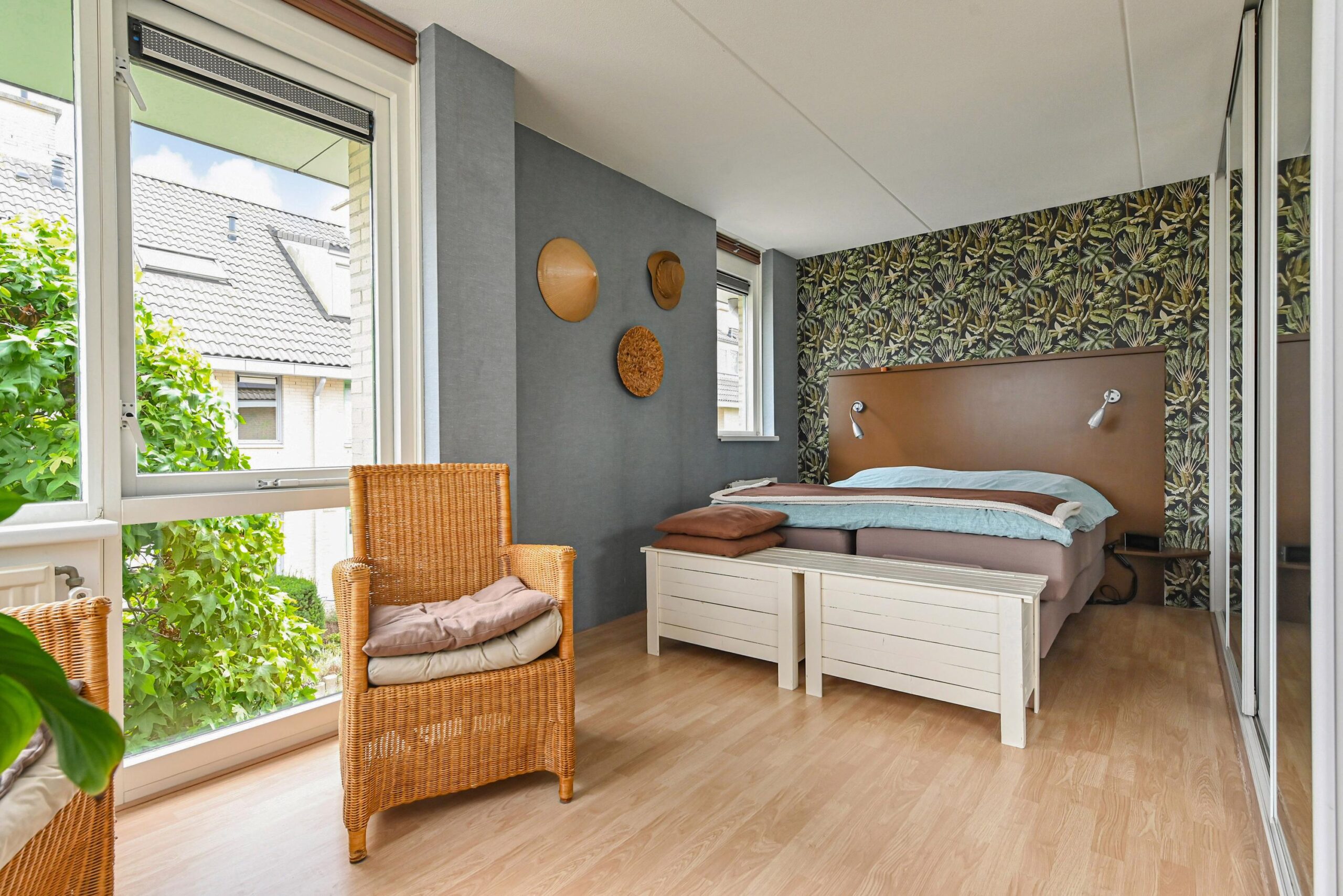1e verdieping: Overloop met modern toilet. Grote hoofdslaapkamer aan de voorzijde over de volle breedte. Twee slaapkamer aan achterzijde zijn samengetrokken tot een kamer-en-suite, op eenvoudige manier is dit overigens terug te brengen naar de oorspronkelijke situatie van 2 afzonderlijke slaapkamers. Moderne, ruime badkamer met royale inloopdouche voorzien van een zitplateau, mooi wastafelmeubel en een design radiator.