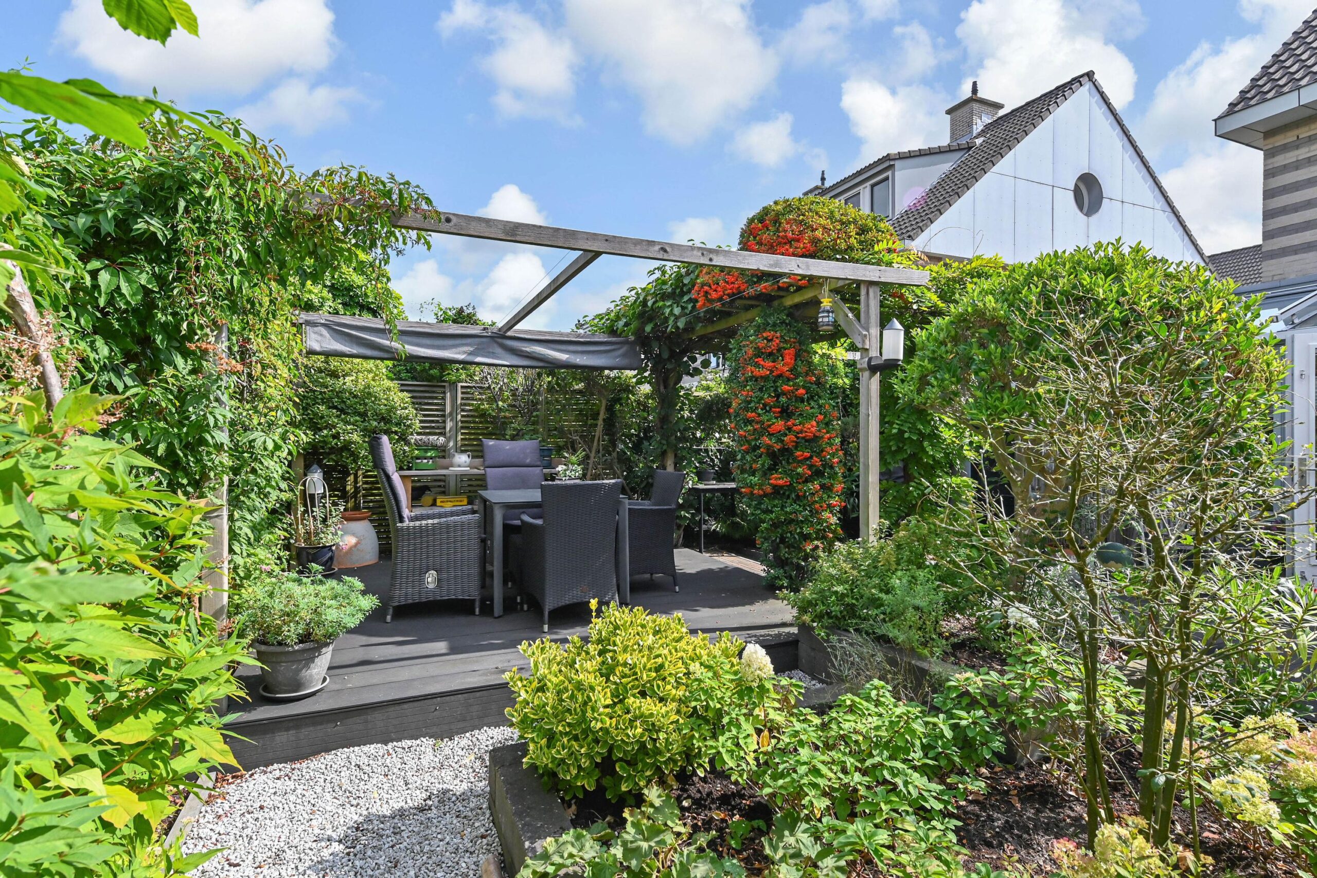 In de aantrekkelijke en ruim opgezette wijk ‘Achter het Raadhuis’ staat op een kindvriendelijke locatie deze ruime en uitstekend onderhouden twee-onder-één-kap gezinswoning. Pluspunten zijn de grote woonkamer met serre aan de achterzijde, luxe keuken, aangebouwde garage, drie à vier slaapkamers, prachtig groene zon- en schaduw tuin (W), voortuin en parkeerplaats op eigen oprit.