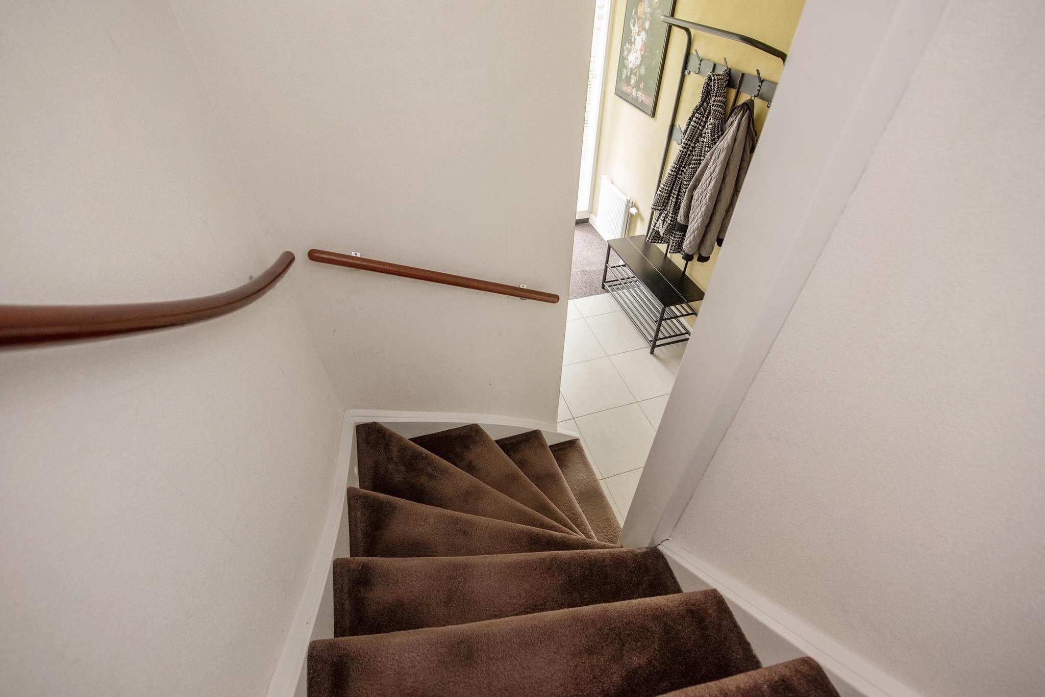 Bij binnenkomst is de entree hal met meterkast, trapopgang en toilet met fonteintje. De gehele…