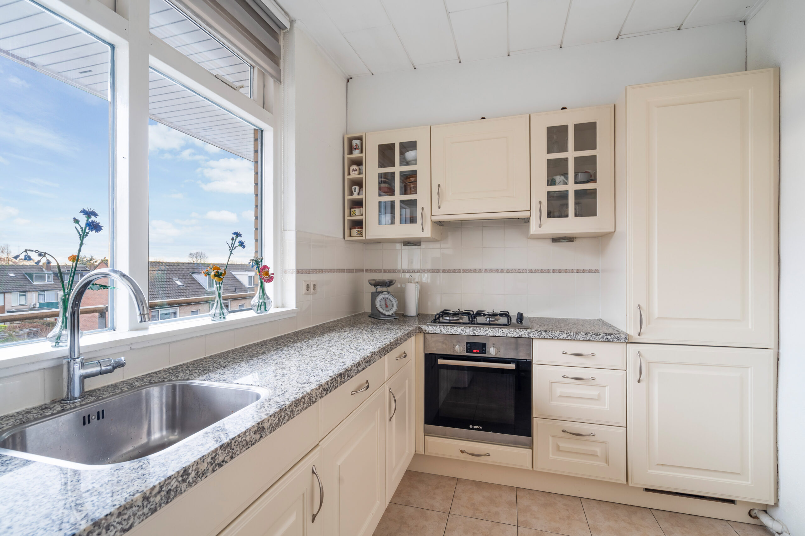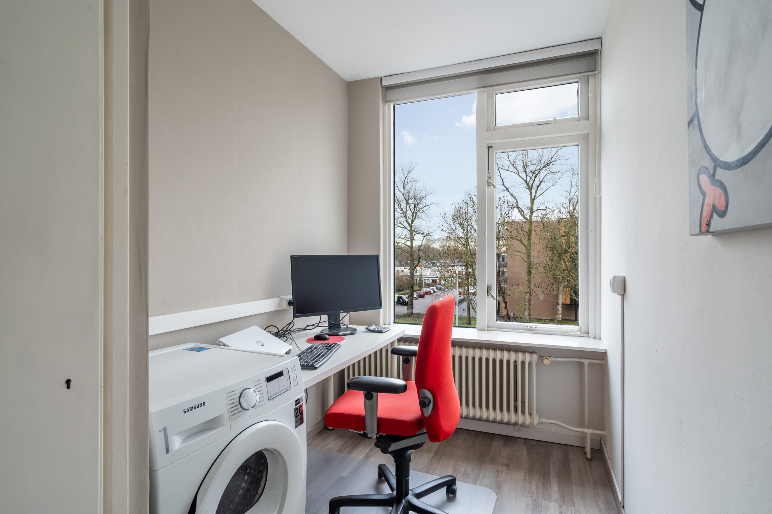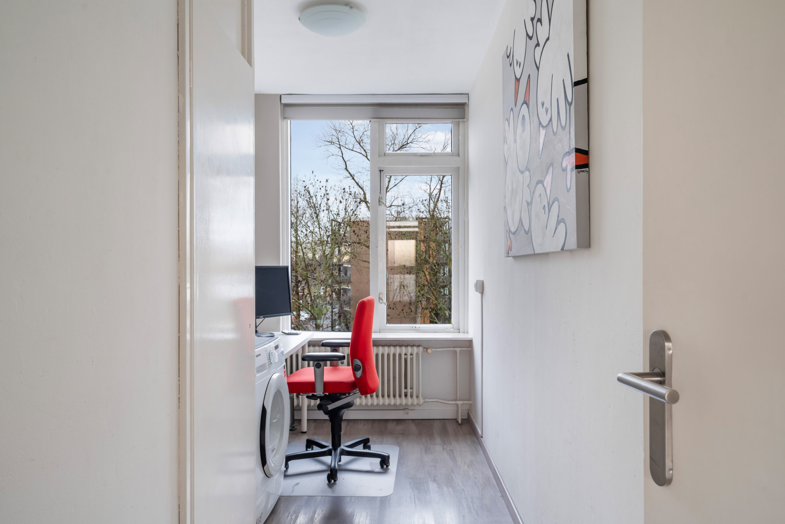 Het appartement beschikt over drie slaapkamers, waarvan twee met een vaste kast. Vanuit de ouderslaapkamer is het balkon bereikbaar; een fijne plek om buiten te zitten.