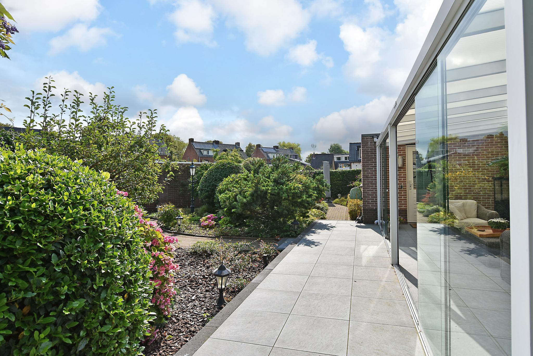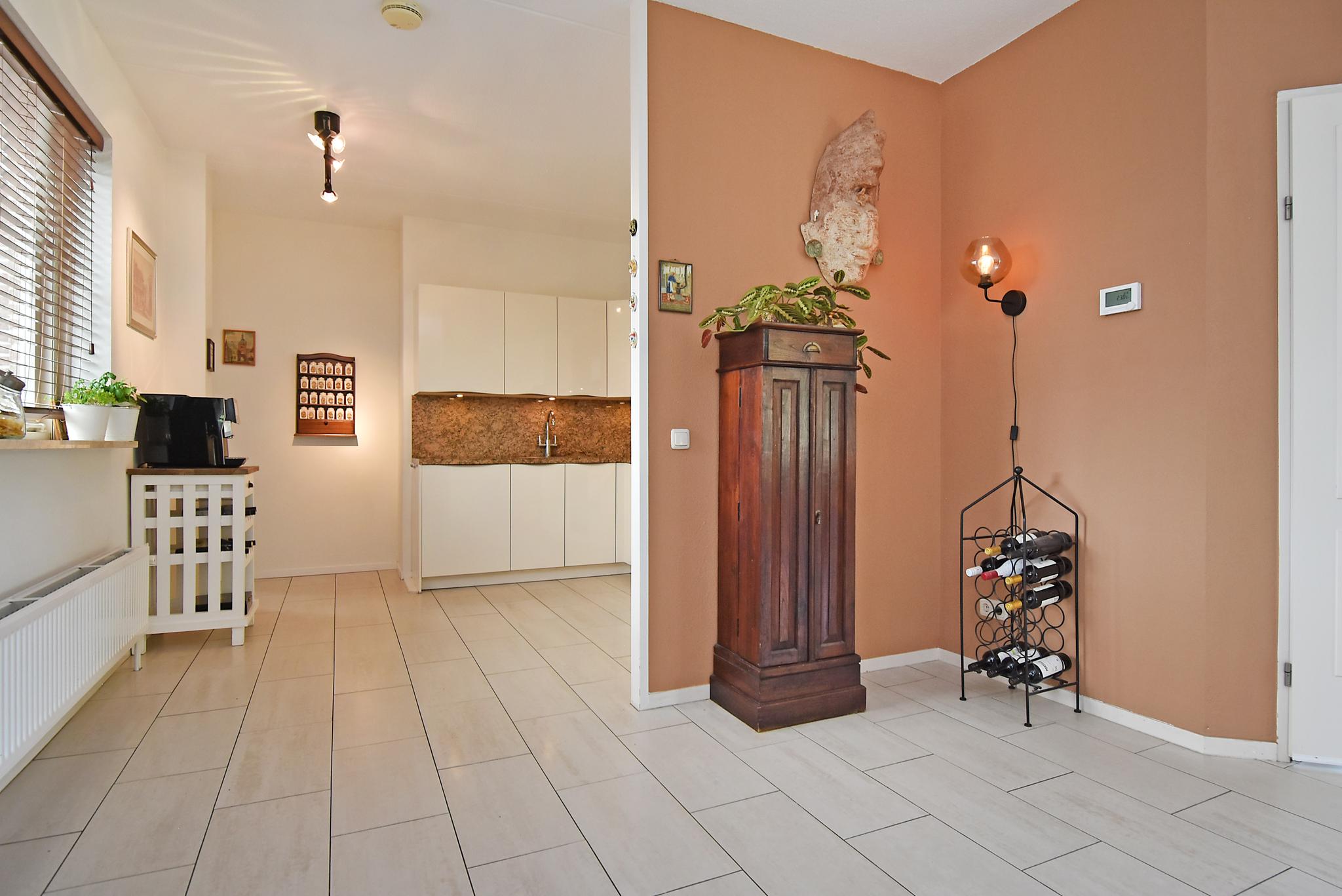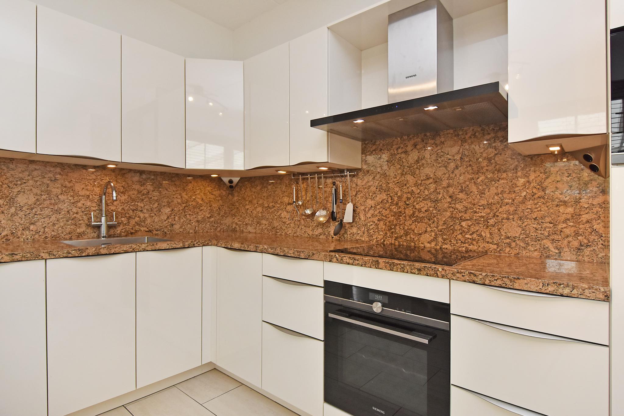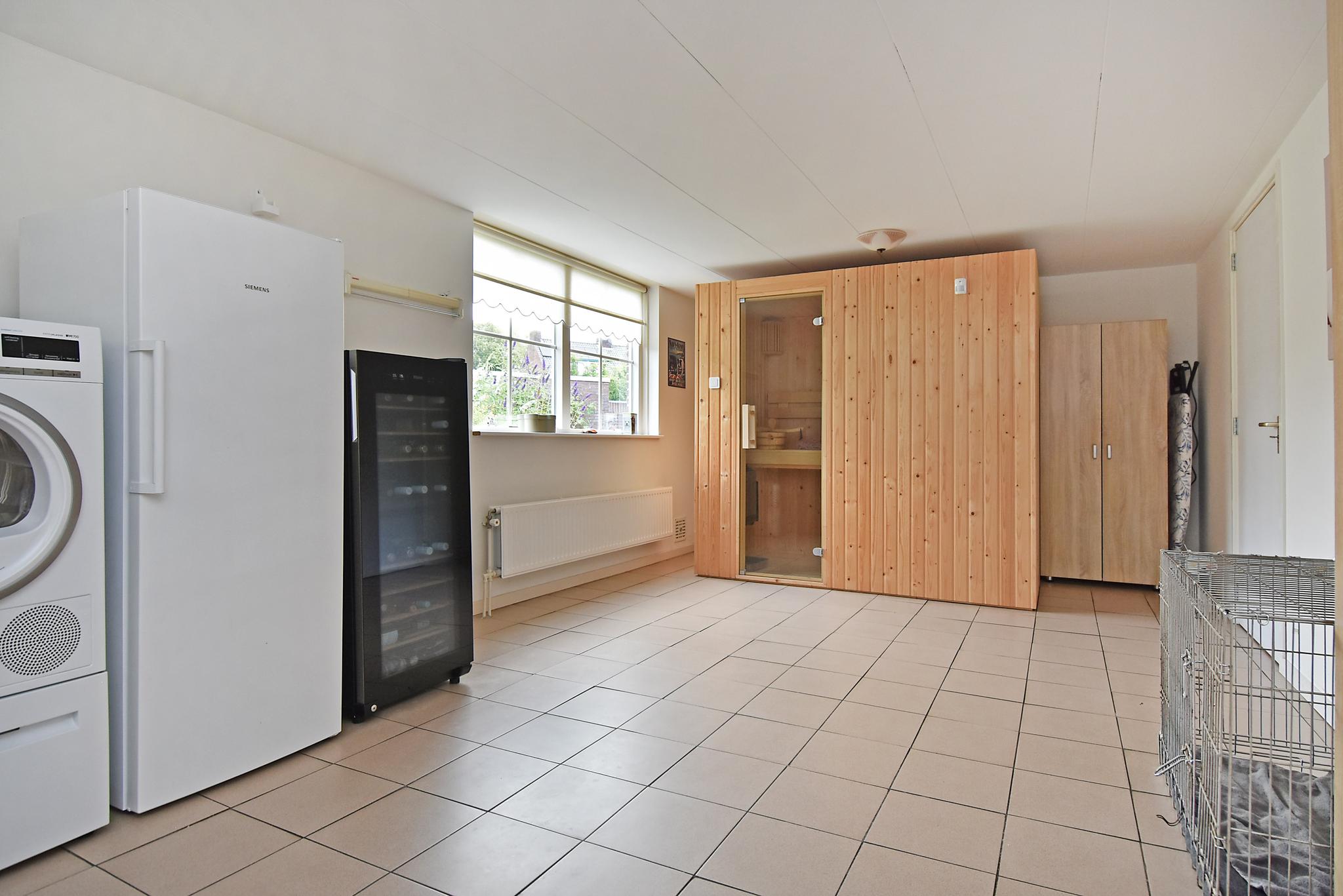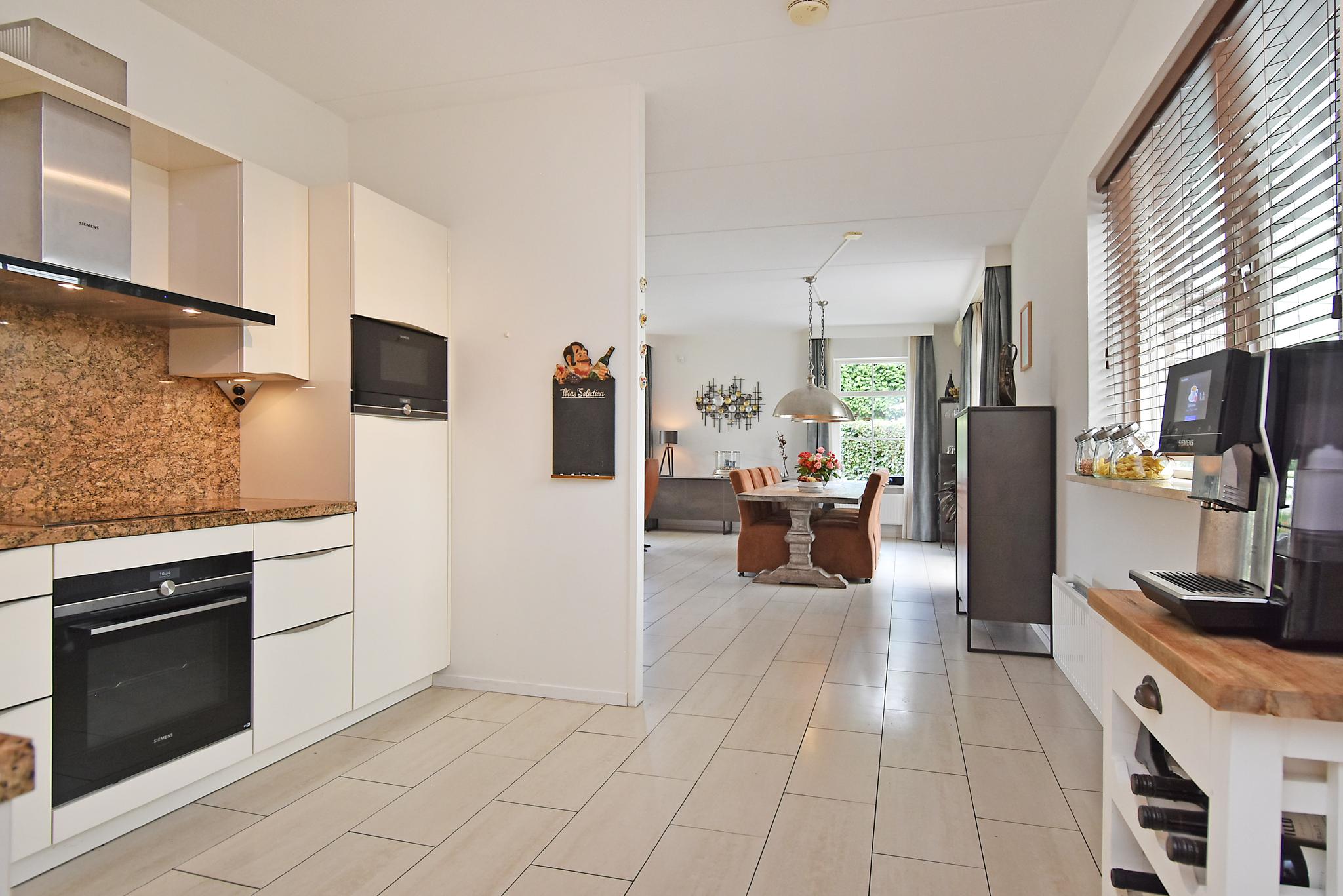 Luxe half open L-vormige keuken voorzien van diverse inbouwapparatuur. Vanuit de keuken kom je in de bijkeuken met aansluiting voor de wasmachine en droger. Voormalige garage thans in gebruik als berging met elektrische deur, volledig geïsoleerd. Deze ruimte kan ook als woonruimte worden ingedeeld. Vanuit de veranda en de bijkeuken is de fraai aangelegde achtertuin toegankelijk, ieder moment van de dag is het mogelijk om een zonnig (of schaduwrijk) plekje te vinden. De kozijnen van de woning zijn voorzien van elektrische markiezen.
