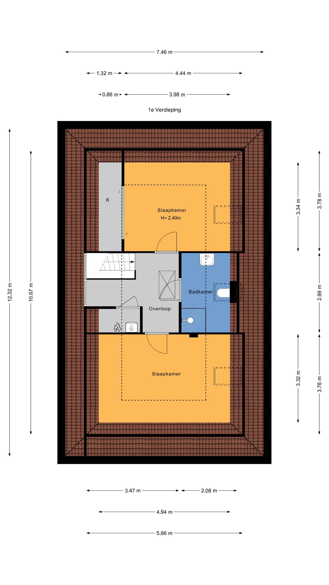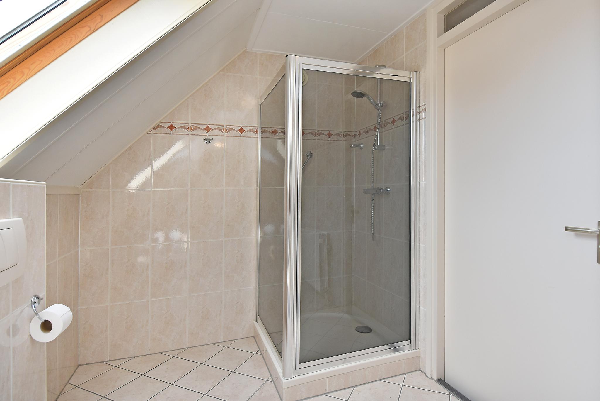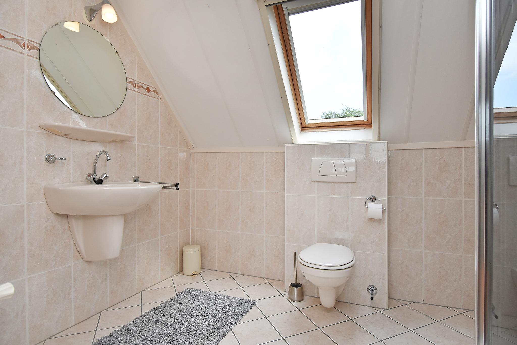 Slaapverdieping: Hardhouten trap naar 1e verdieping. Grote overloop met veel licht inval door dakkapel, bergkast met CV ketel Remeha uit 2014 en mechanische ventilatie. Tweede badkamer met douche, 3e toilet, wastafel en dakraam.