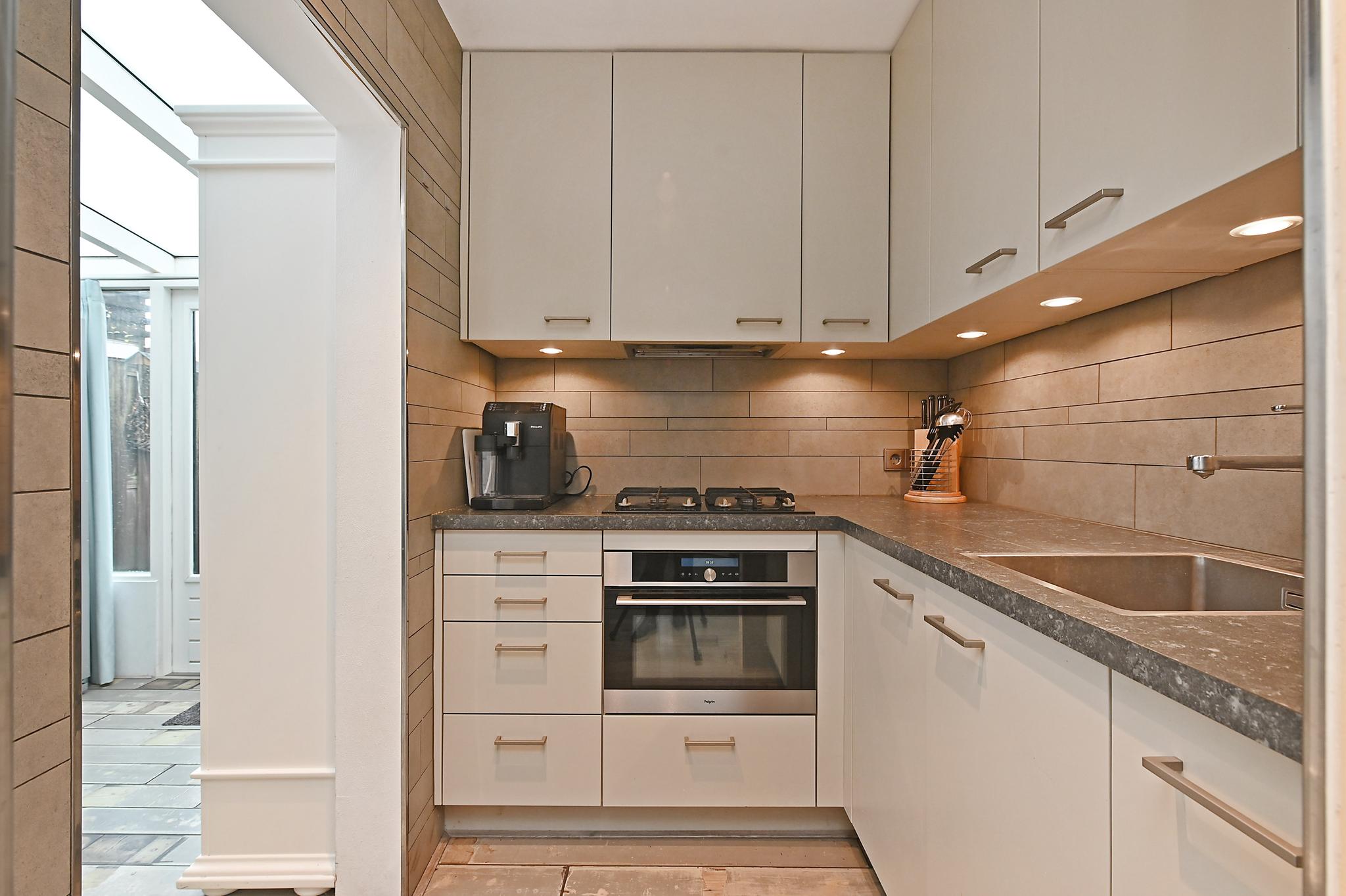 Indeling: hal met toilet, meterkast en trapkast. Gezellige woonkamer met laminaatvloer en toegang tot de half open keuken welke voorzien is van diverse inbouwapparatuur. De serre aan de achterzijde is op verschillende manieren te gebruiken. Vanuit de serre heeft u toegang tot de achtertuin.