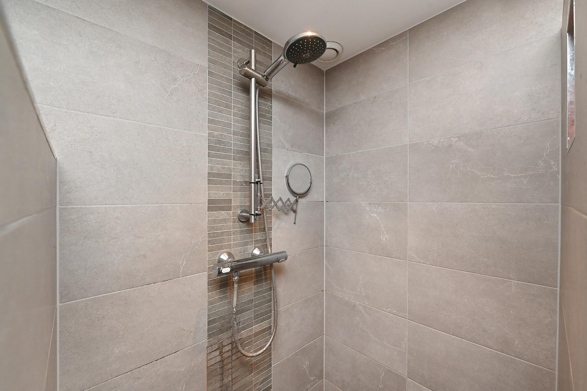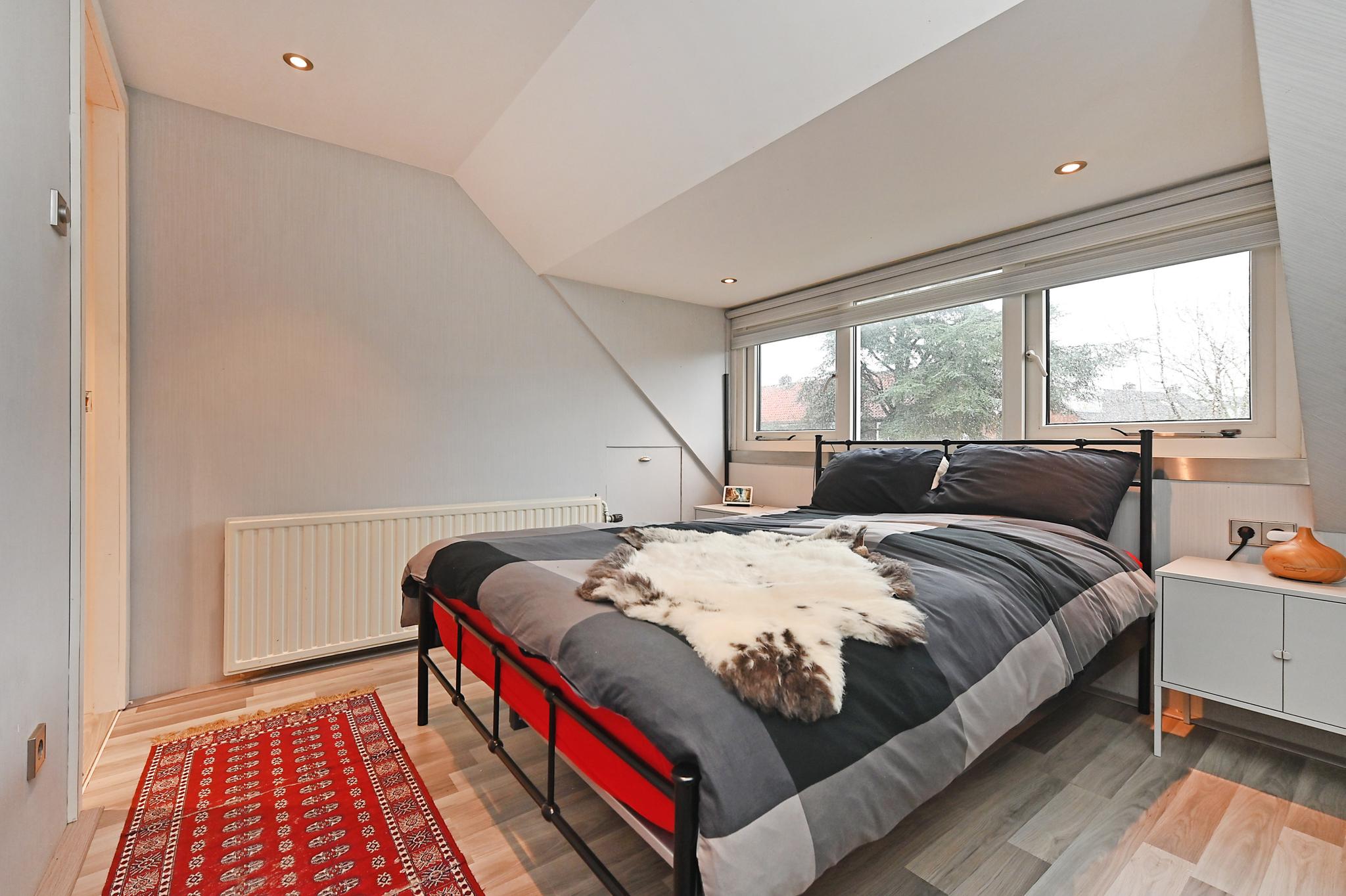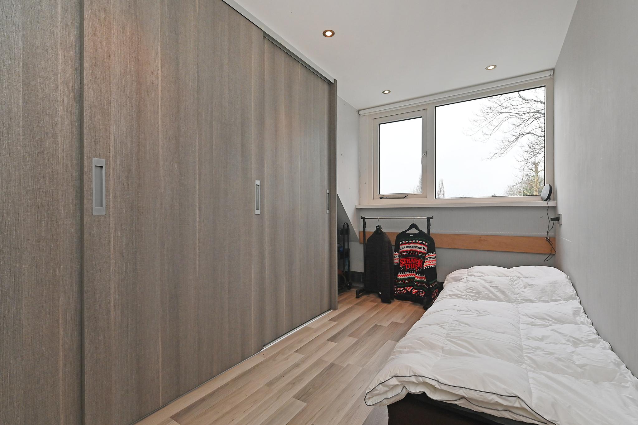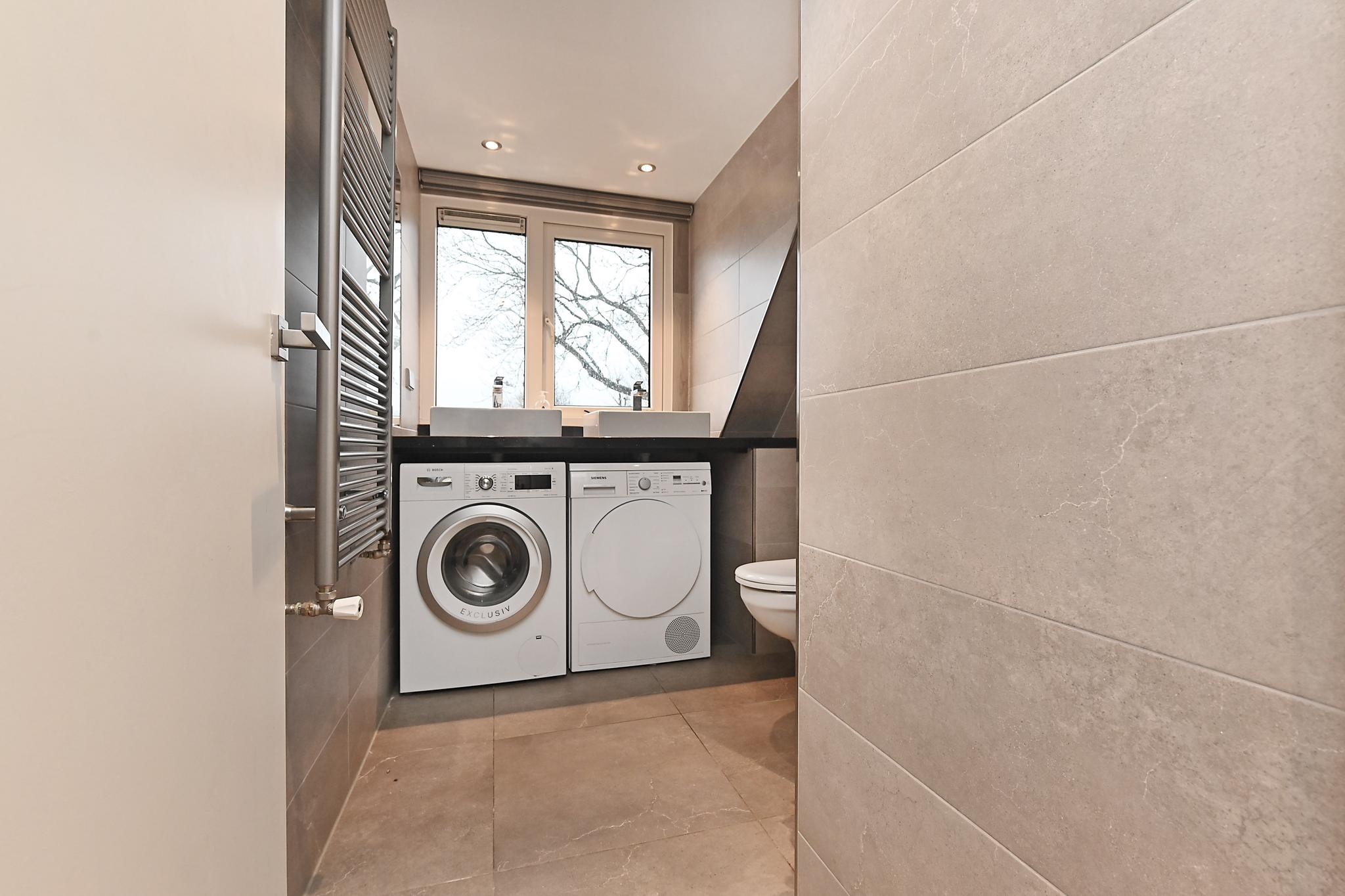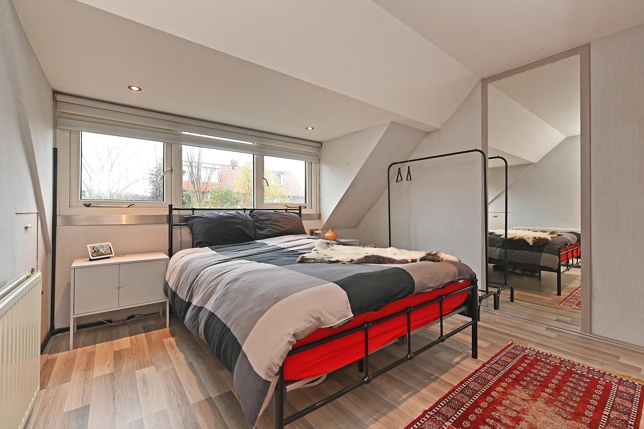 1e etage: voor en achterzijde dakkapel, overloop, 2 slaapkamers, keurig ingerichte badkamer met designradiator, wastafelmeubel, douchecabine, 2e (zwevend) toilet en aansluiting voor machine en droger.