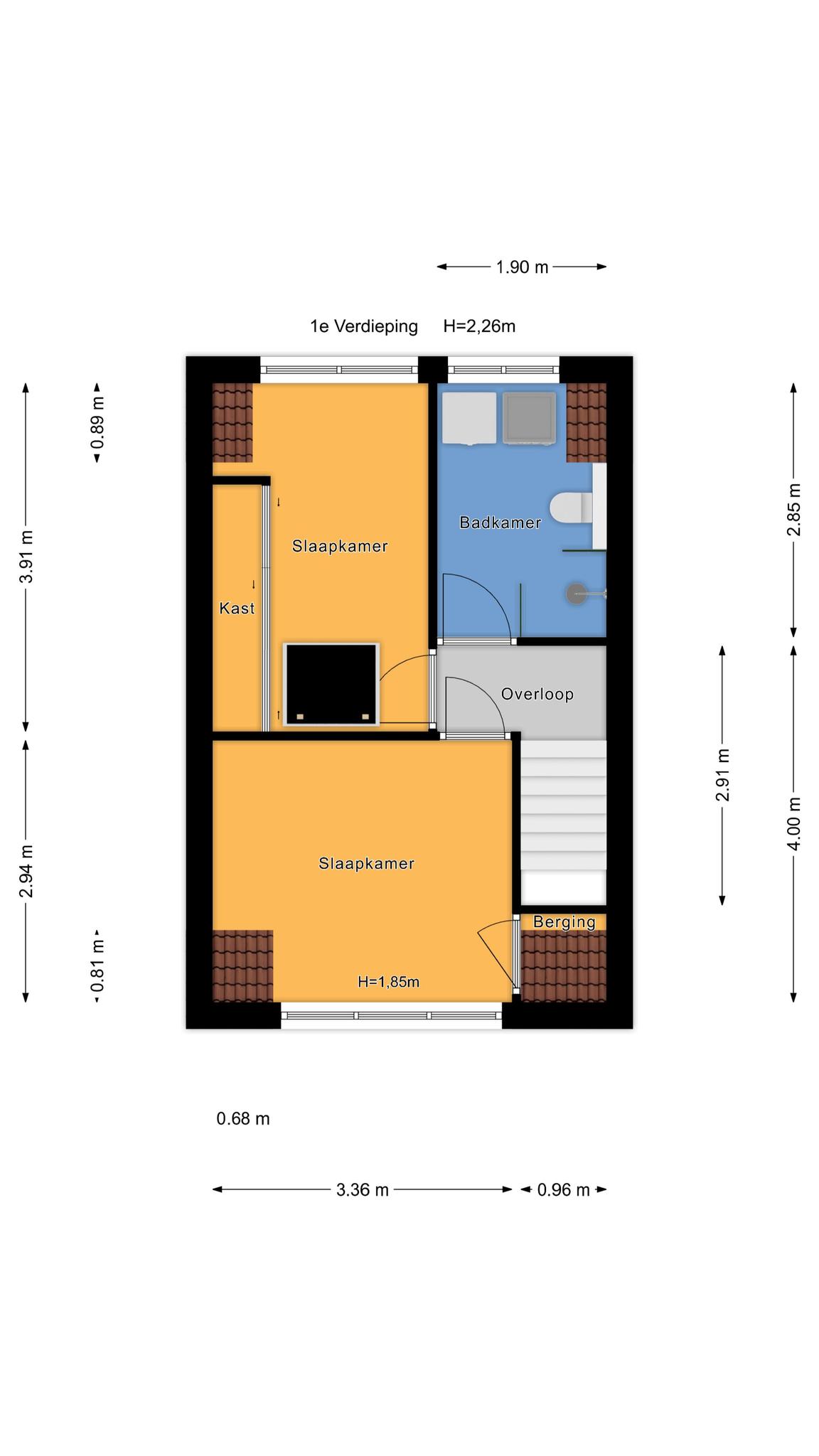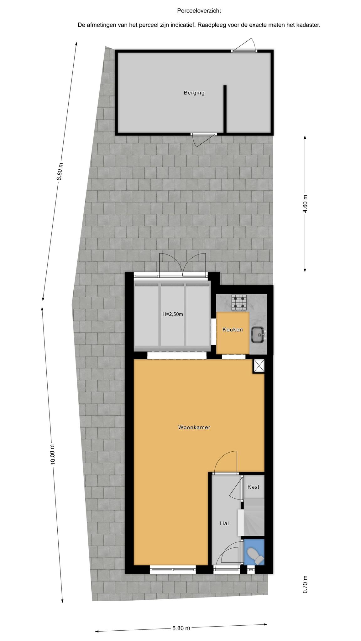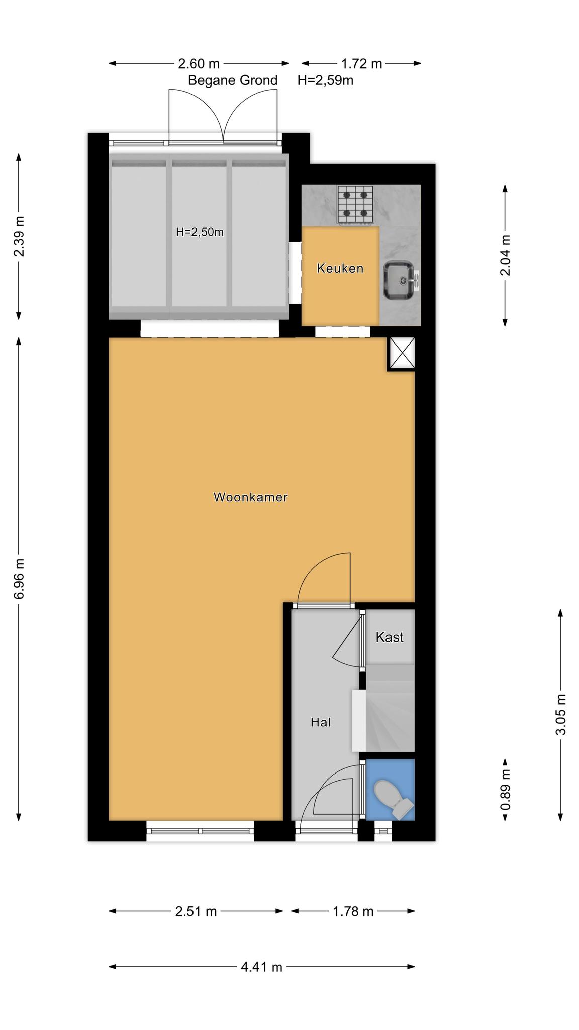 Indeling: hal met toilet, meterkast en…