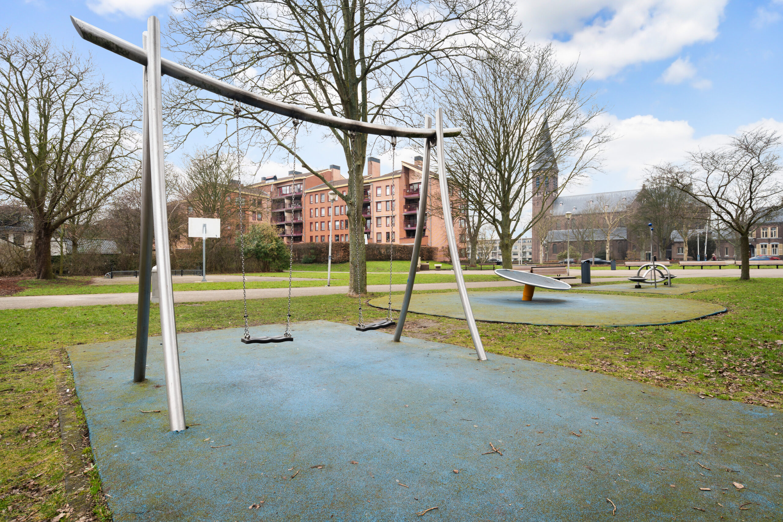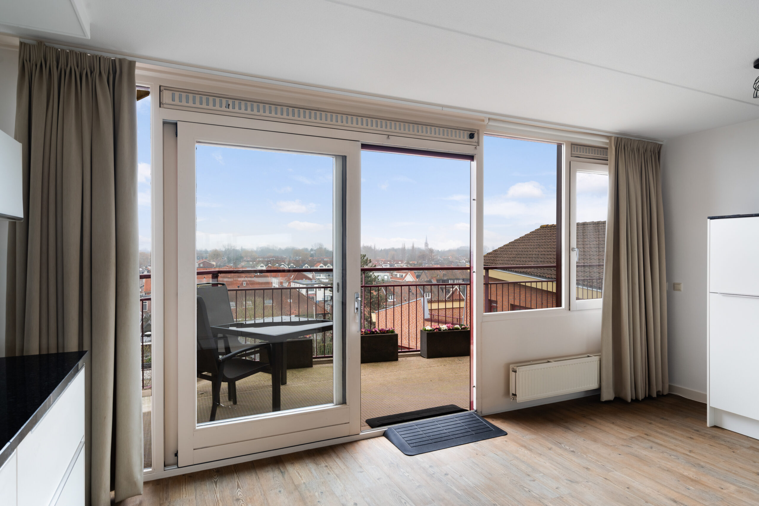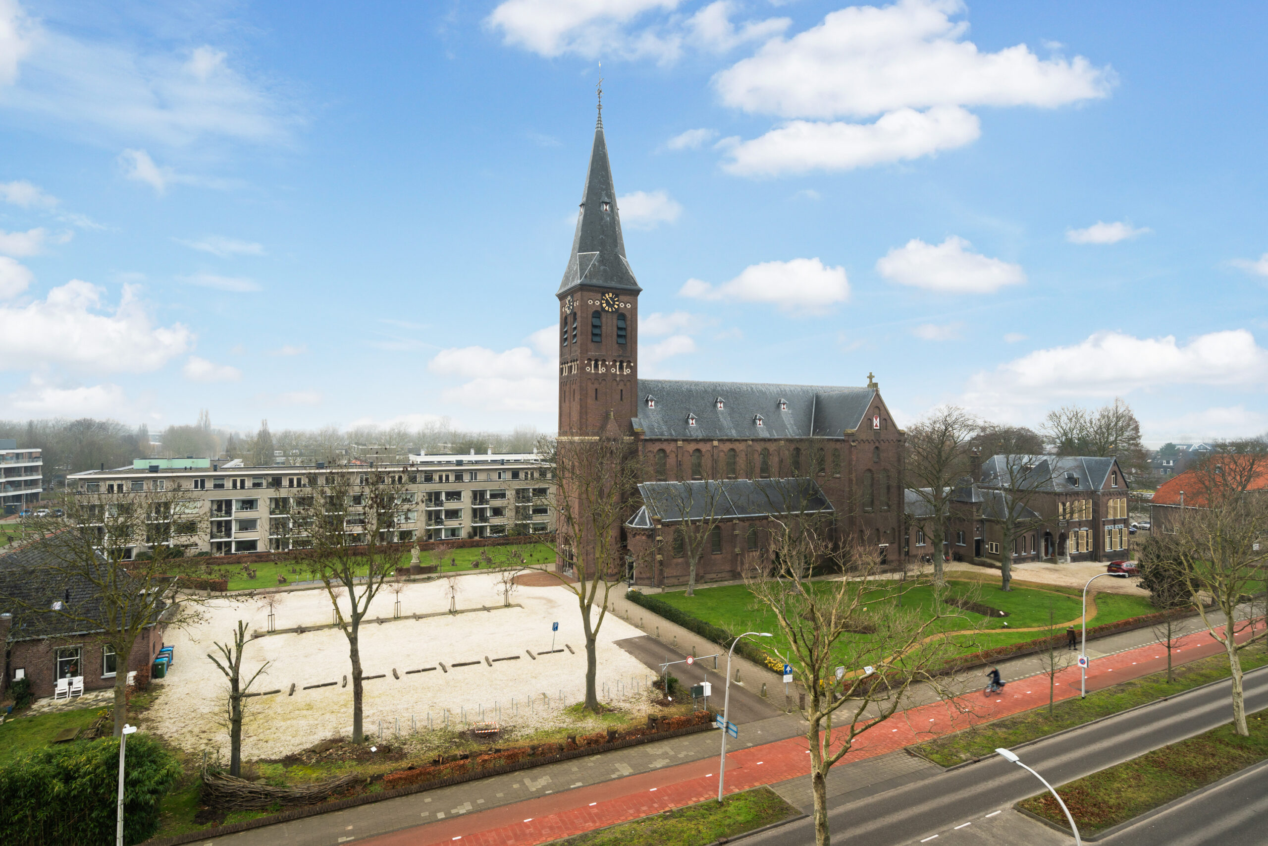 Zeer ruime en lichte woonkamer met uitzicht op de kerk en de Oostlaan.