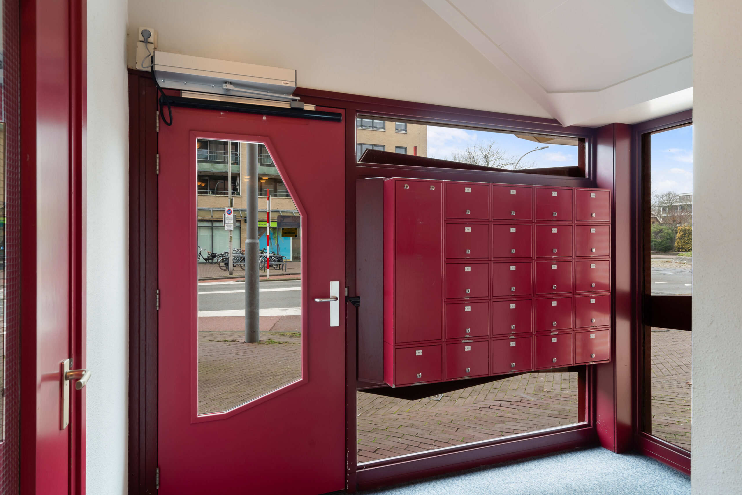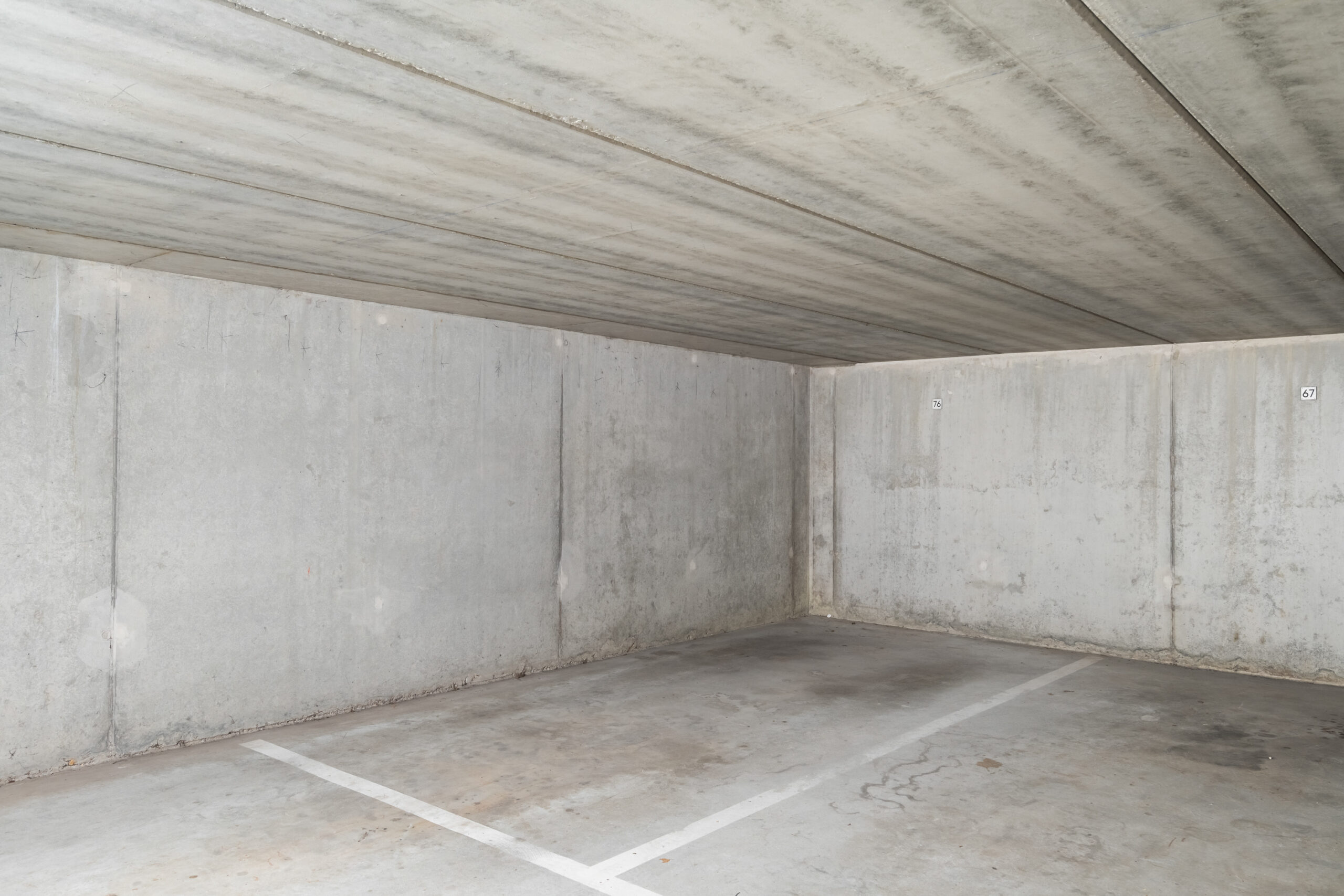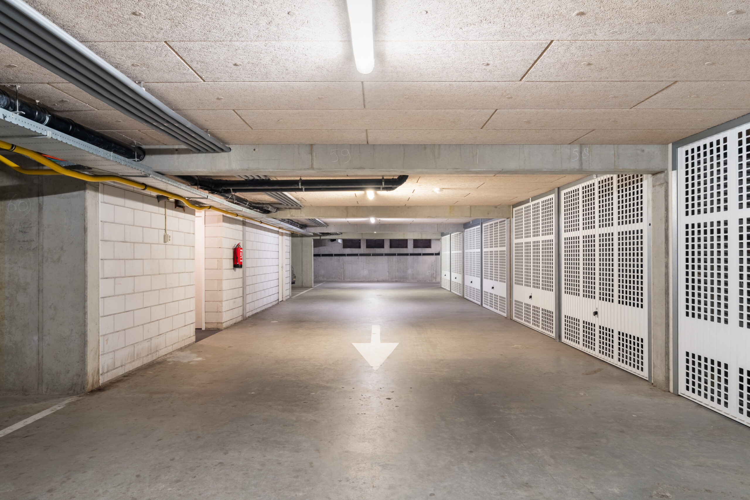 Centrale entree met bellentableau, lift en trappenhuis. Toegang tot parkeerplaatsen en garagebox in de kelder.