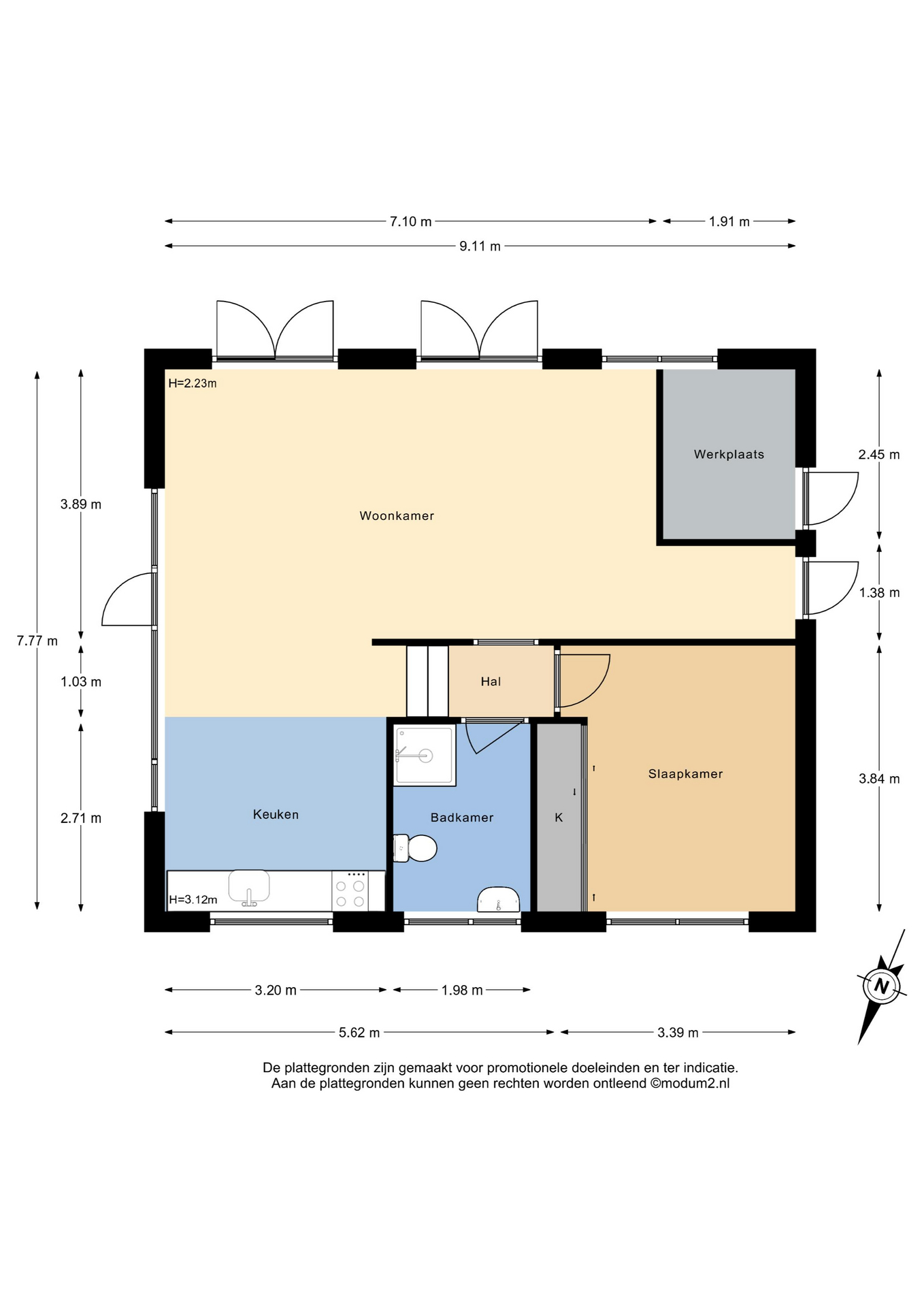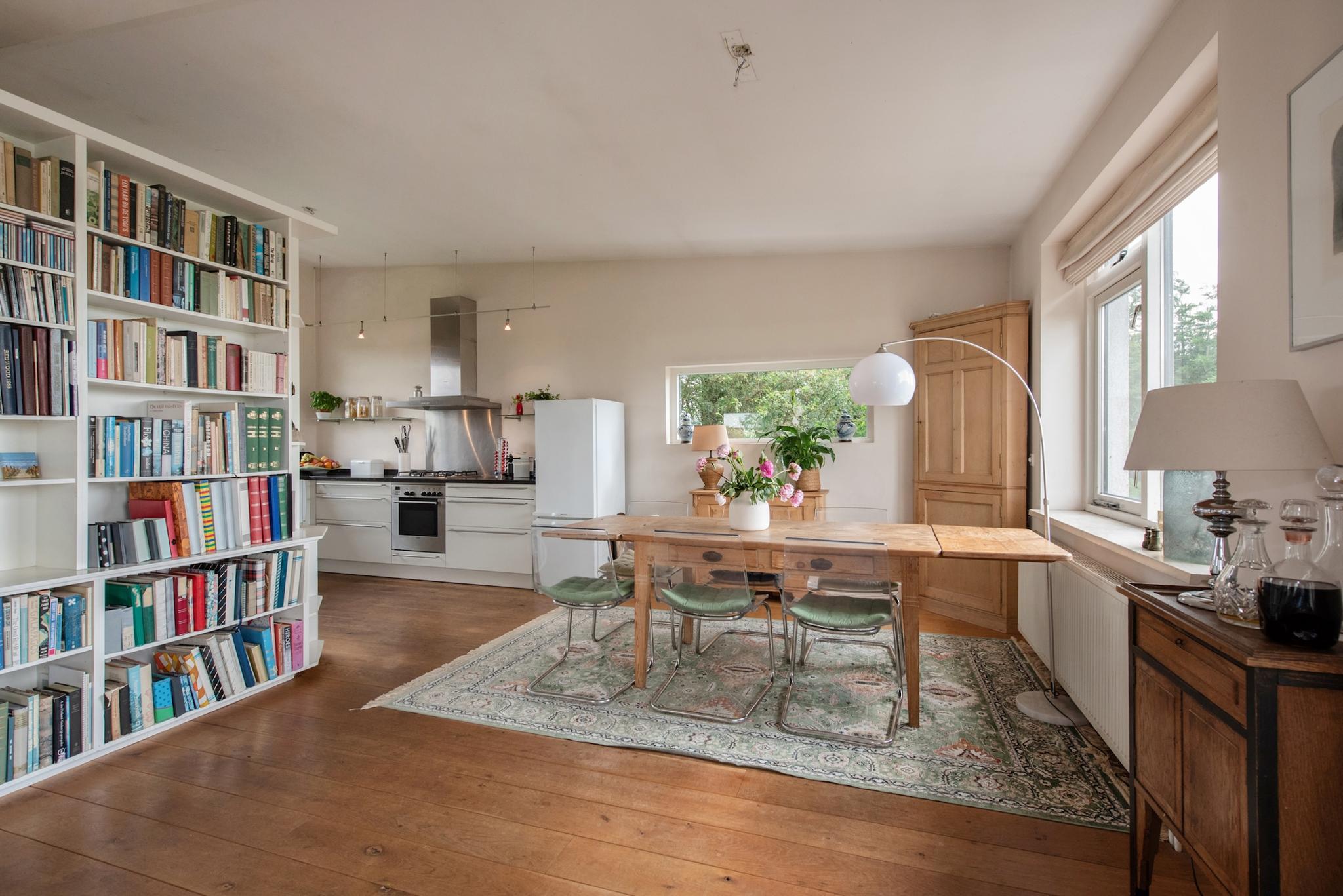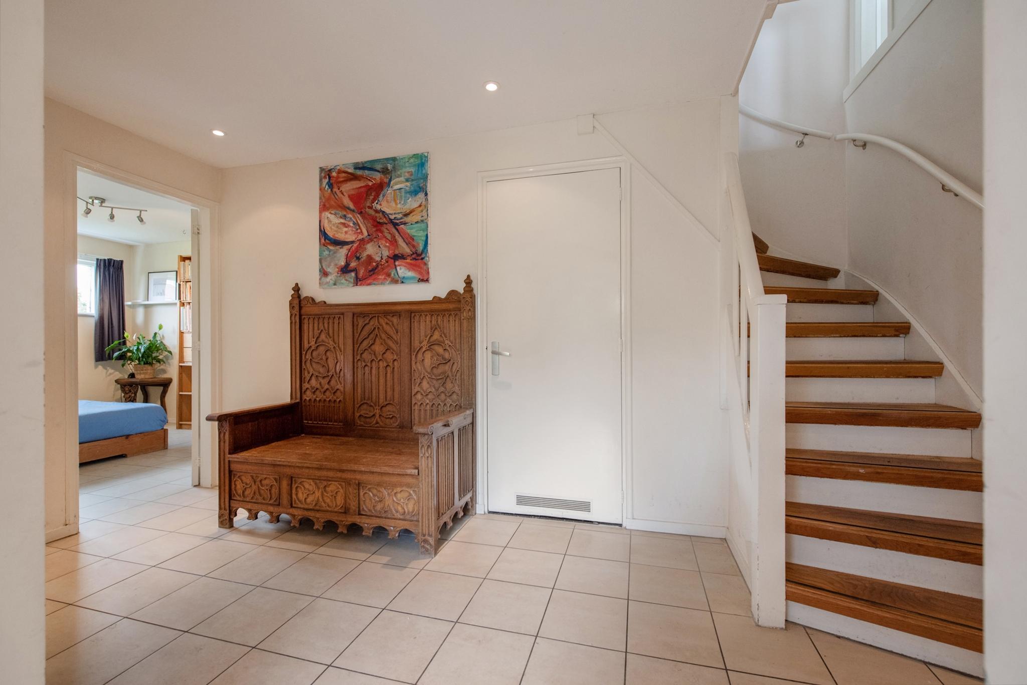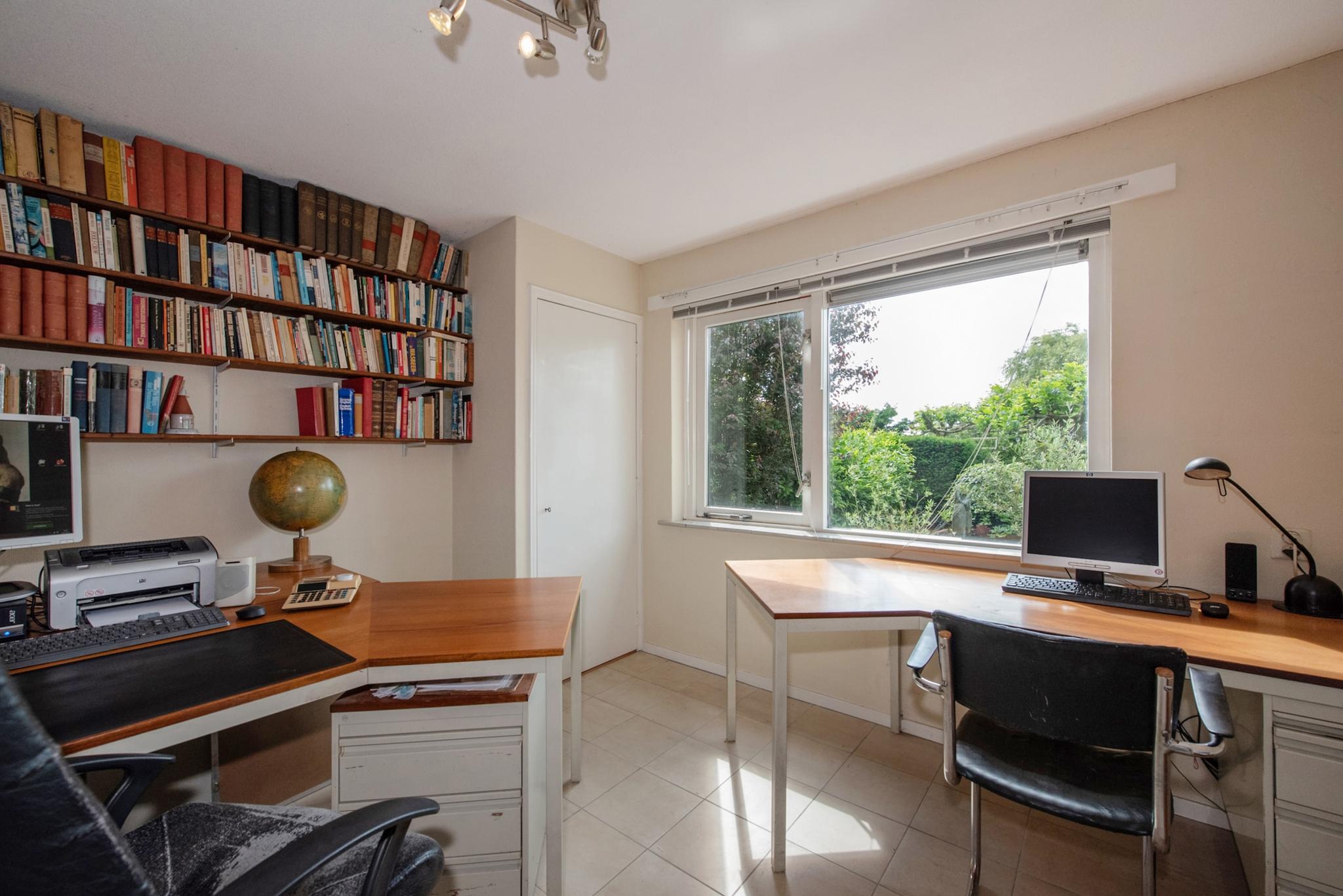 Indeling atelier: Grote ruimte/woonkamer met openslaande deuren naar de tuinzijde, open keuken met enige inbouwapparatuur en opstelling CV ketel t.b.v. atelier. Via trapje/niveauverschil toegang naar slaapkamer en badkamer. Het atelier biedt meerdere gebruiksmogelijkheden zoals praktijk aan huis, thuis werken, hobby/schilderen, semi zelfstandig (in)wonen van kinderen of ouders. Let wel: 1 huisnummer, splitsen is niet mogelijk.