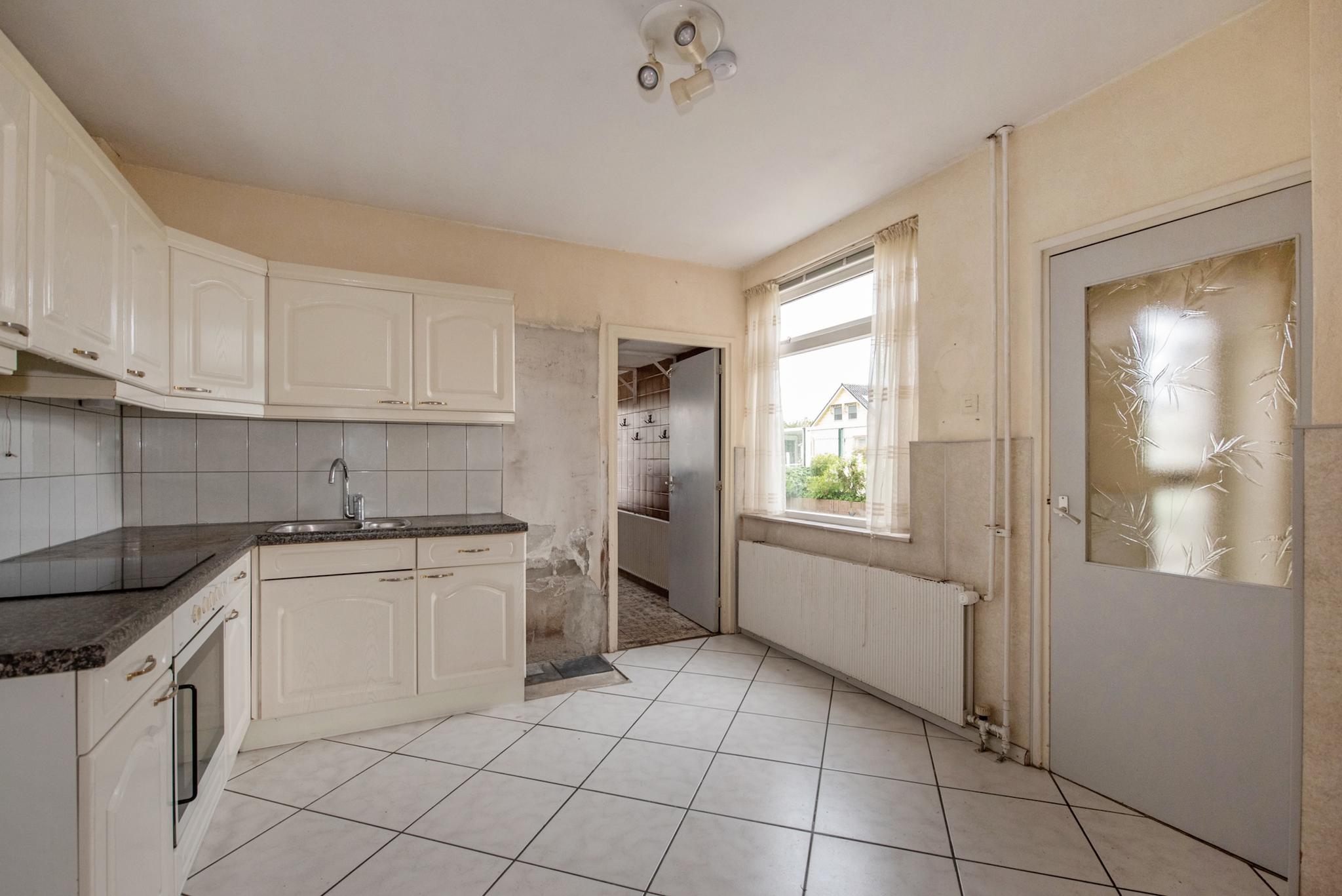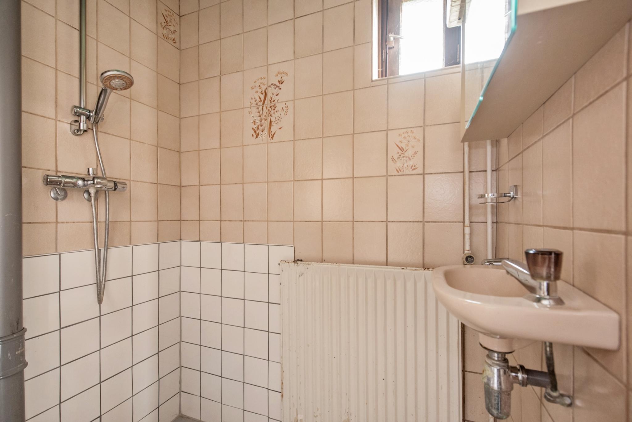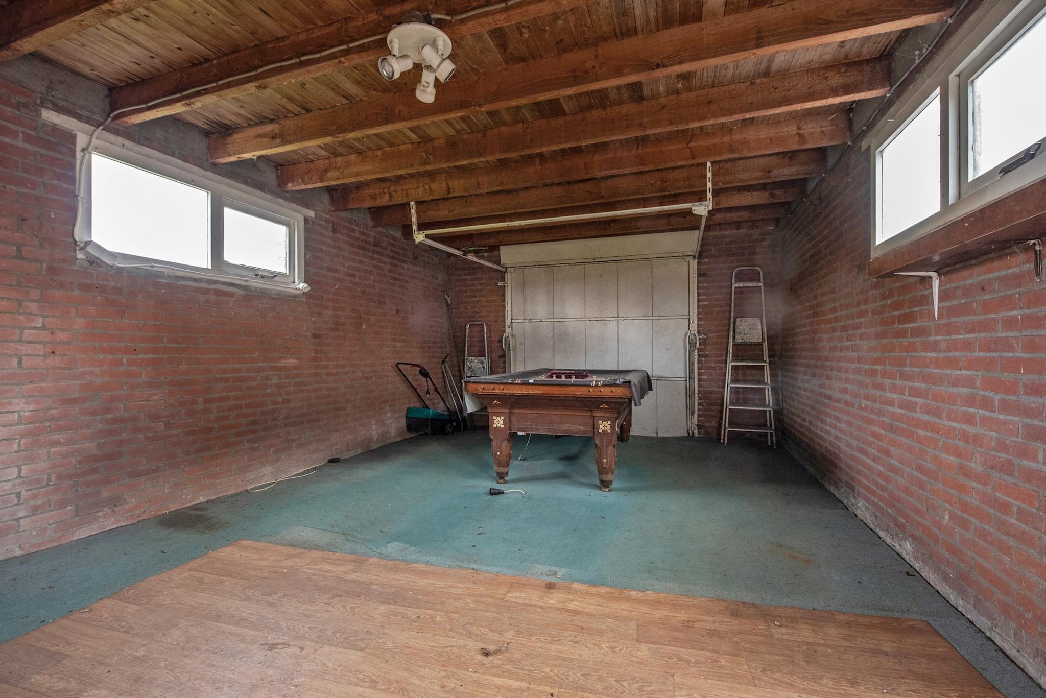 Indeling woning: Langs de voorgevel loop je naar de zijkant waar zich de voordeur van de woning bevindt. Entree/hal met een eenvoudige doucheruimte, separaat toilet, kelderkast onder de trap. Flinke woonkamer met grote raampartijen waardoor je veel lichtinval en een gezellige uitzicht hebt. Grenzend aan de keuken, ruim van opzet met een eenvoudige inrichting. Praktische bijkeuken met opstelling CV ketel, meterkast en aansluiting voor wasmachine. Vanuit de bijkeuken bereik je het beschutte terras dat veel privacy biedt, mede doordat er een grote voortuin voorligt. Recht tegenover de woning ligt de vrijstaande stenen garage met een eigen ontsluiting naar de Overgauwseweg.